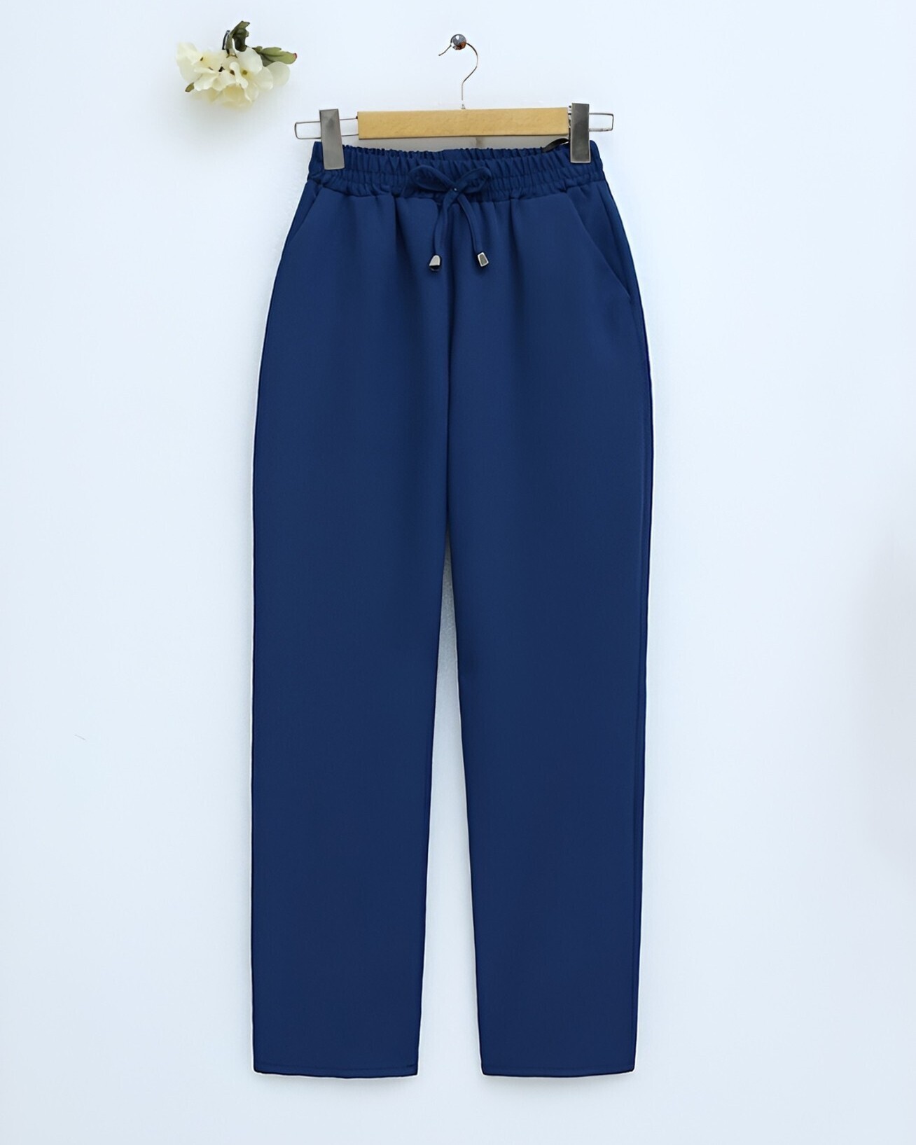 The drawstring waist slim-fit trousers offer the perfect combination of style and comfort. The drawstring waist detail allows for an adjustable fit, while the slim-leg cut provides a modern and elegant look. Made from high-quality fabric, these trousers ensure comfort throughout the day. Ideal for both casual chic and more polished outfits, they will become a staple in your wardrobe. Discover comfort and style with the drawstring waist slim-fit trousers!