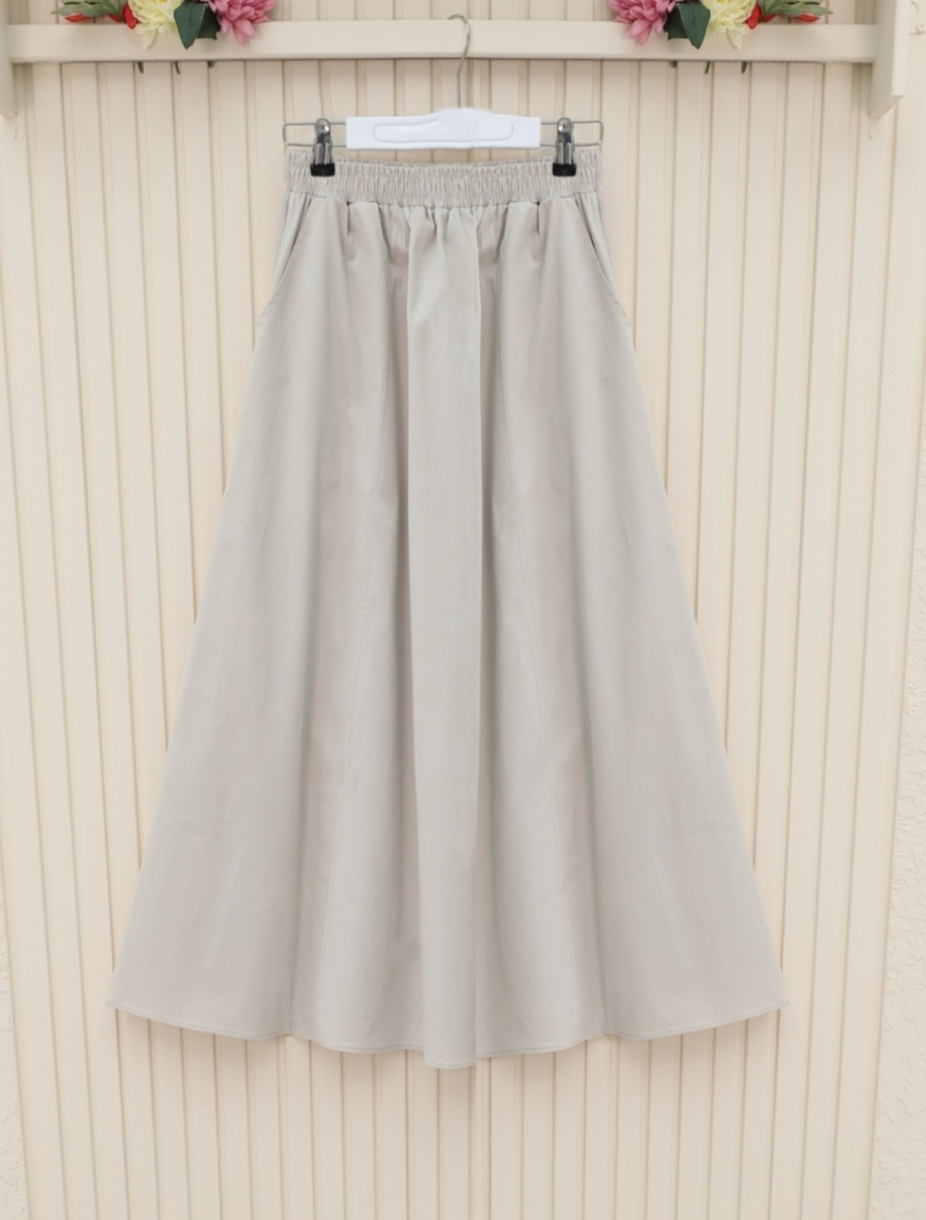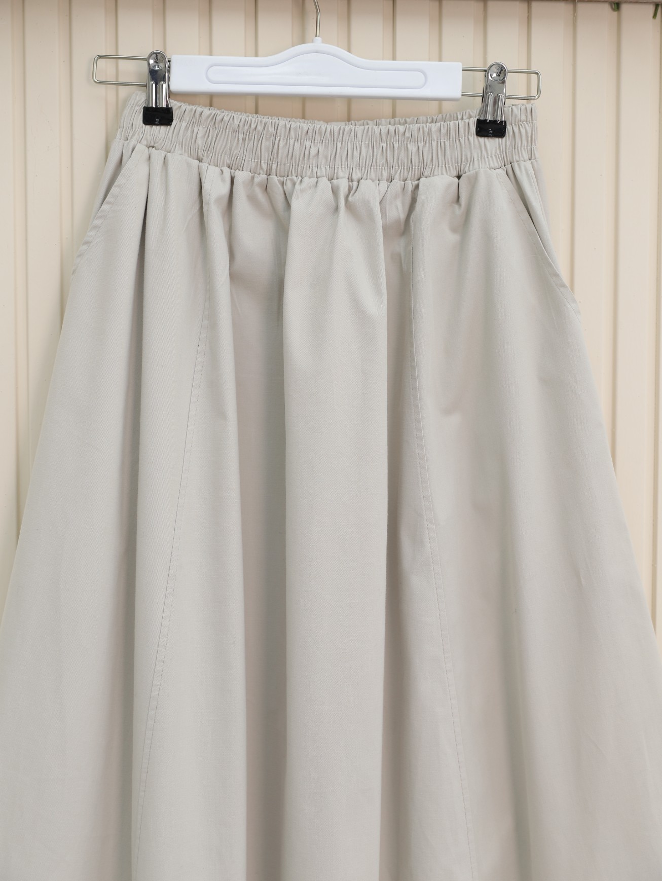 Elastic Waist Double Pocket Gabardine Skirt -Stone -
