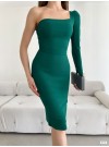 Tek Omuzlu Balık Elbise -Saks