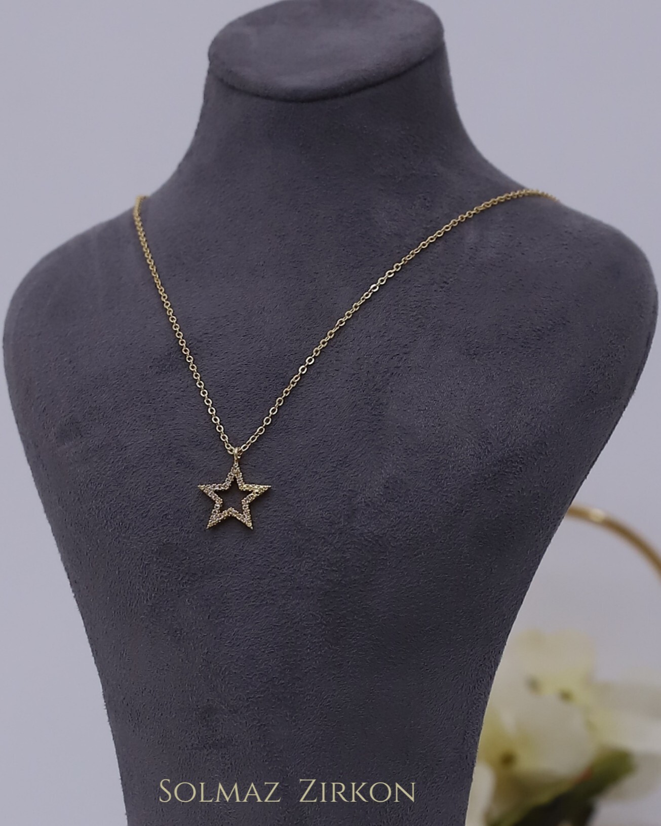 Taşlı Yıldız Solmayan Zirkon Kolye -Altın -