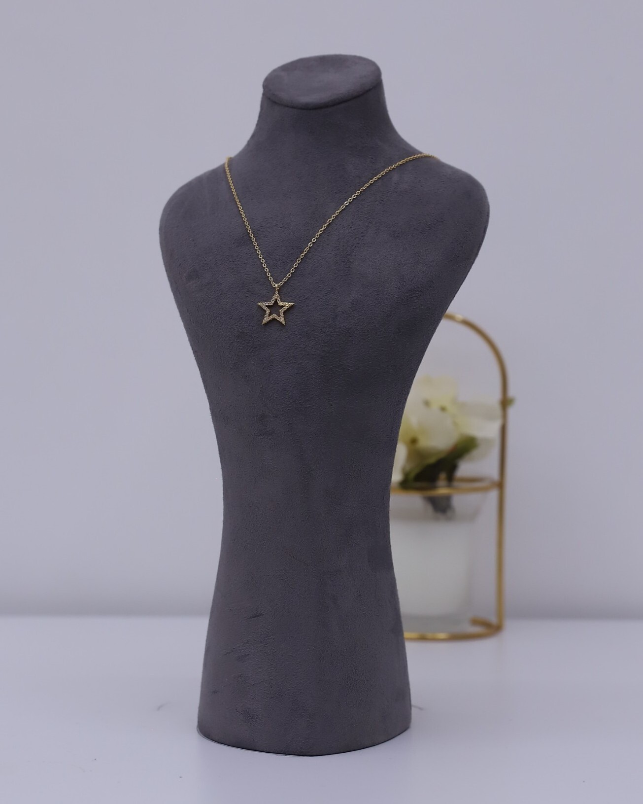 Taşlı Yıldız Solmayan Zirkon Kolye -Altın