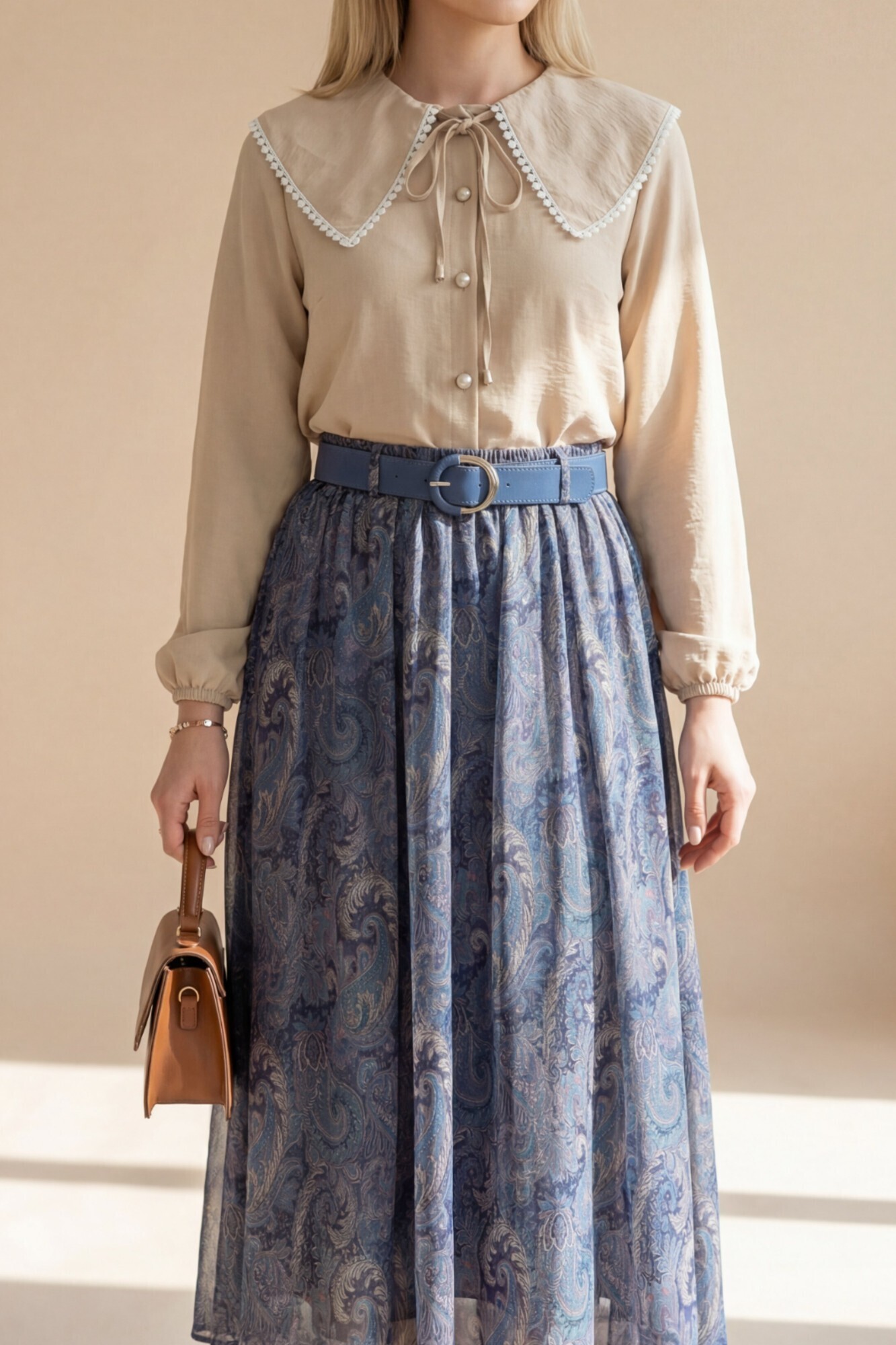 Feminen ve modern çizgileri bir araya getiren Asimetrik Kesim Astarlı Kemerli Şifon Etek, zarif tasarımıyla stilinizi ön plana çıkarır. Hafif ve akışkan şifon kumaşı, hareket ettikçe dökümlü ve şık bir görünüm sunarken, asimetrik kesimi eteğe dinamik bir hava katar. İç astarı sayesinde konforlu ve güvenli bir kullanım sağlanırken, kemerli yapısı bel hattını zarifçe vurgular.