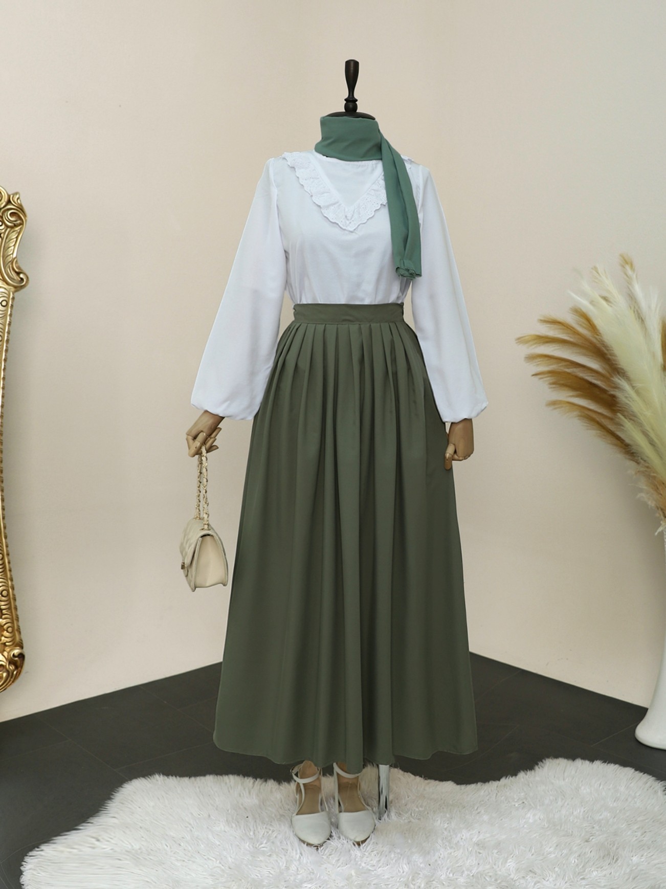Belden Büzgülü Kloş İthal Paraşüt Etek -Haki