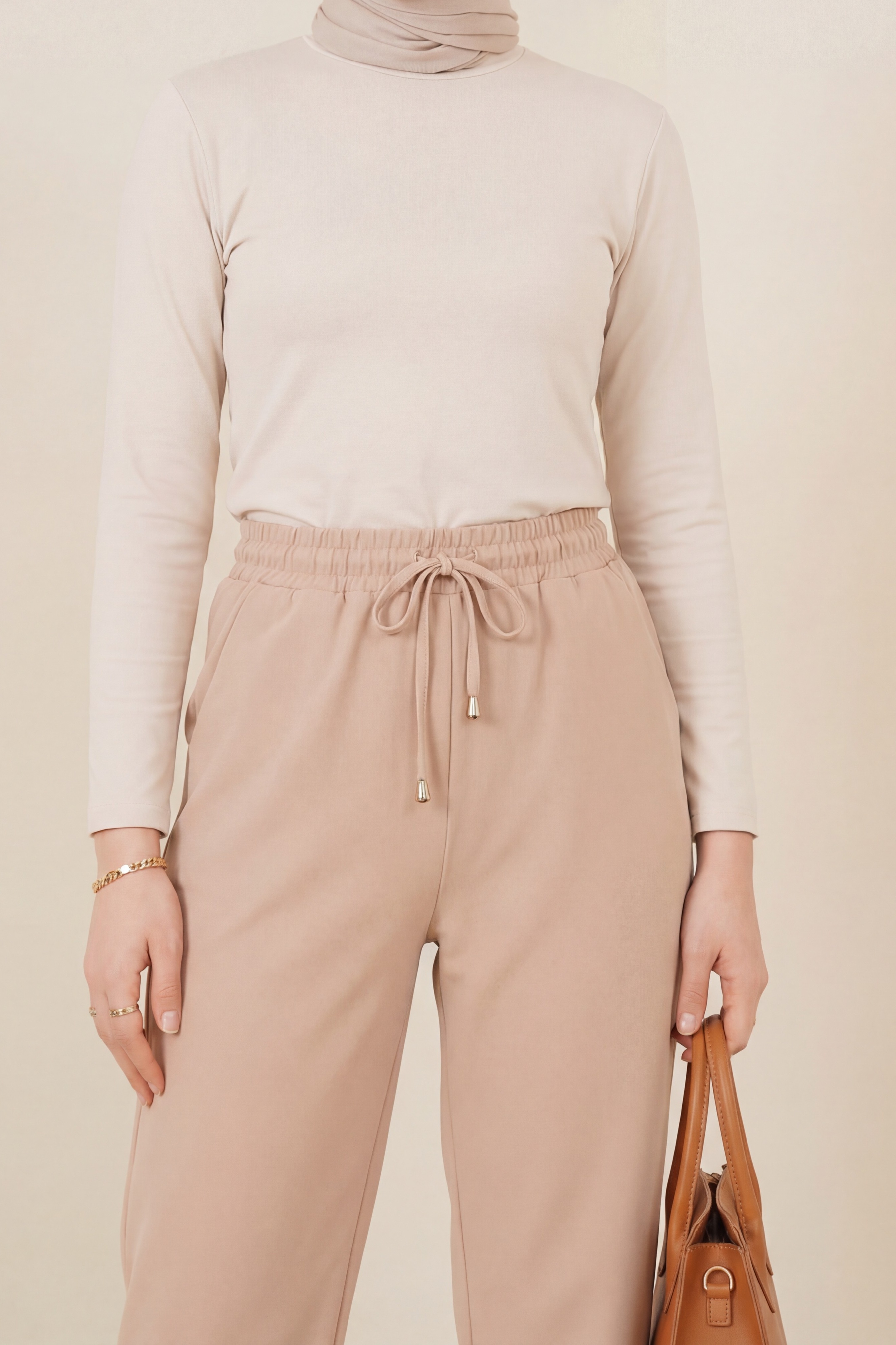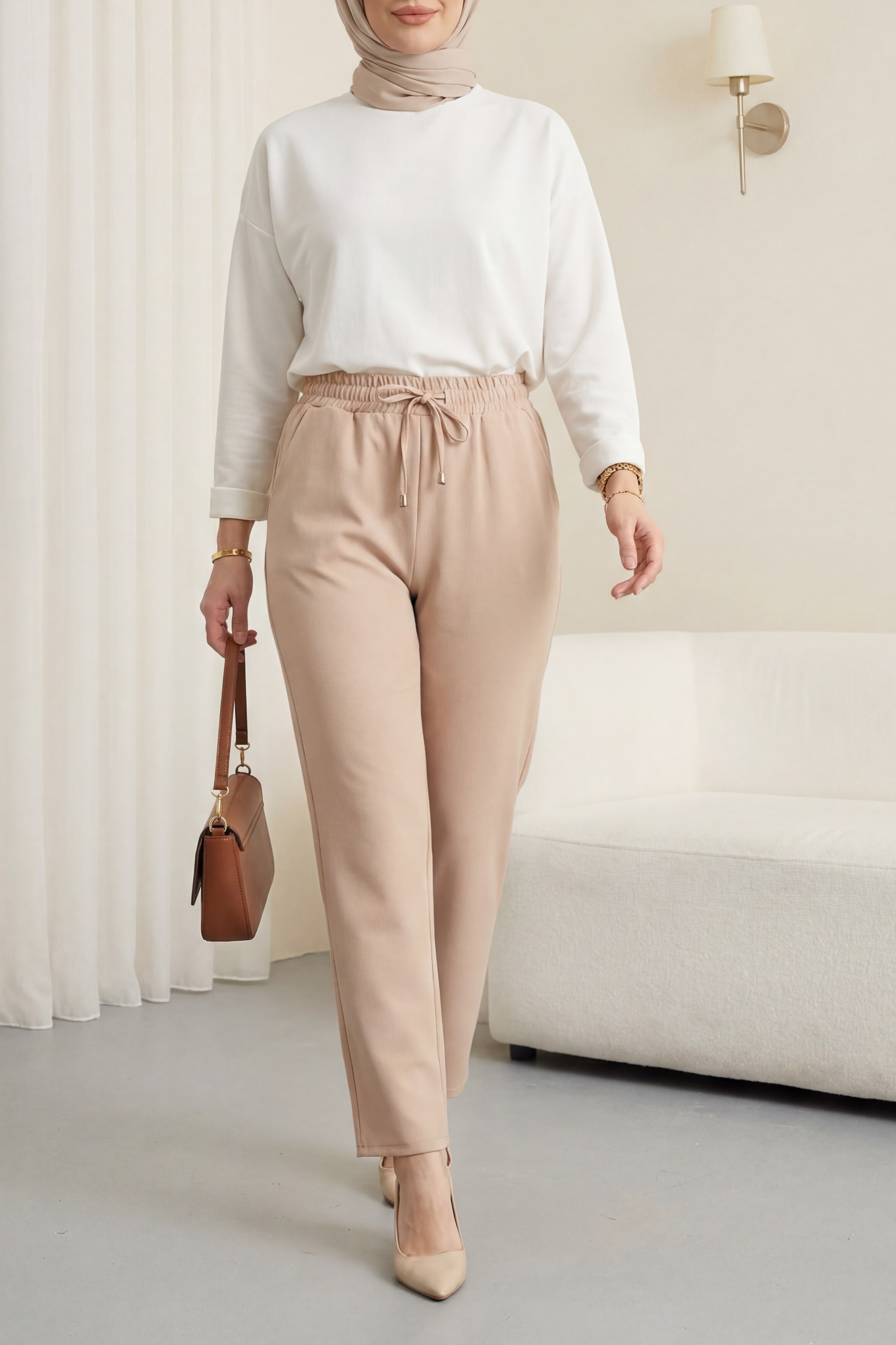Beli bağcıklı, dar paça pantolon; şıklığı ve rahatlığı bir arada sunan mükemmel bir parçadır. Bağcıklı bel detayı, pantolonun rahatça ayarlanmasını sağlarken, dar paça kesimi modern ve zarif bir görünüm sunar. Yüksek kaliteli kumaşı, gün boyu konforlu bir kullanım sağlar. Hem gündelik şıklık hem de daha şık kombinler için ideal olan bu pantolon, gardırobunuzun vazgeçilmez bir parçası olacak. Beli bağcıklı dar paça pantolon ile rahatlık ve şıklığı keşfedin!