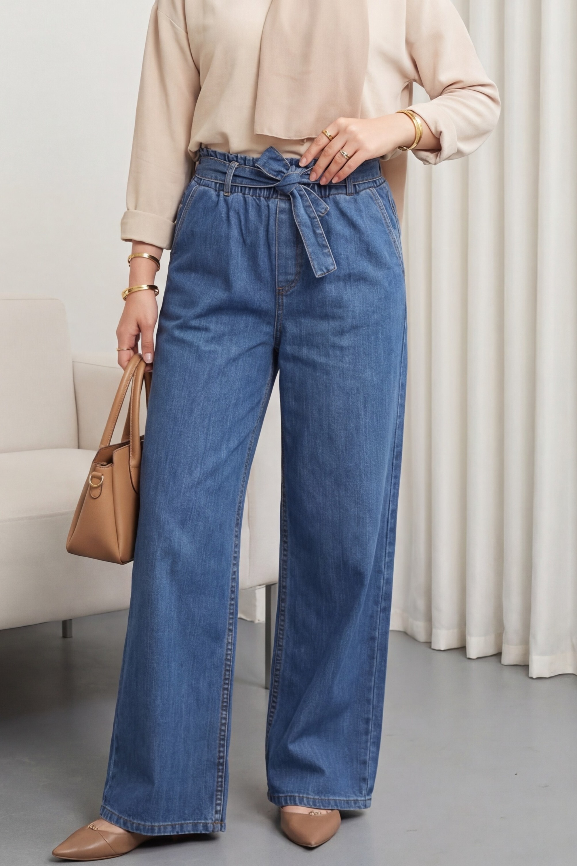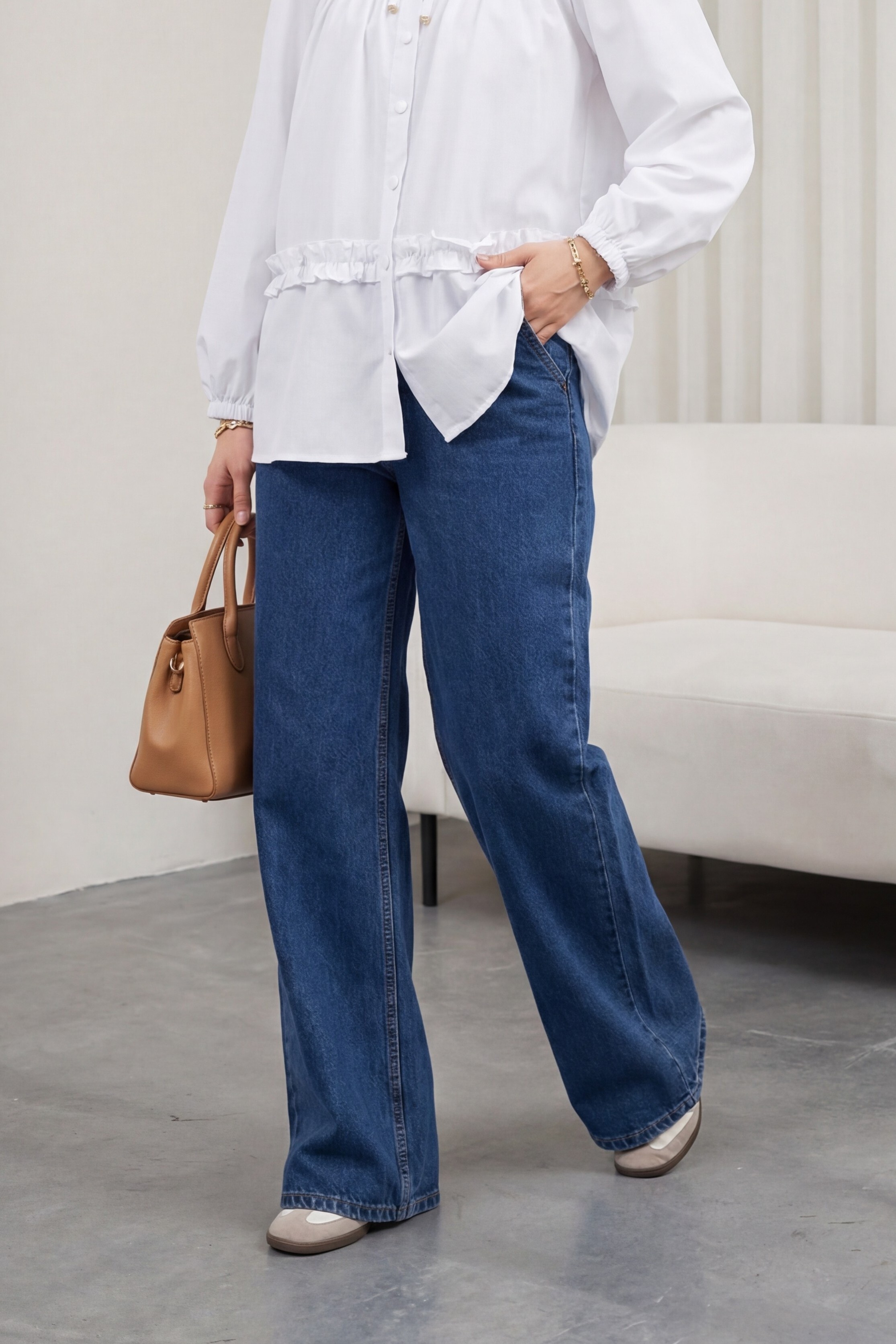 Rahatlığı ve şıklığı bir arada sunan Beli Kuşaklı Lastikli Cepli Kot Pantolon, belindeki kuşak detayıyla fit bir görünüm sağlar. Lastikli beli sayesinde gün boyu konfor sunarken, kullanışlı cepleriyle pratikliği artırır. Günlük kombinlerinizin vazgeçilmezi olacak!