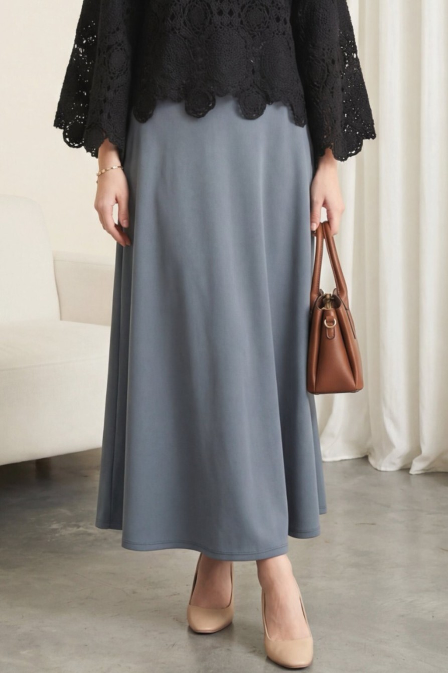 “Likralı krep etek”, “kloş kadın etek”, “beli lastikli etek modeli”, “şık krep etek” gibi adlandırılabilir.