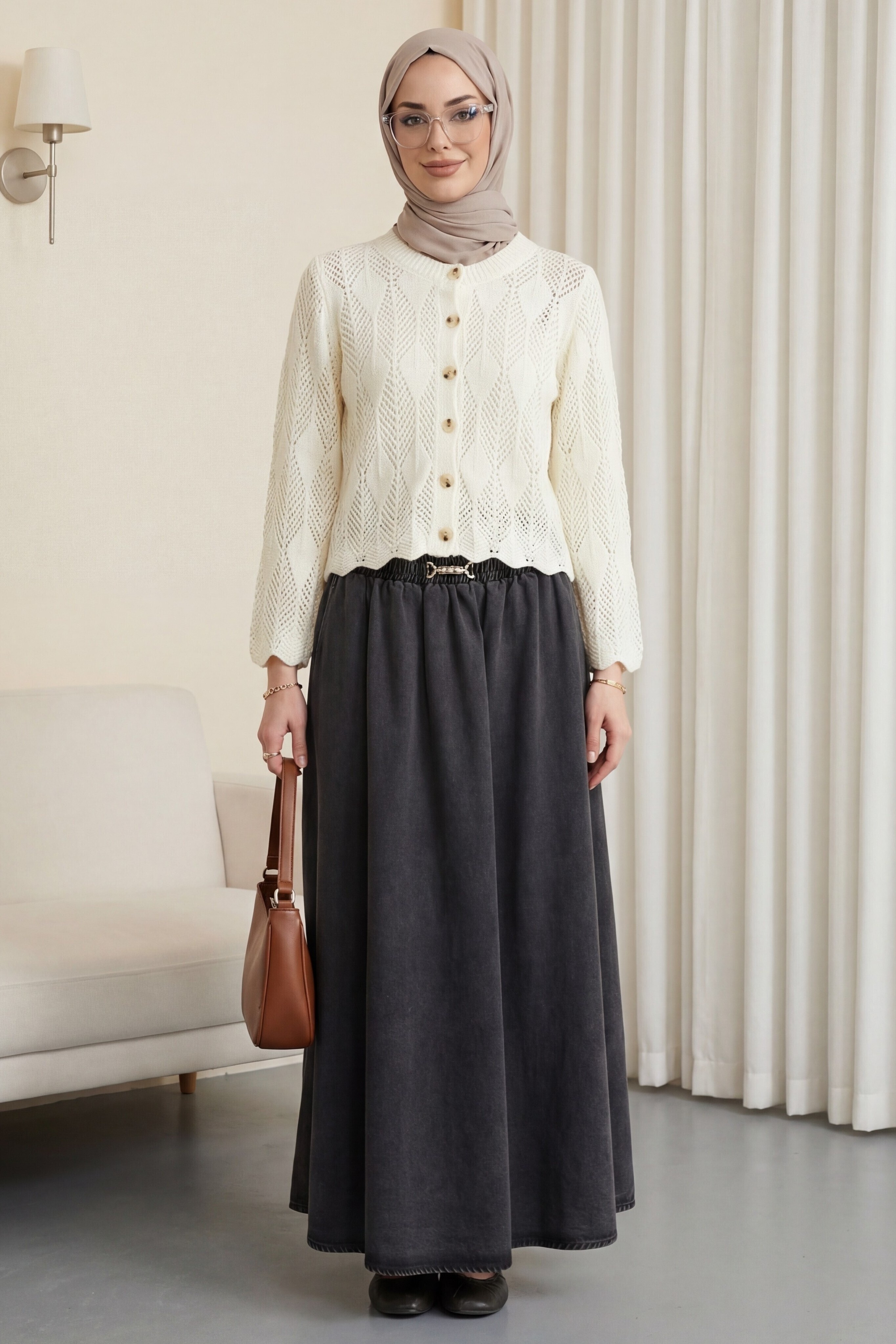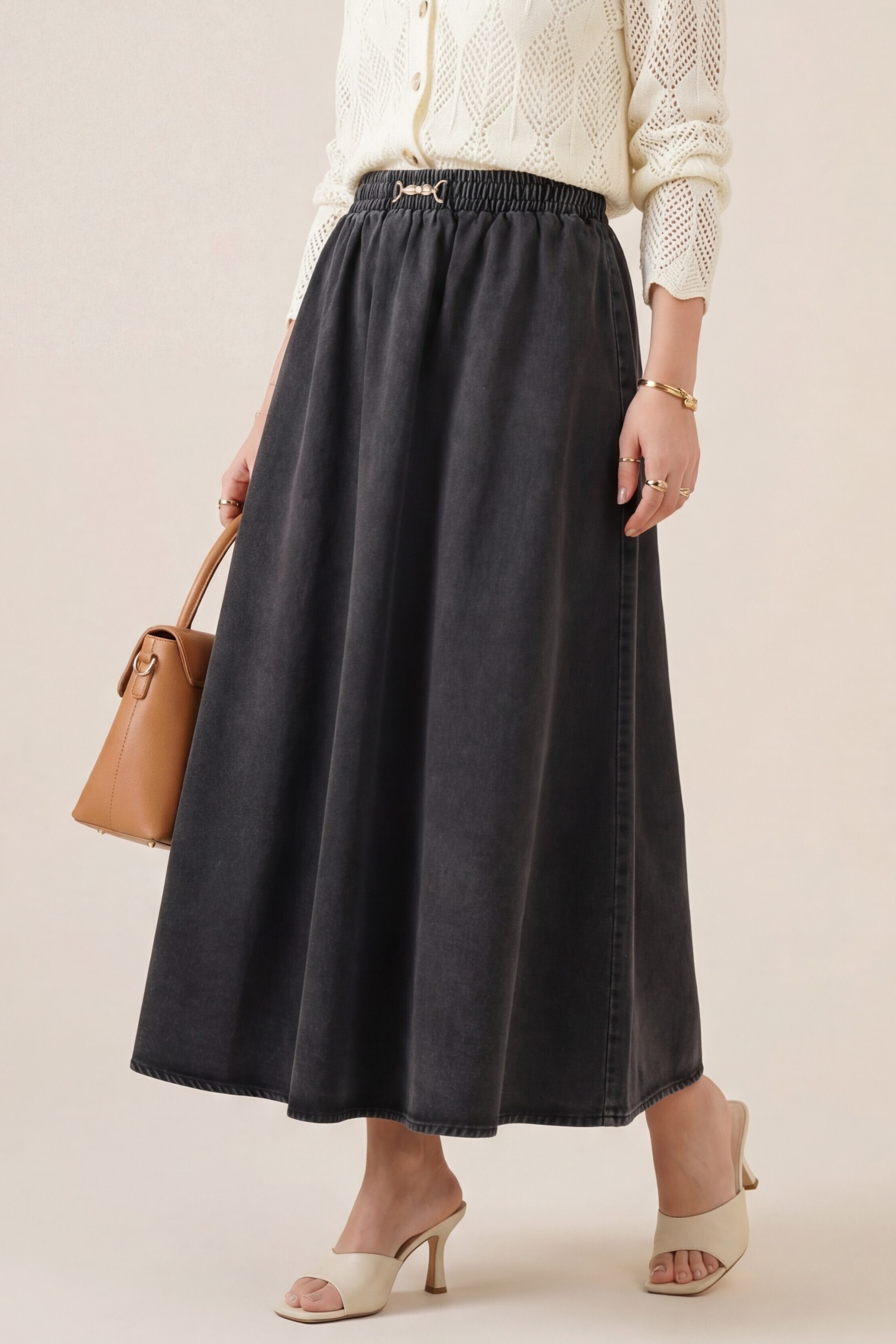 Beli Lastikli Toka Detaylı Kot Etek, rahat ve modern bir stil sunar. Beli lastikli yapısı gün boyu konfor sağlarken, toka detayı tasarıma şık bir dokunuş katar. Kot kumaşı dayanıklı ve zamansızdır. Günlük kombinlerde kolayca tercih edilir.