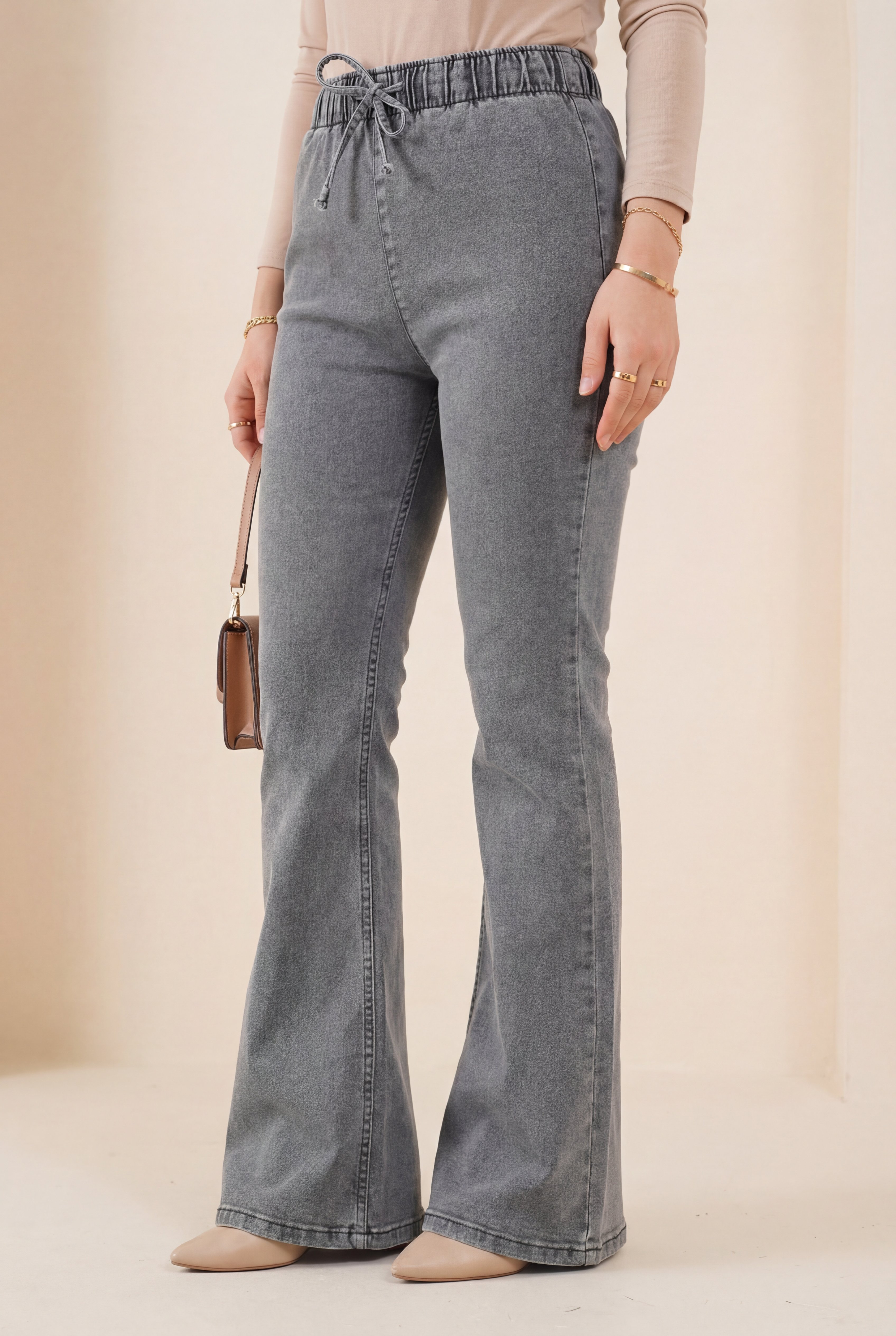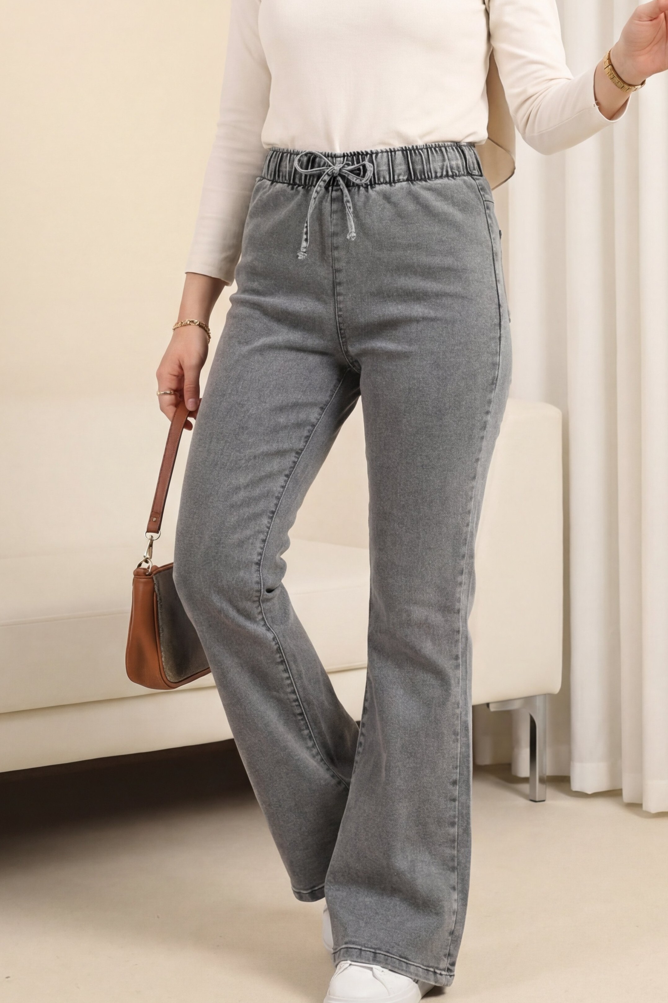 Beli lastikli ve bağcıklı, ispanyol paça, cepsiz pantolon modelimiz yeni sezonun en çok sevilen modelleri arasında yer almaktadır.