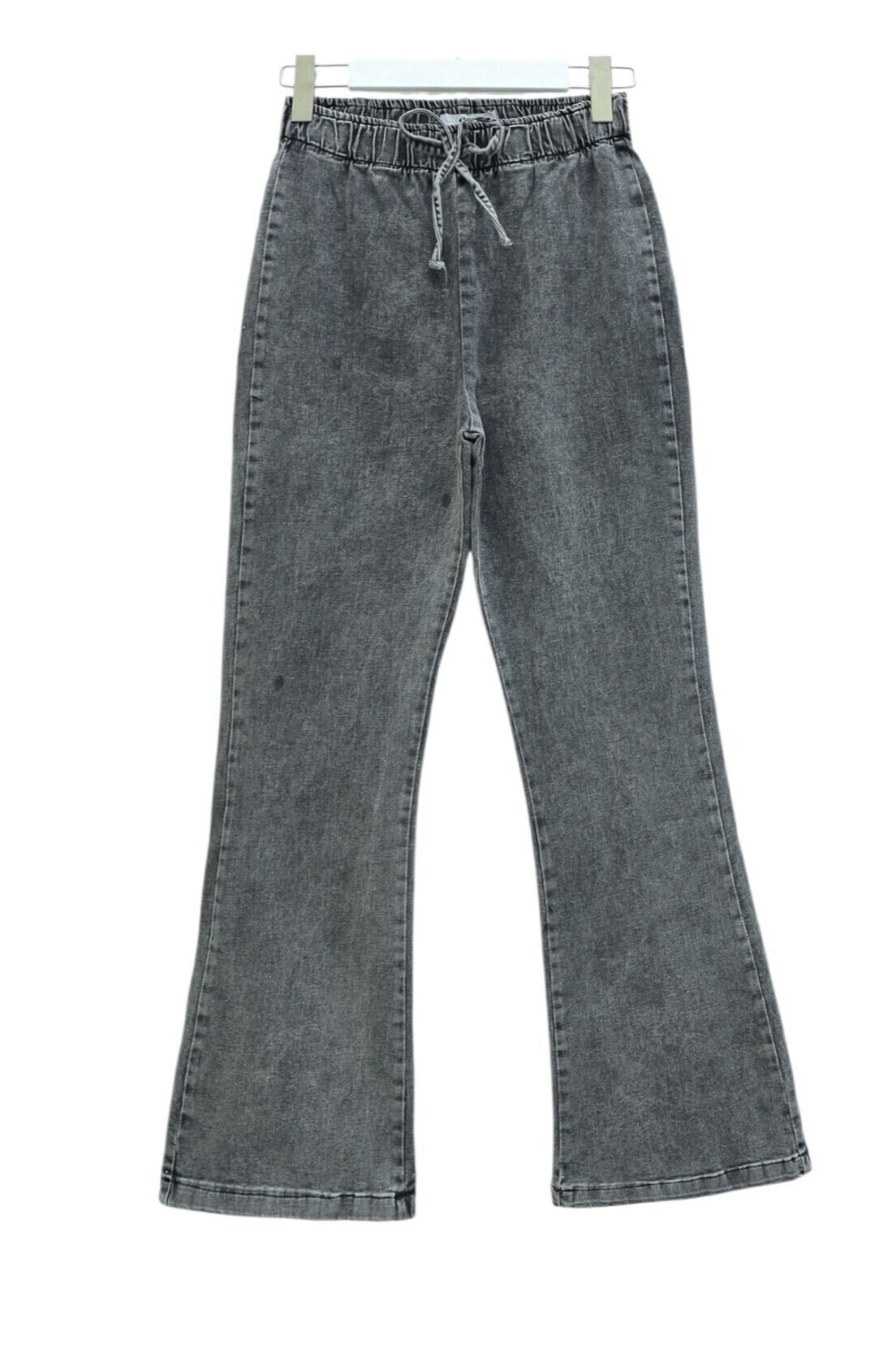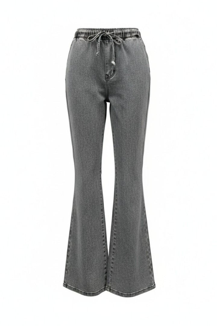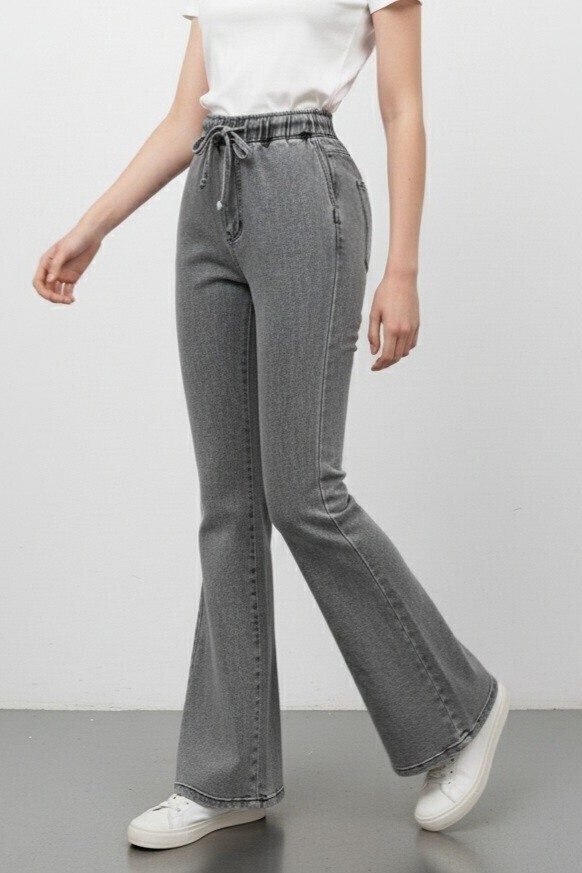 İspanyol Paça Bağcık Detaylı Kot Pantolon -Füme
