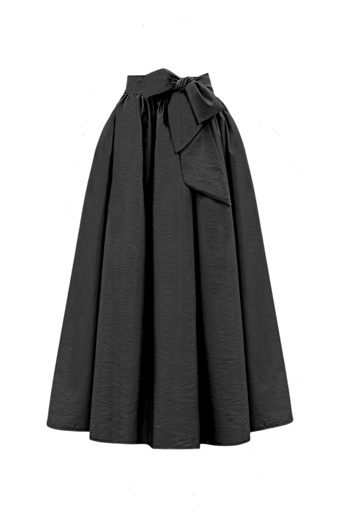 Piliseli Kemerli Paraşüt Etek -Siyah