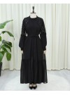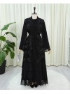 عباية مطرزة بالترتر مع حزام وتنورة مزدوجة الطبقات -أسود