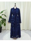 عباية مطرزة بالترتر مع حزام وتنورة مزدوجة الطبقات -كحلي