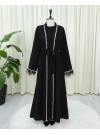 طقم عباية من قطعتين مزين بالخرز المقطوع وحزام -أسود