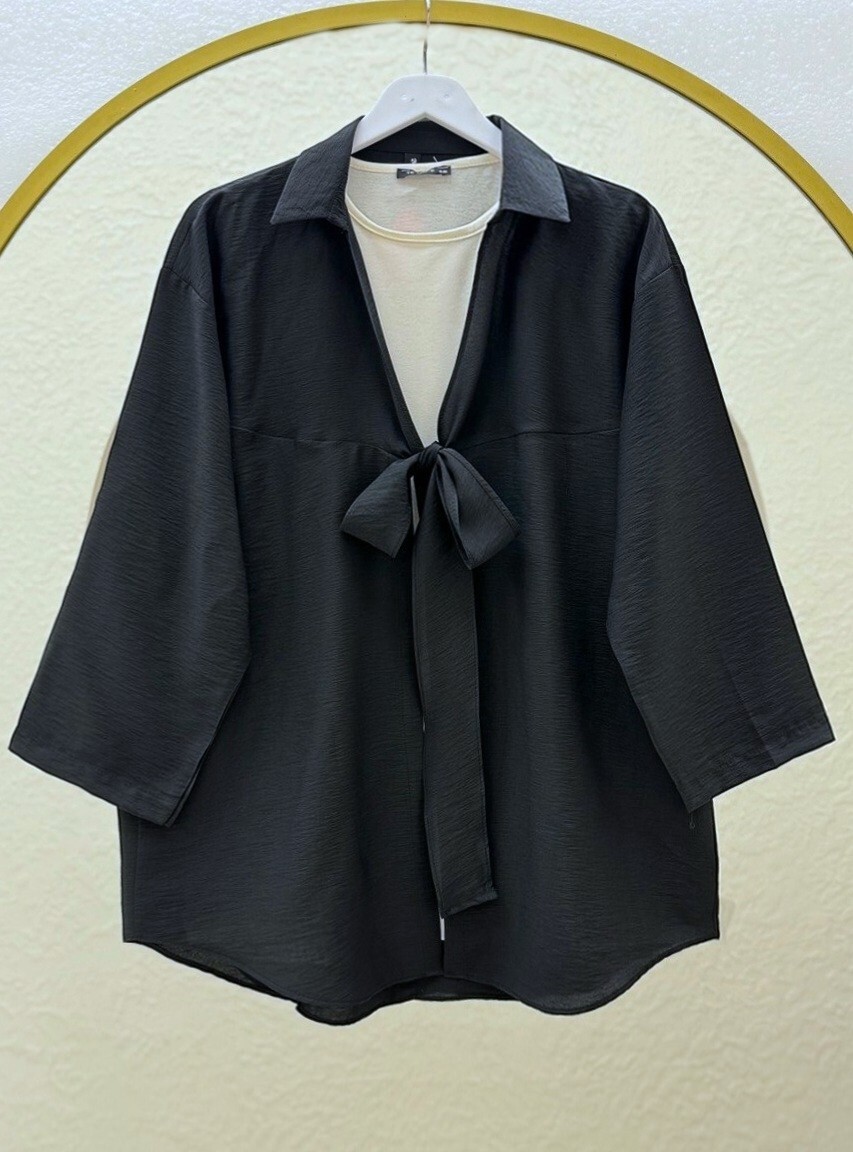 كيمونو صيفي مربوط من الأمام -أسود