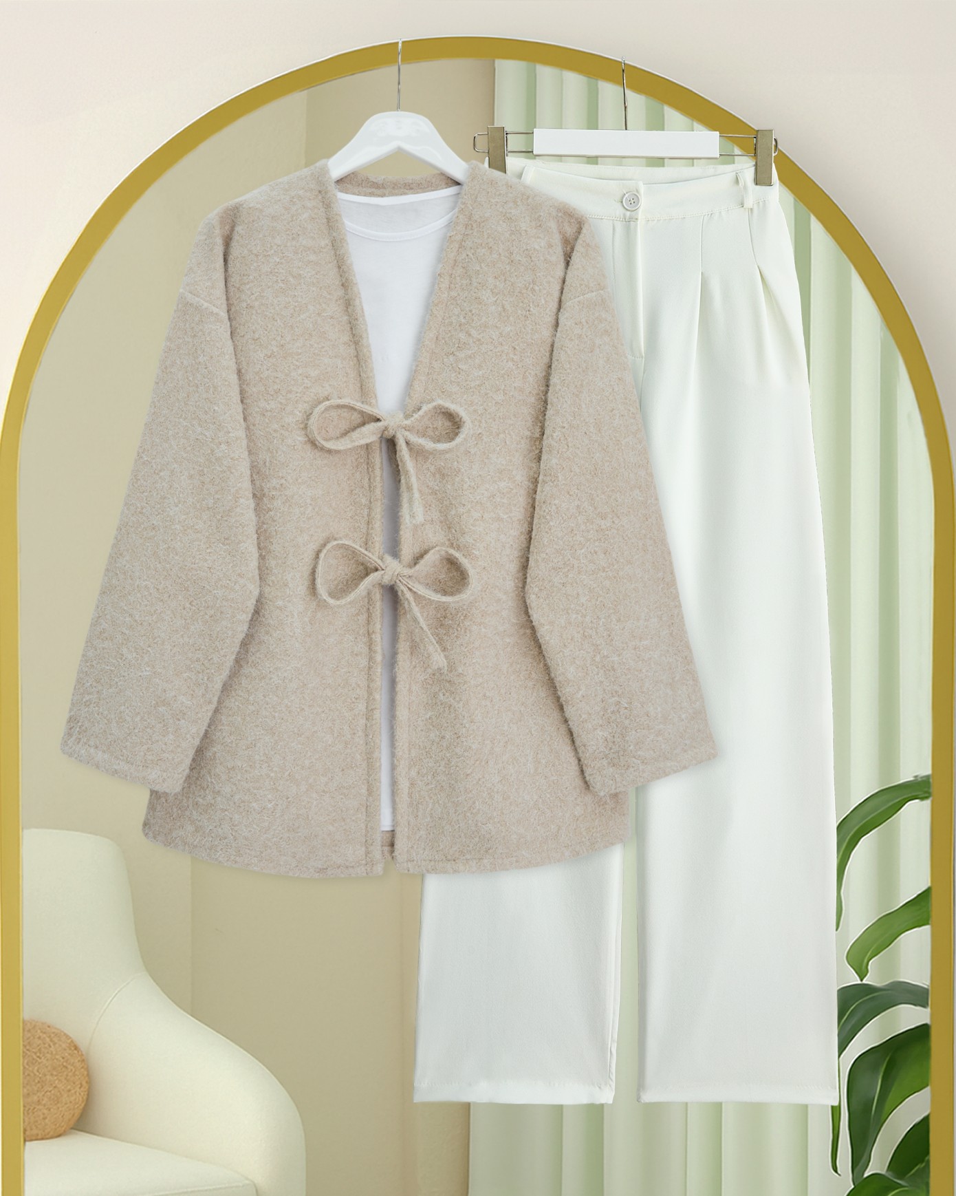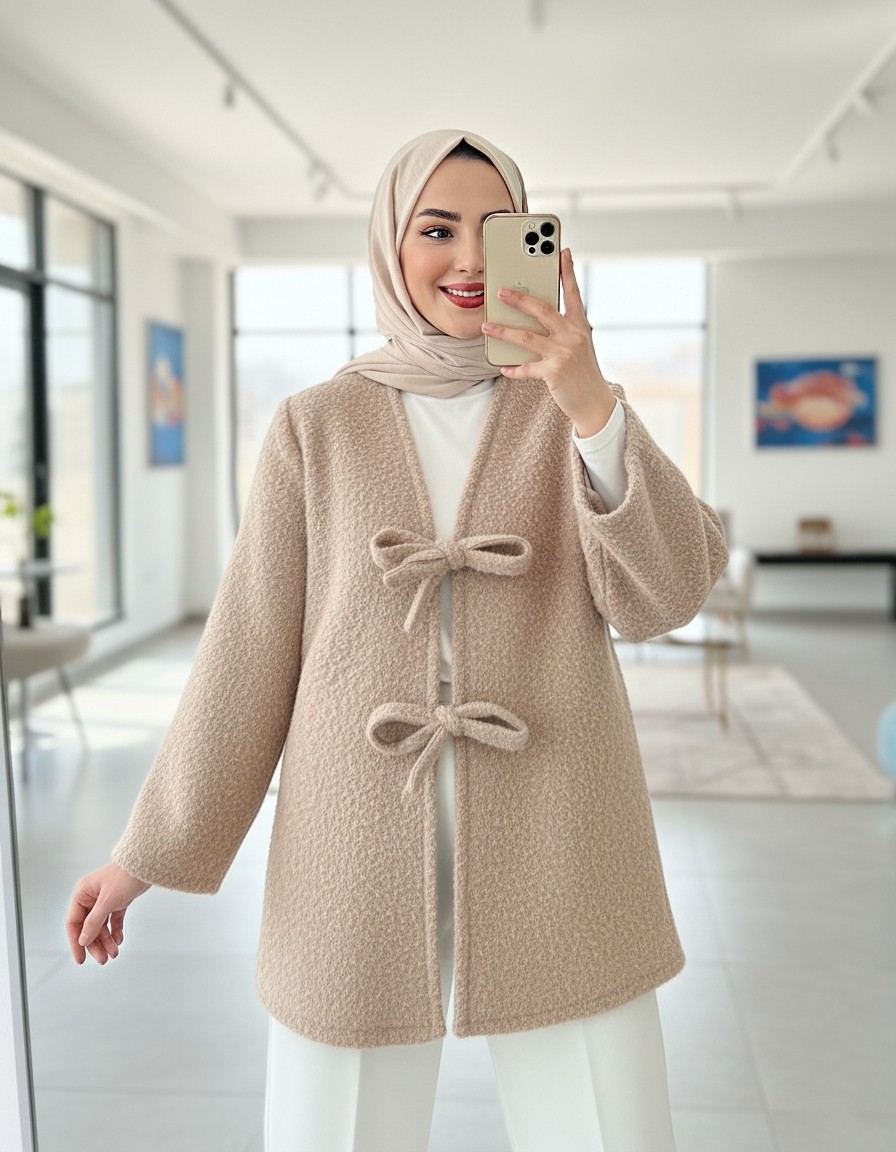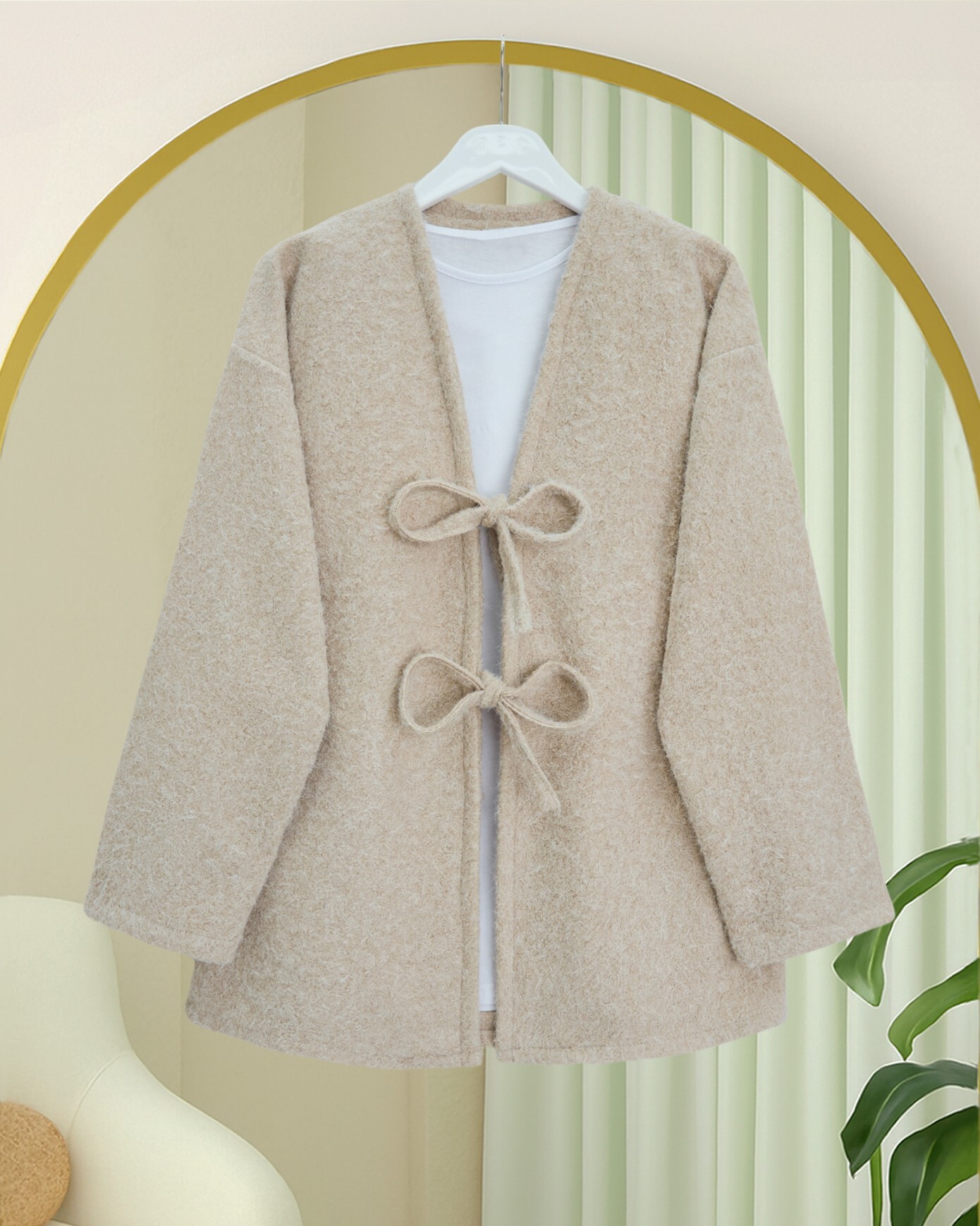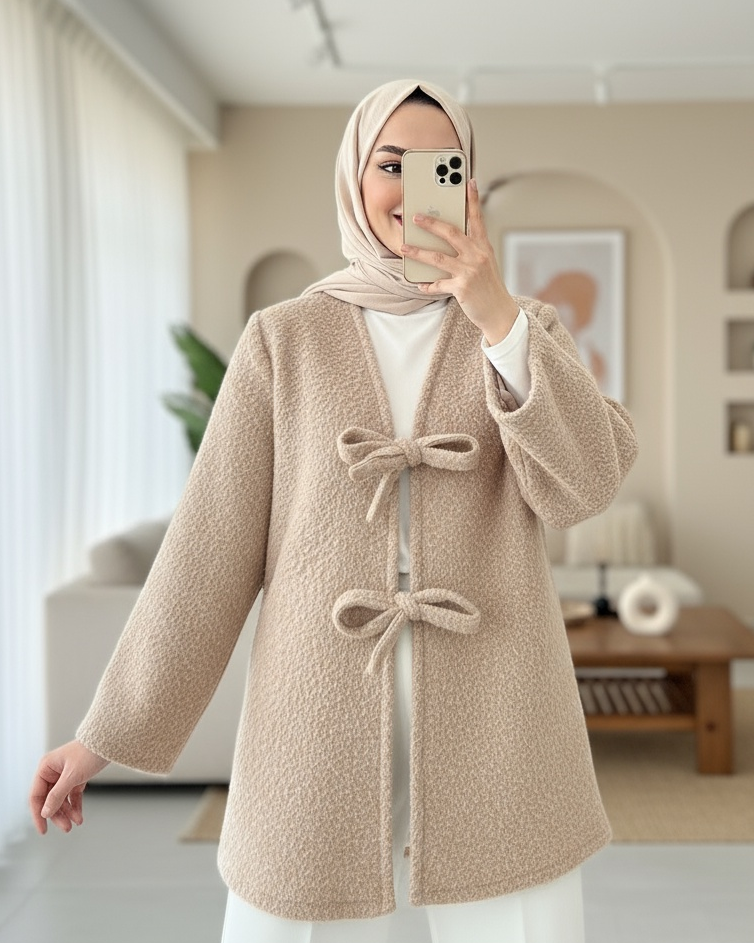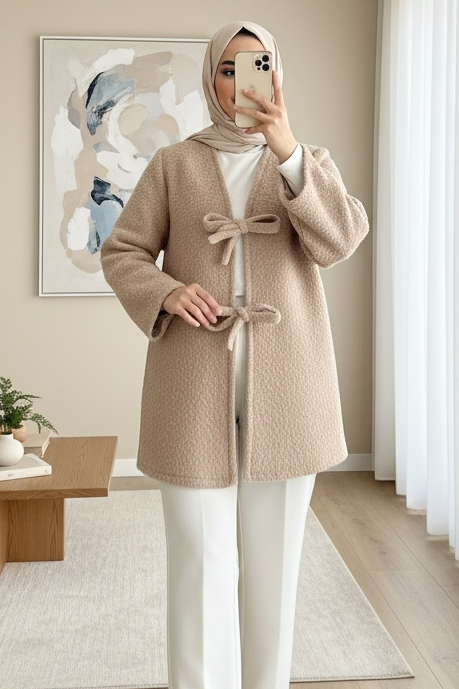 كيمونو ملتحي بربطة أمامية -اللون البيج