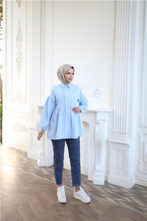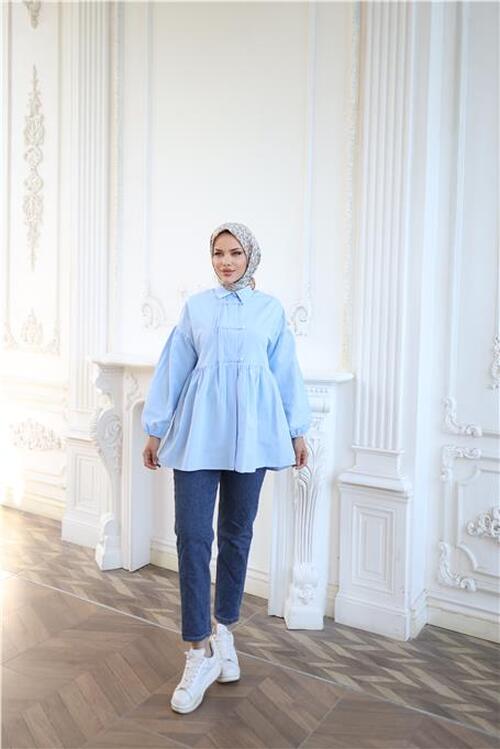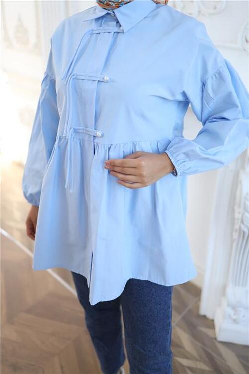 اسم المنتج: - قميص بأكمام مطاطية، وخصر برباط، وإغلاق بأزرار