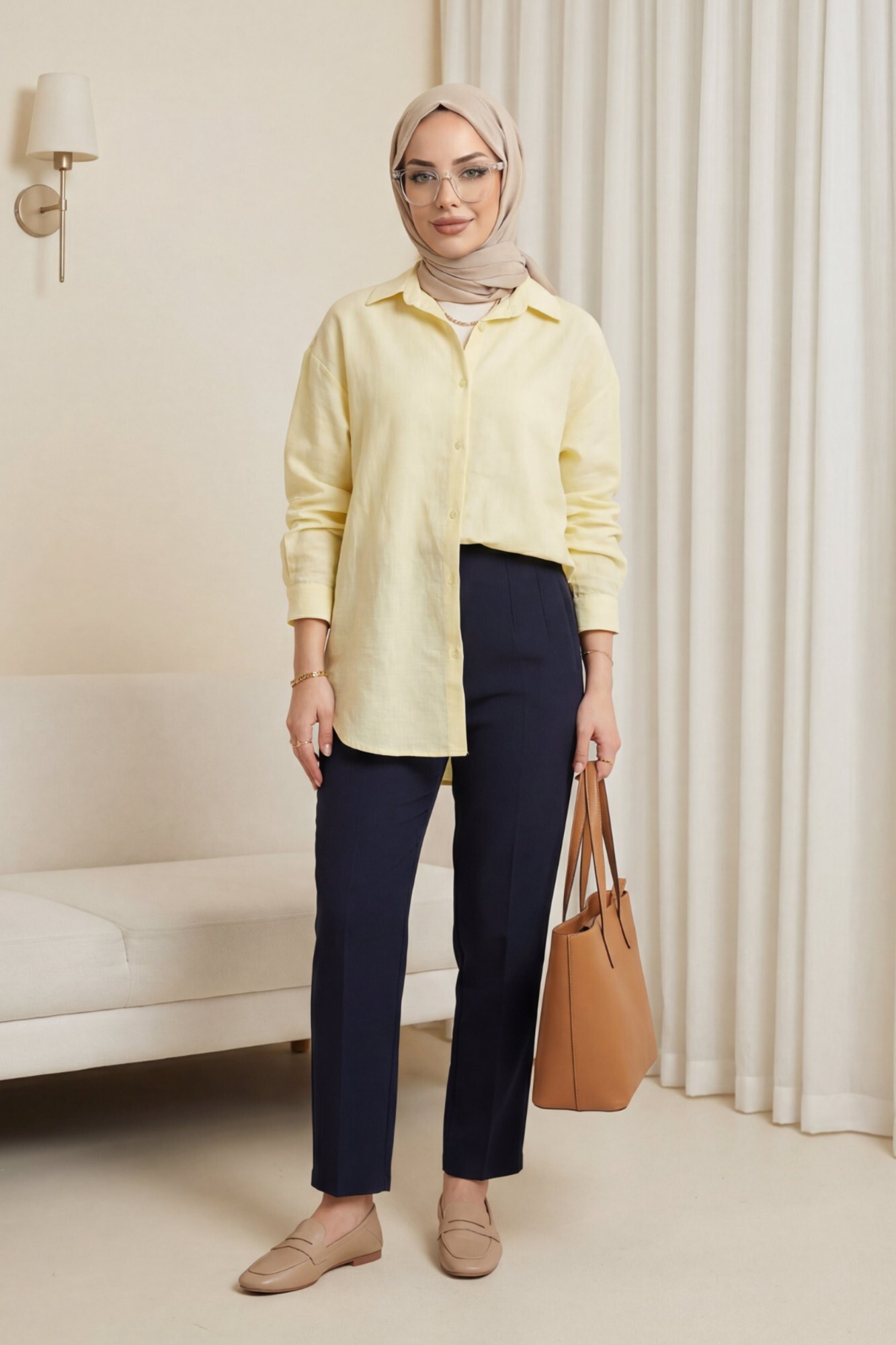 قميص كاجوال بأزرار أمامية مع تفاصيل شريط -أخضر