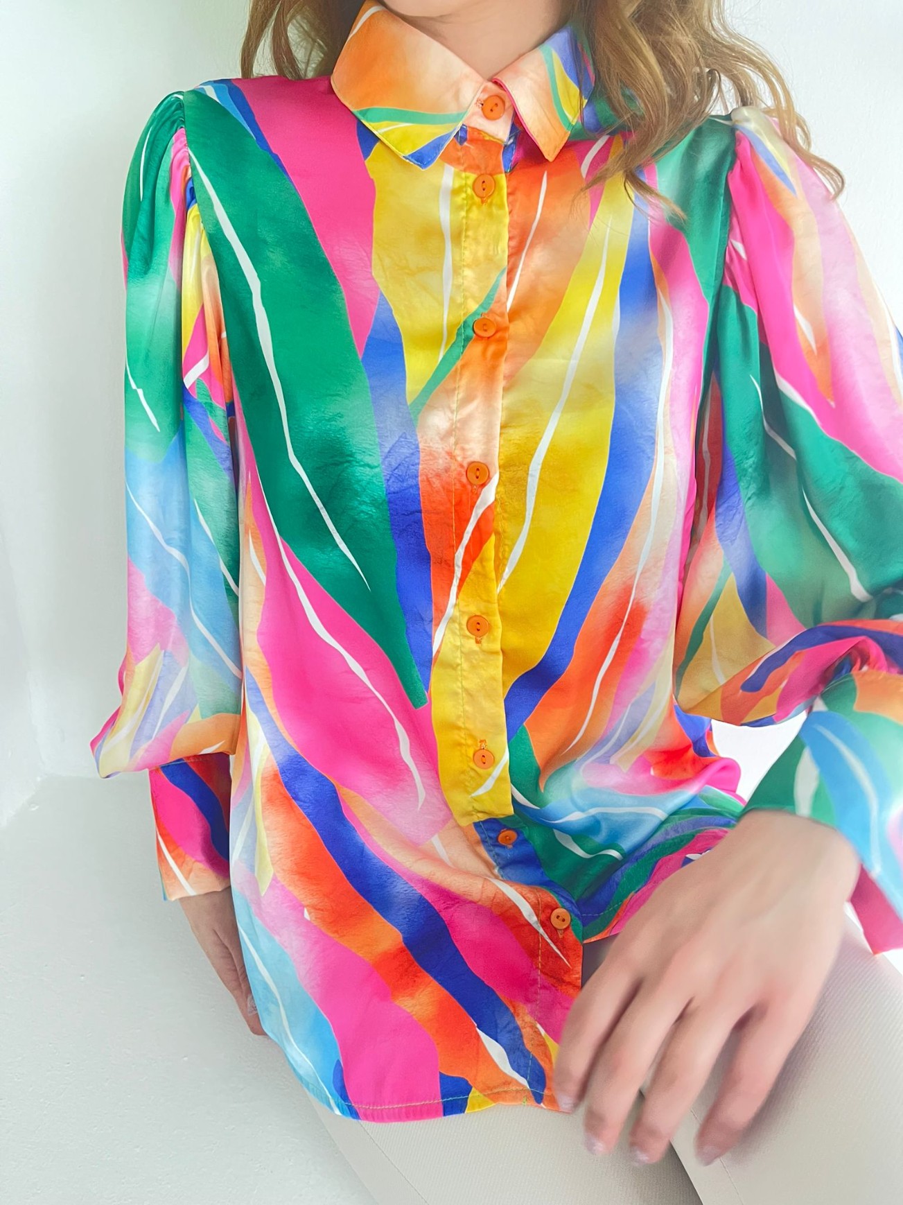 يُعد نموذج القميص الساتان المزين بأزرار ملونة من بين أشهر الموديلات في الموسم الجديد.