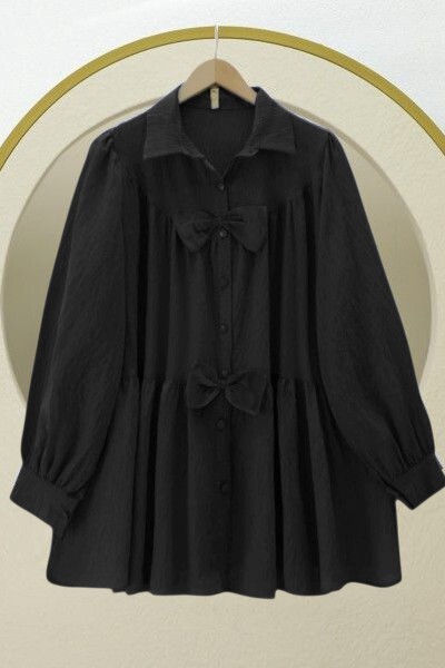 تونيك بوبلين بأكمام مرنة وياقة مطرزة -كحلي
