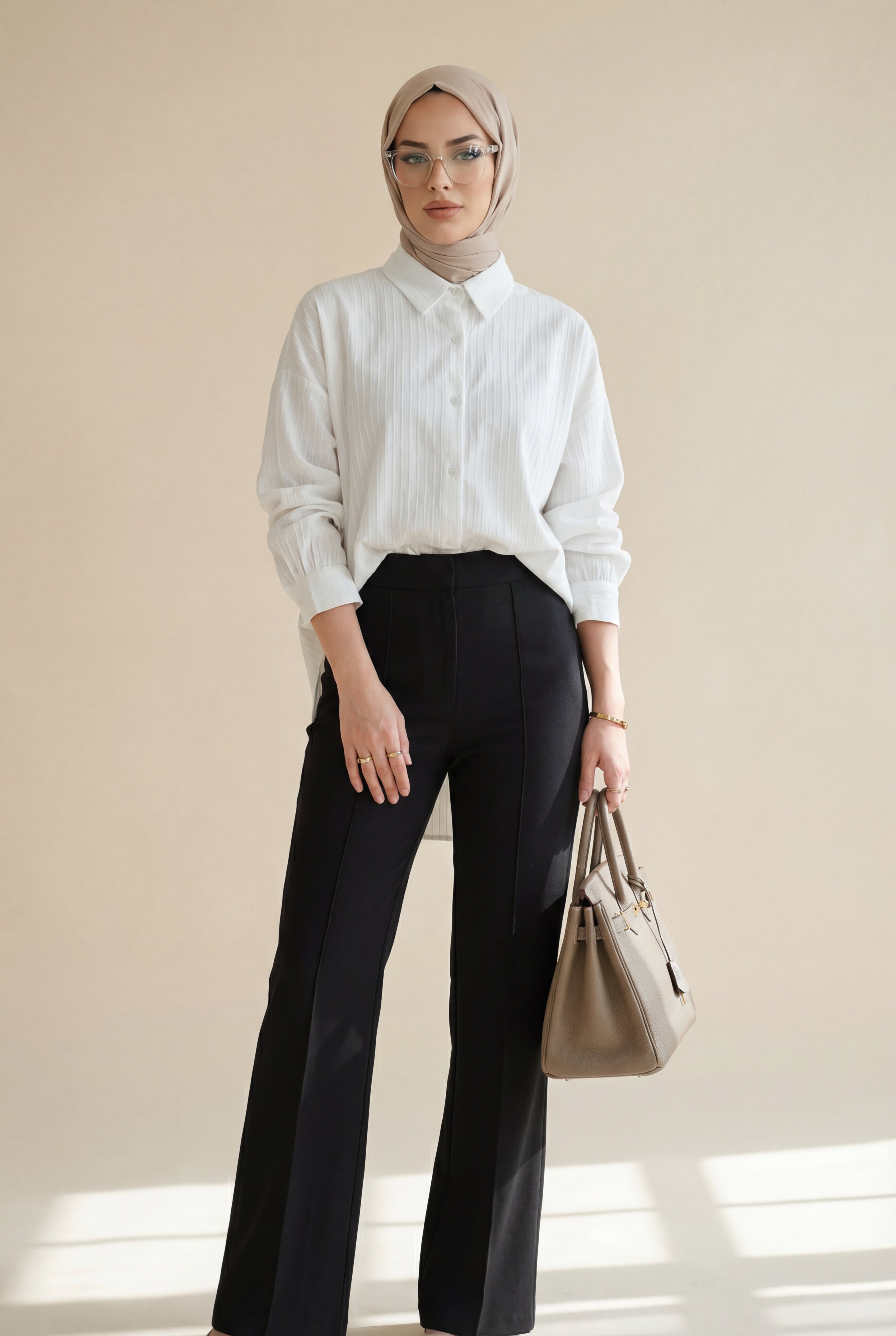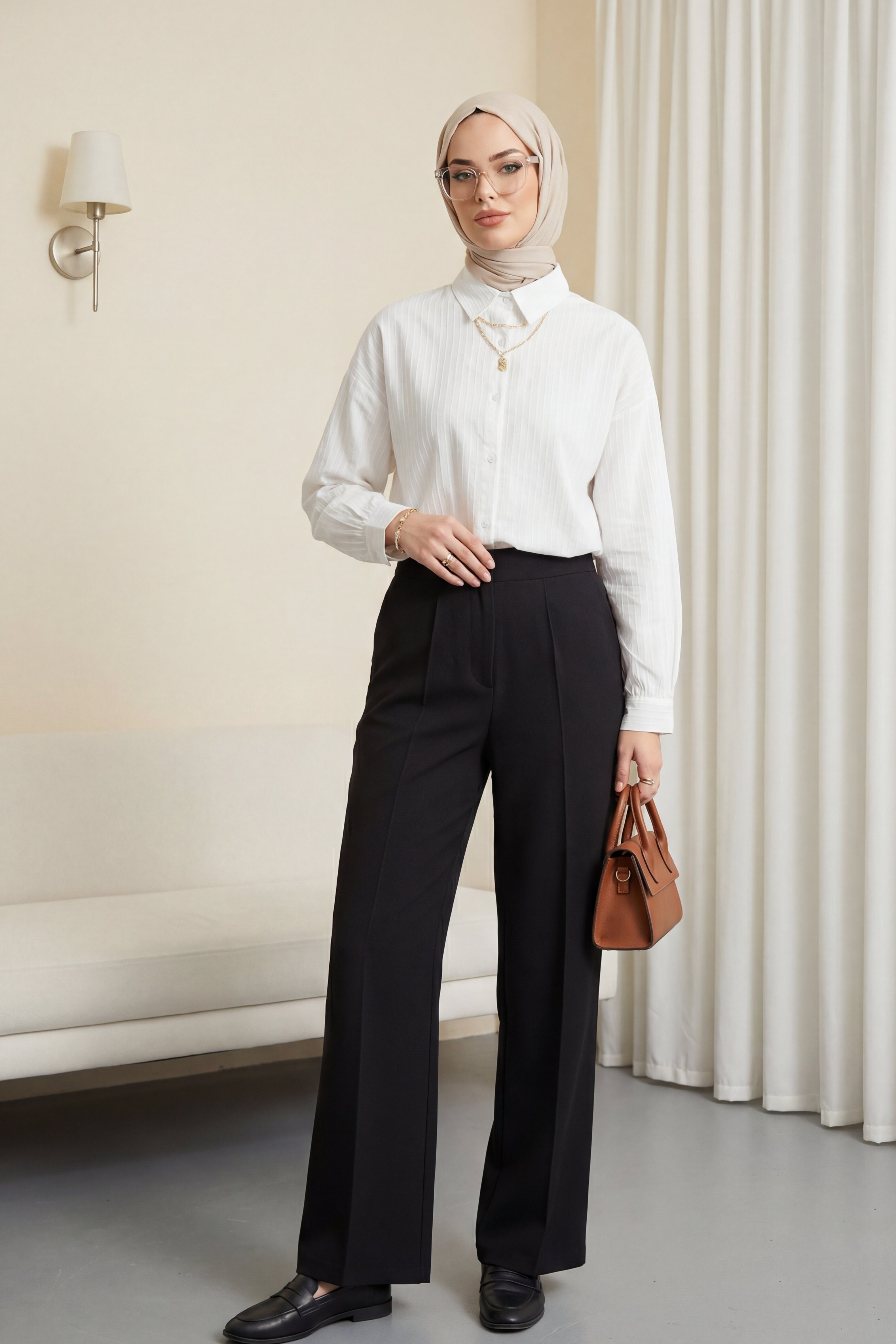 بنطلون بخصر مرتفع مع تفاصيل جيوب -بني محروق