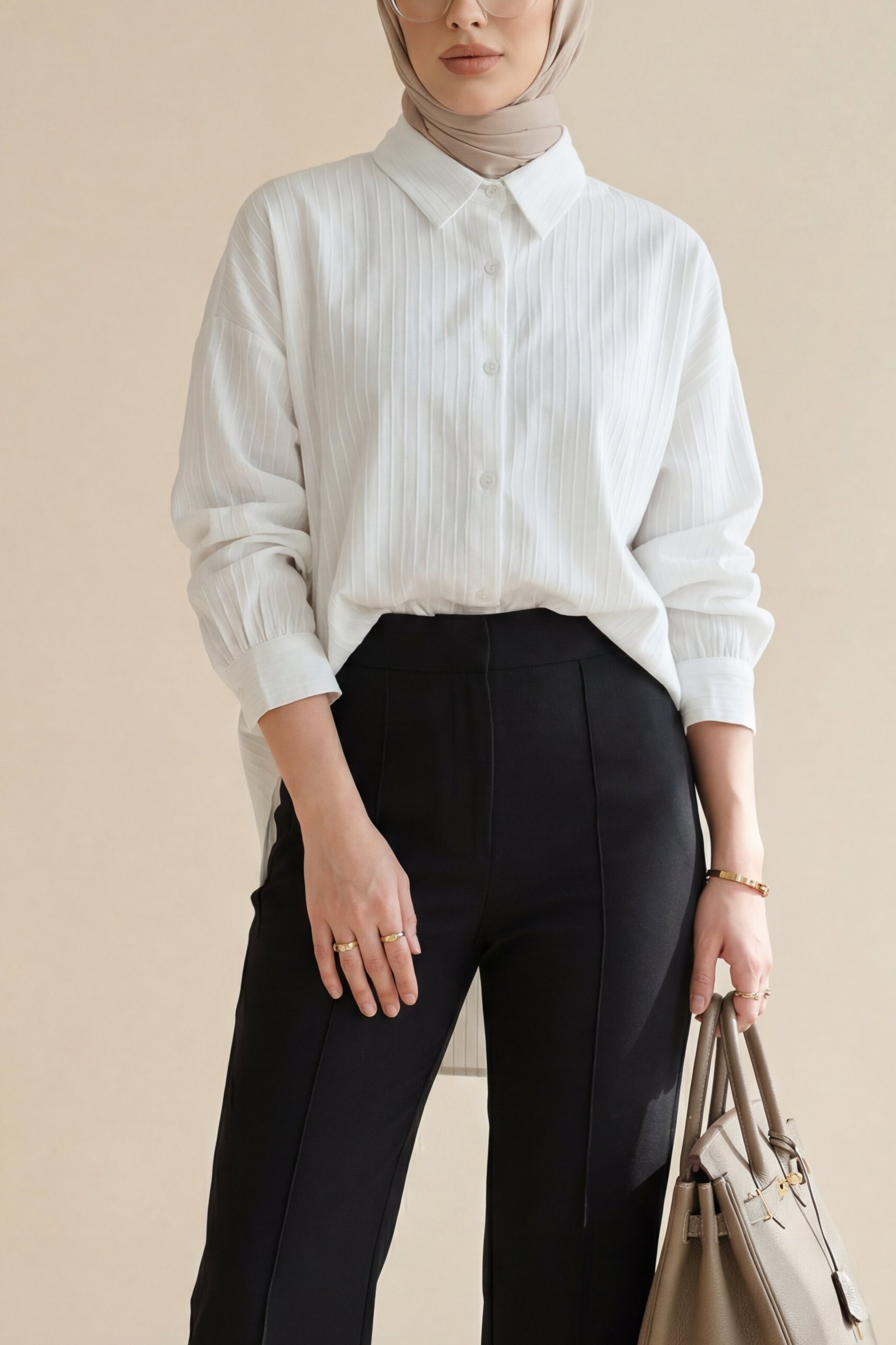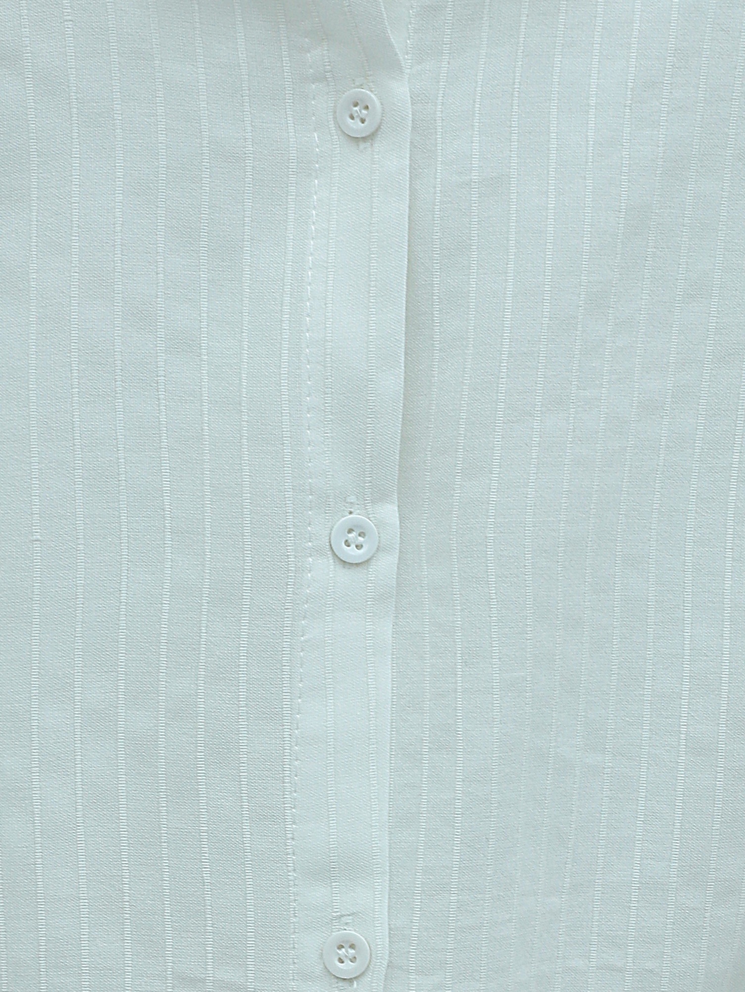 قميص فضفاض بنمط مخطط طويل وإغلاق بأزرار في الخلف. -أبيض سكري