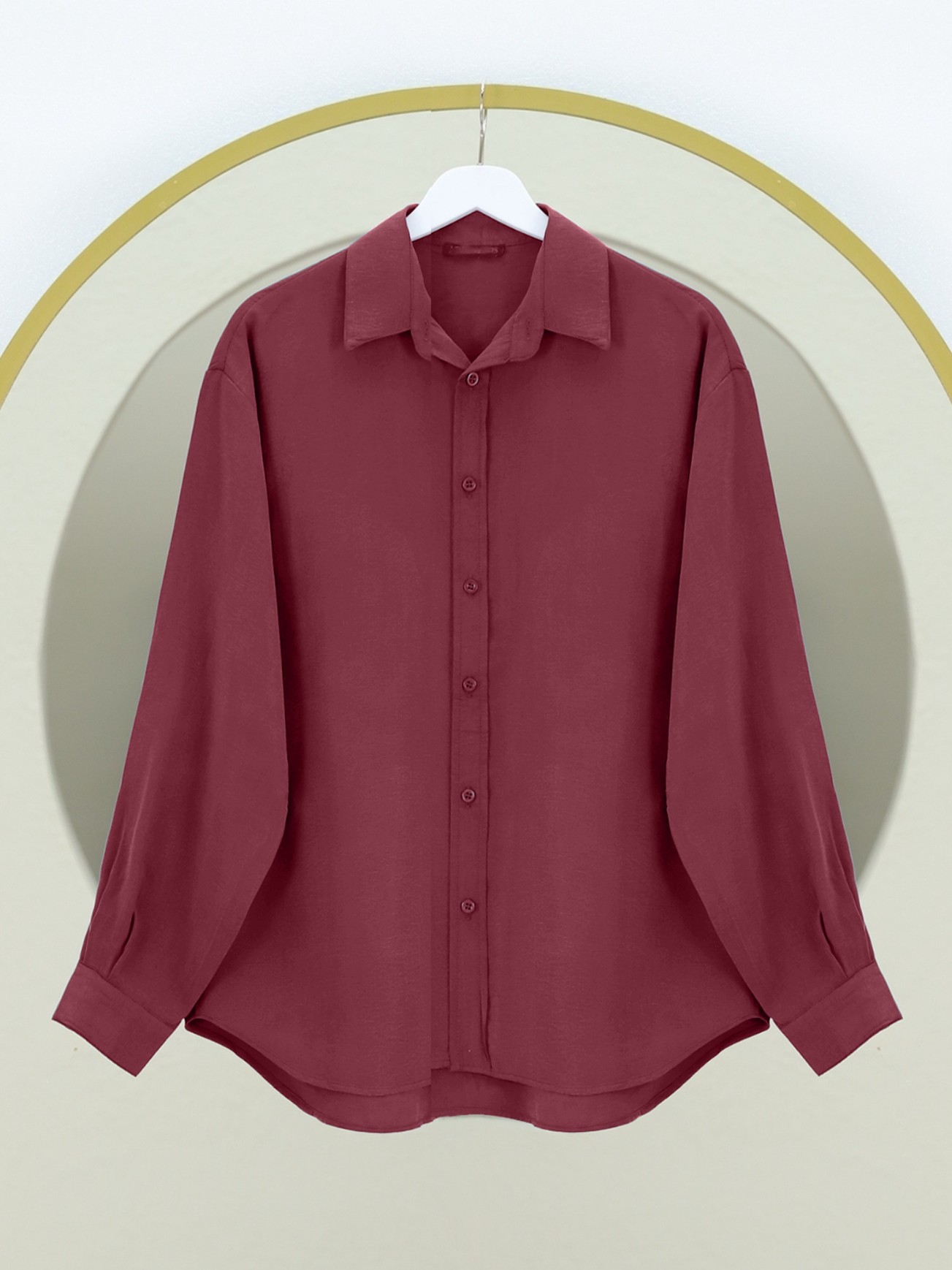 قميص بقصّة بيضاوية -بوردو