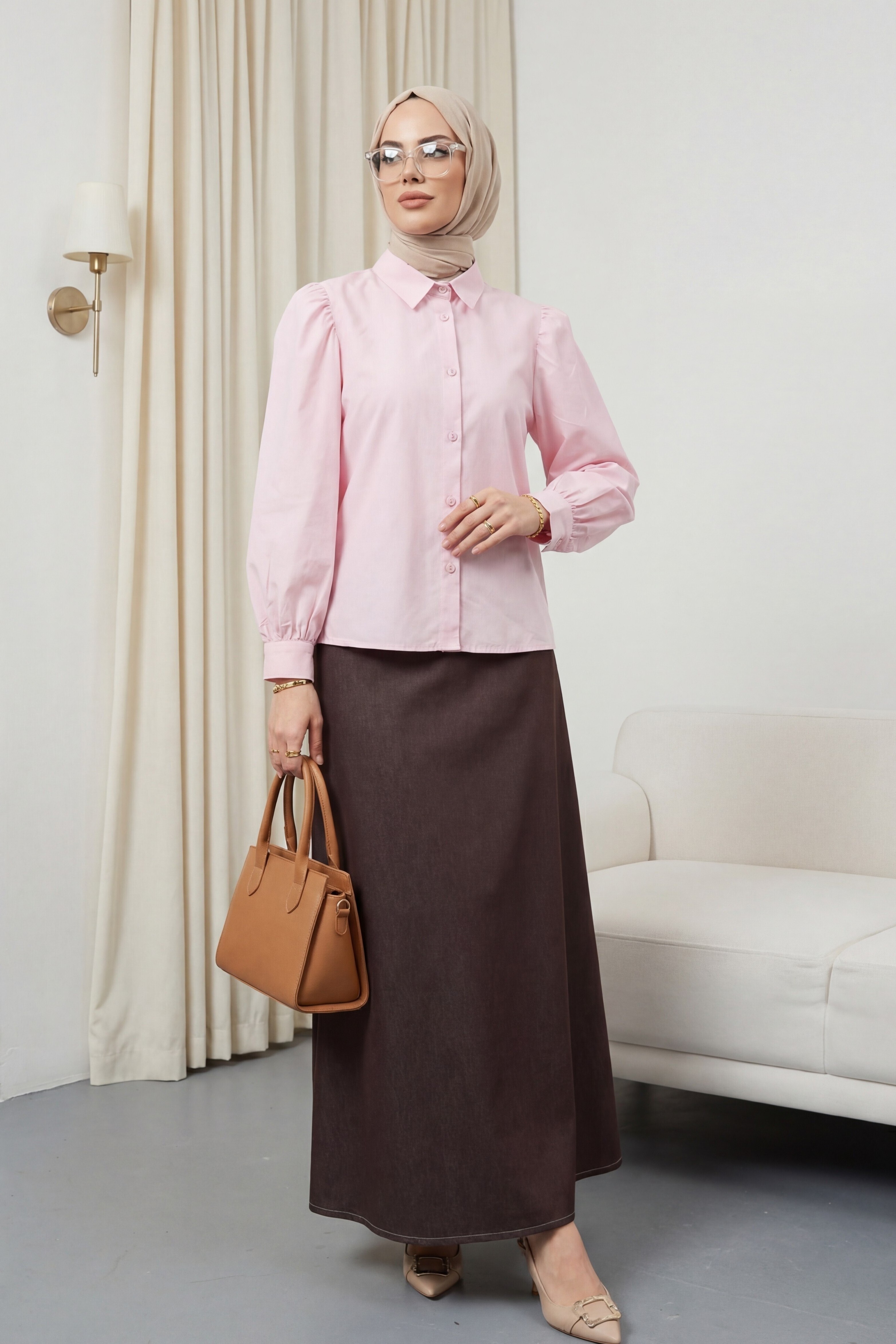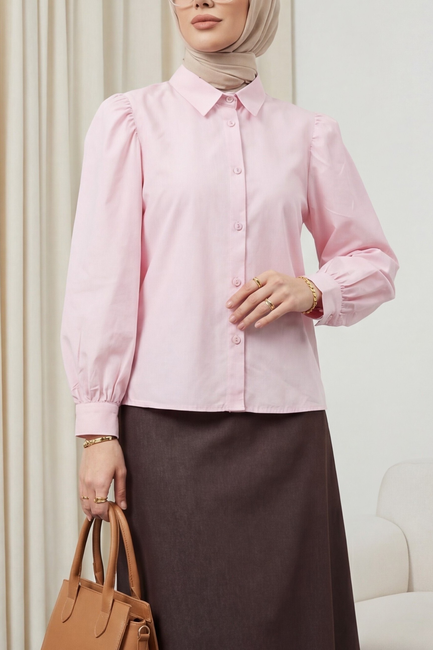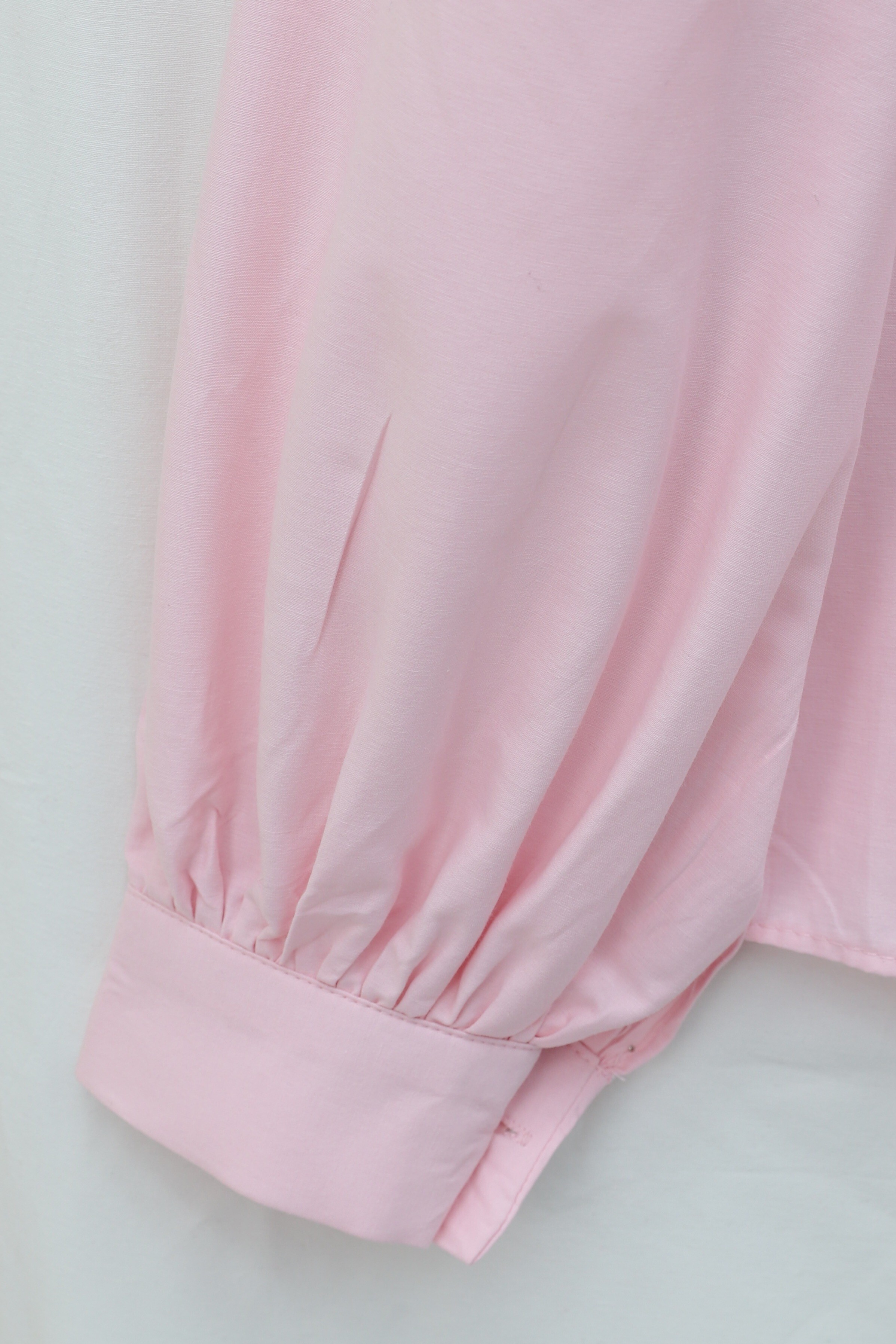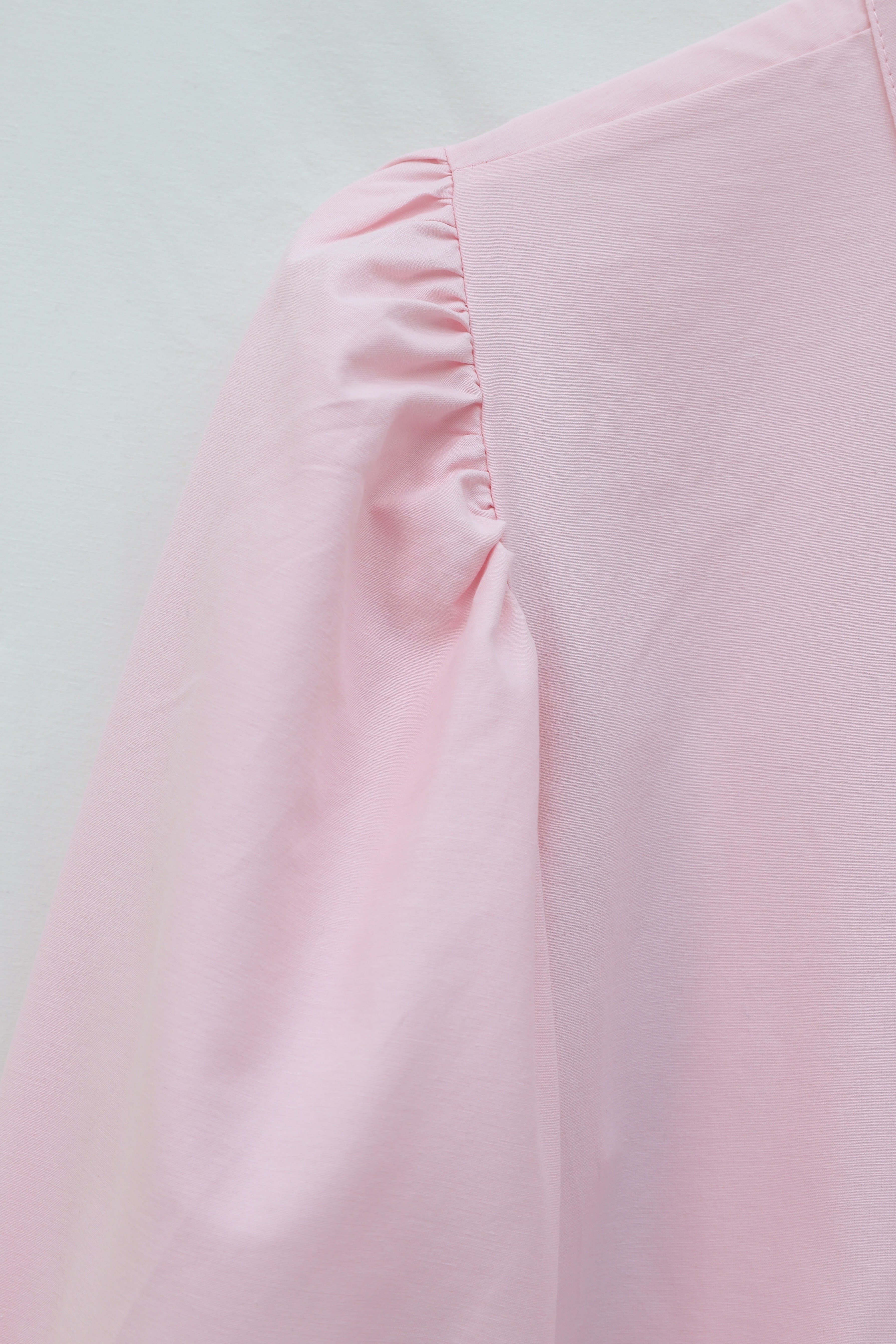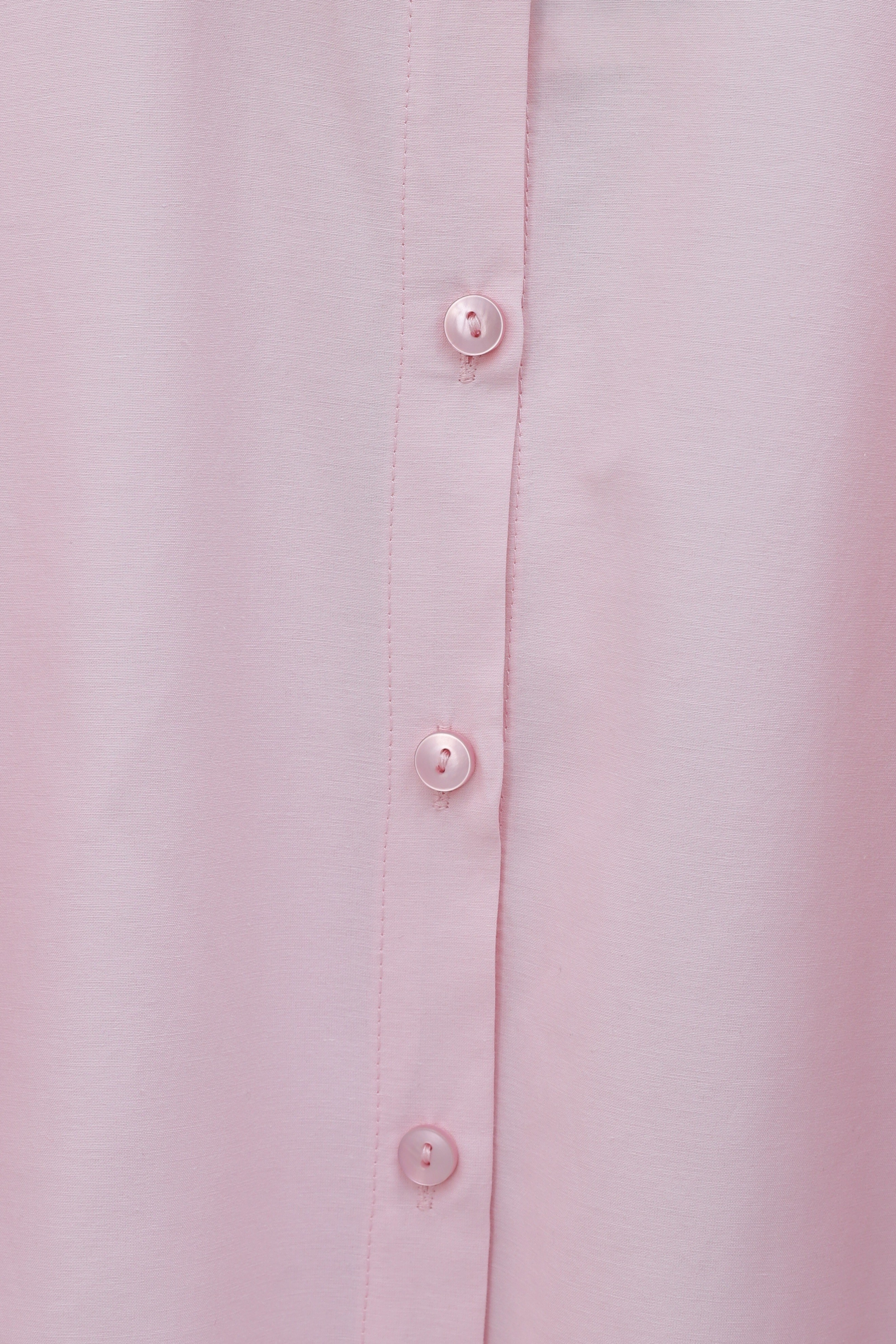 قميص قصير من قماش البوبلين مع أزرار أكمام على شكل بالون -وردي