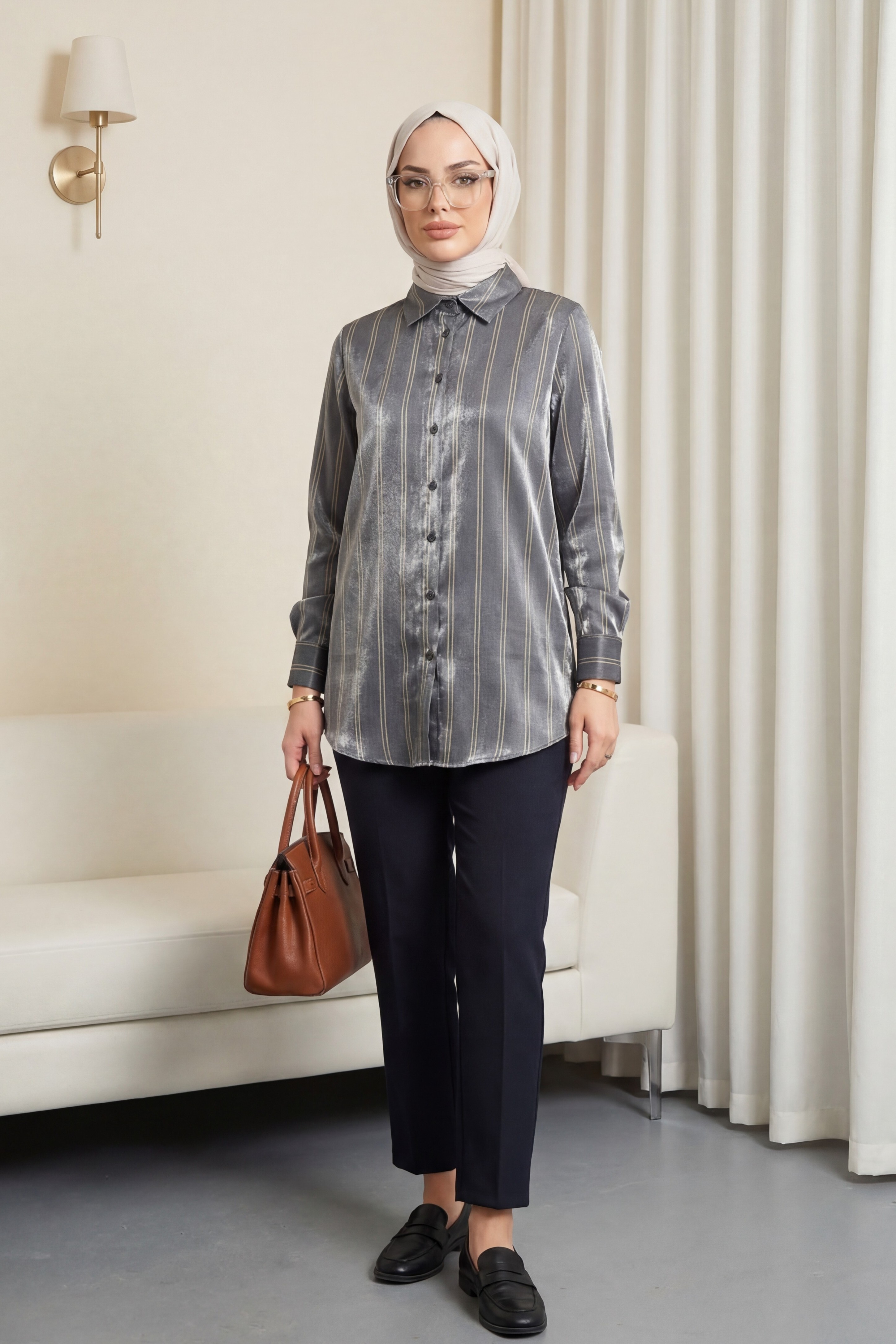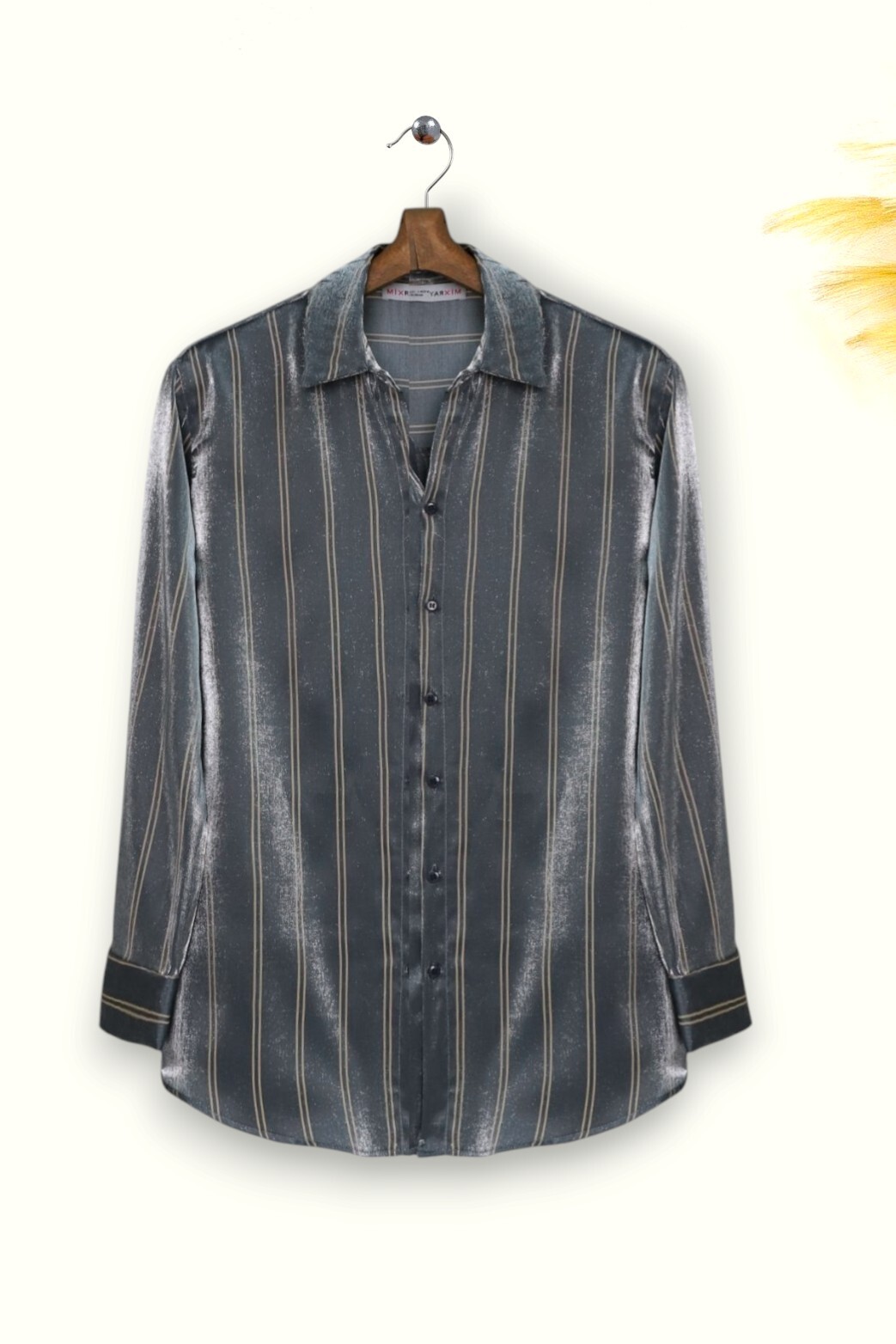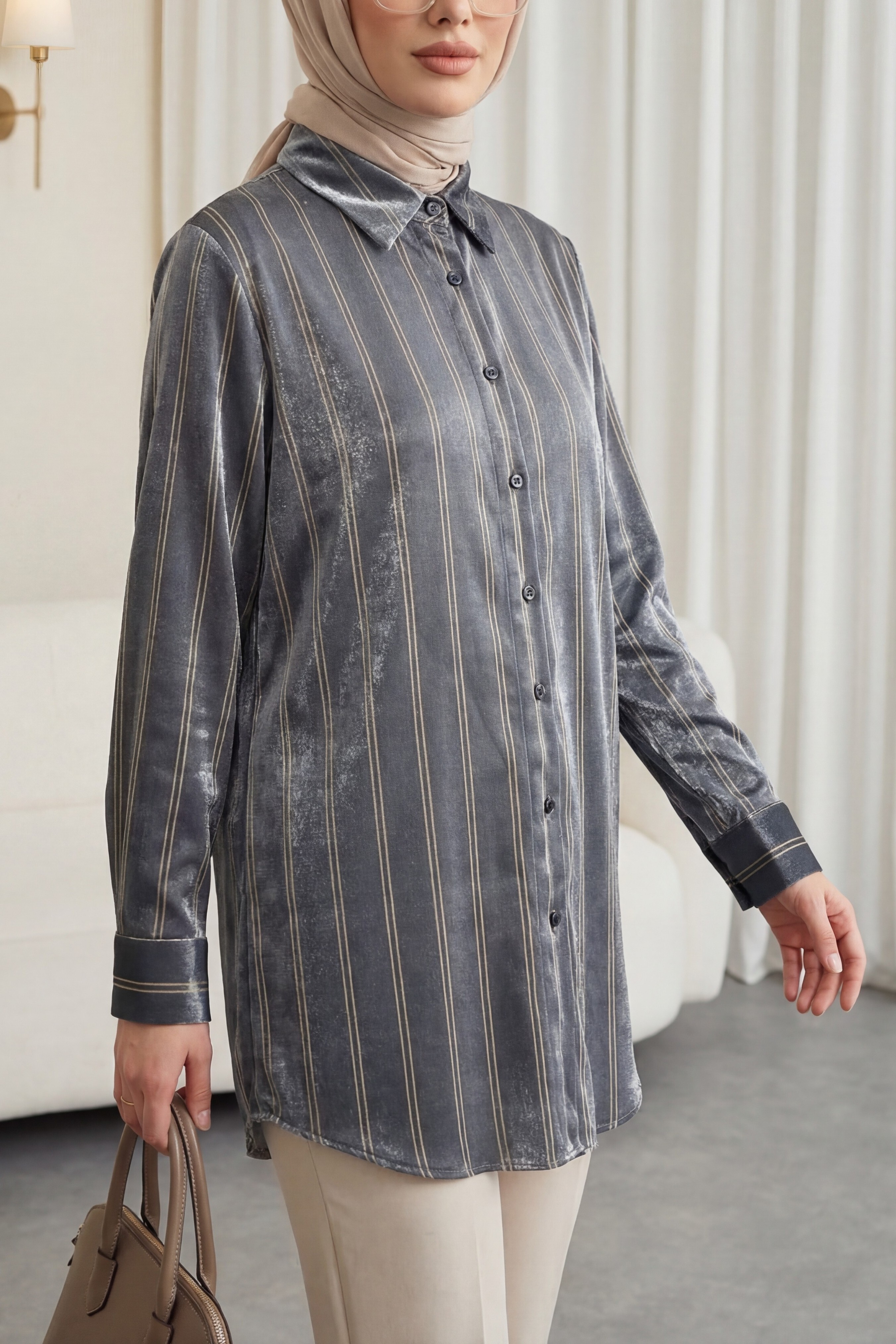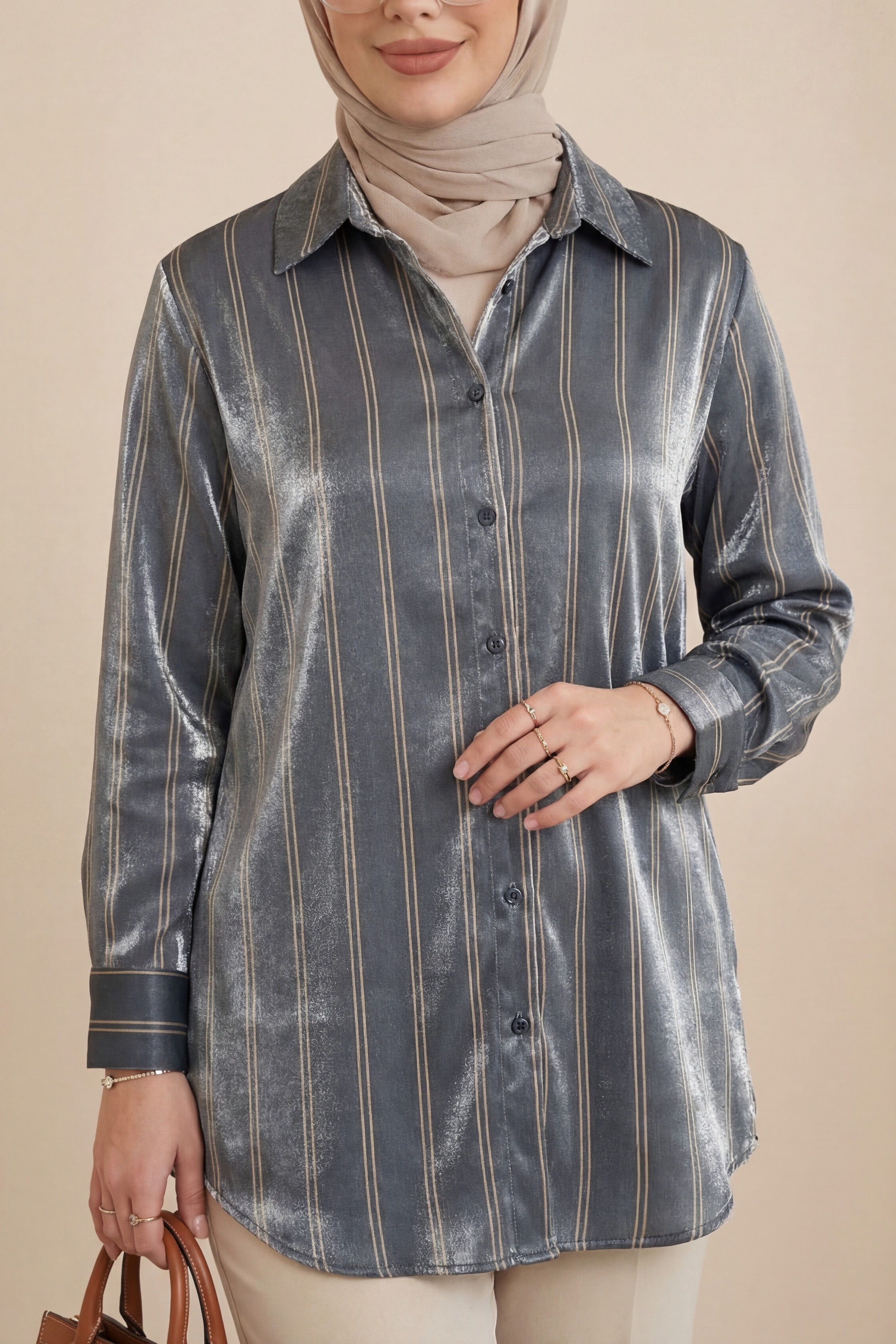قميص طويل مطرز بالترتر من الأمام -أسود
