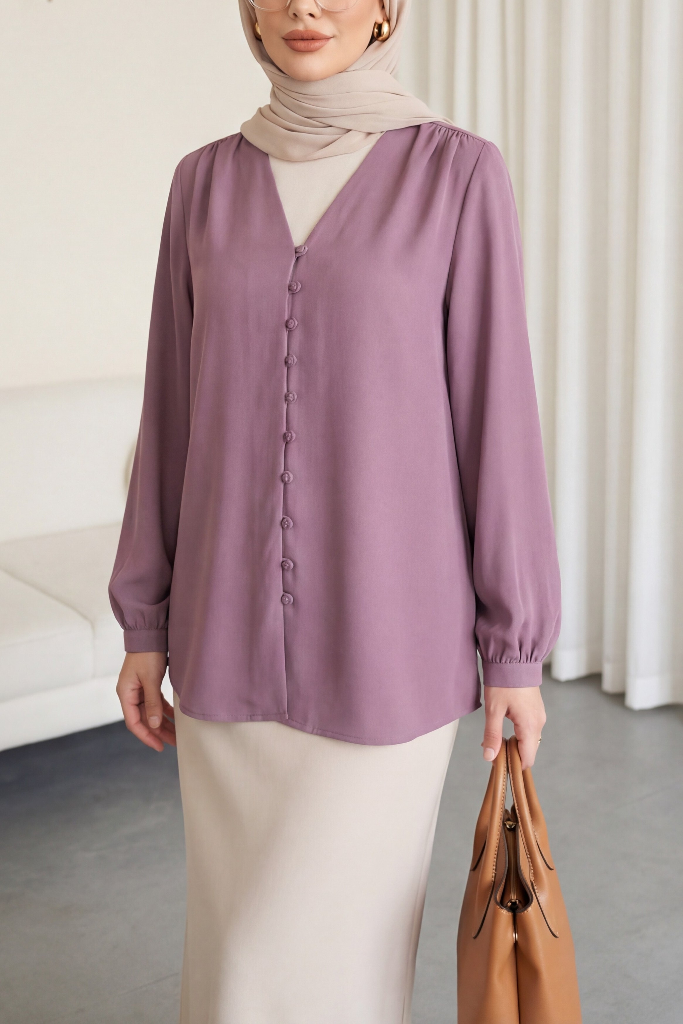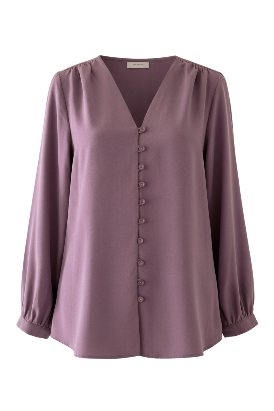 قميص طويل بفتحة رقبة على شكل حرف V وأزرار في الخلف -لون الكرز