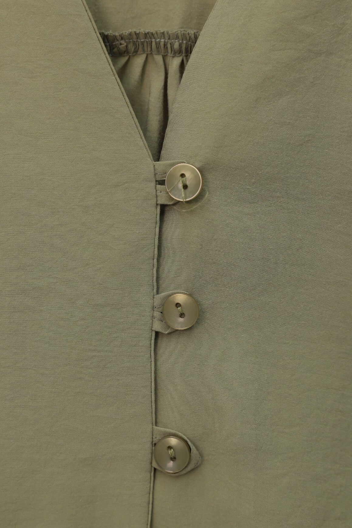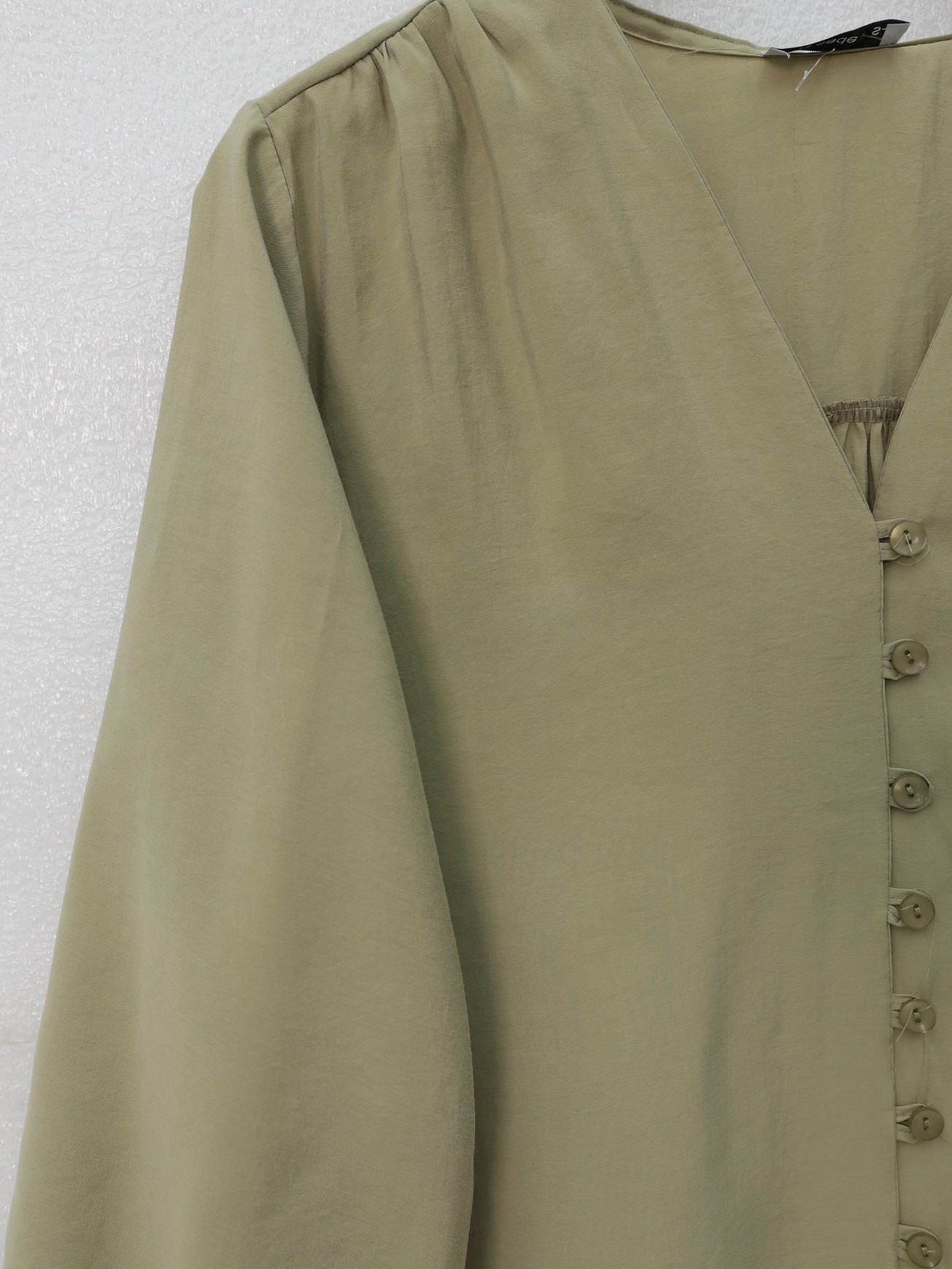 قميص طويل بفتحة رقبة على شكل حرف V وأزرار في الخلف -زيتون
