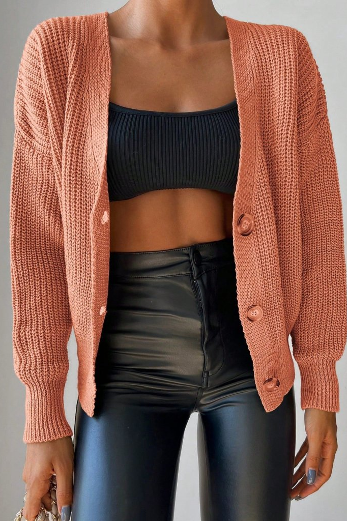 بلوزة نسائية محبوكة بأكمام طويلة وأزرار - رمز المخزون: 174553