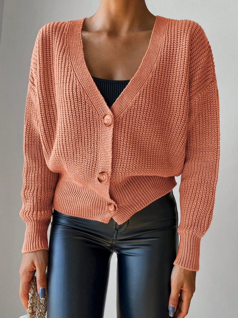 بلوزة نسائية محبوكة بأكمام طويلة وأزرار