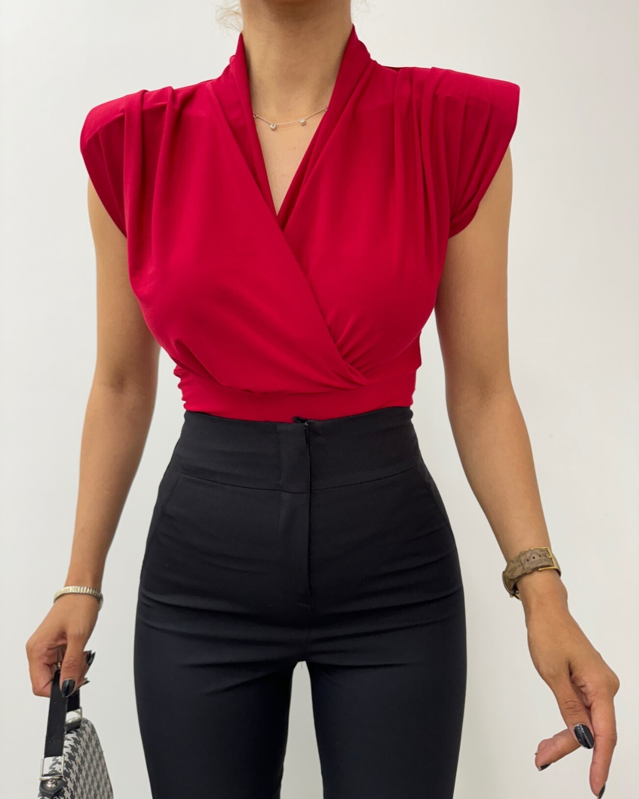 بلوزة ساندى بكشكشة على الأكتاف وتصميم كروفيه تبرز بتصميمها العصري والأنيق. تضيف تفاصيل الكشكشة على الأكتاف والتصميم الكروفيه لمسة من الأناقة، بينما يوفر التصميم بدون أكمام راحة خلال الأشهر الدافئة. مثالية للاستخدام اليومي والمناسبات الخاصة، ستكون هذه البلوزة جزءاً لا غنى عنه في خزانتك.