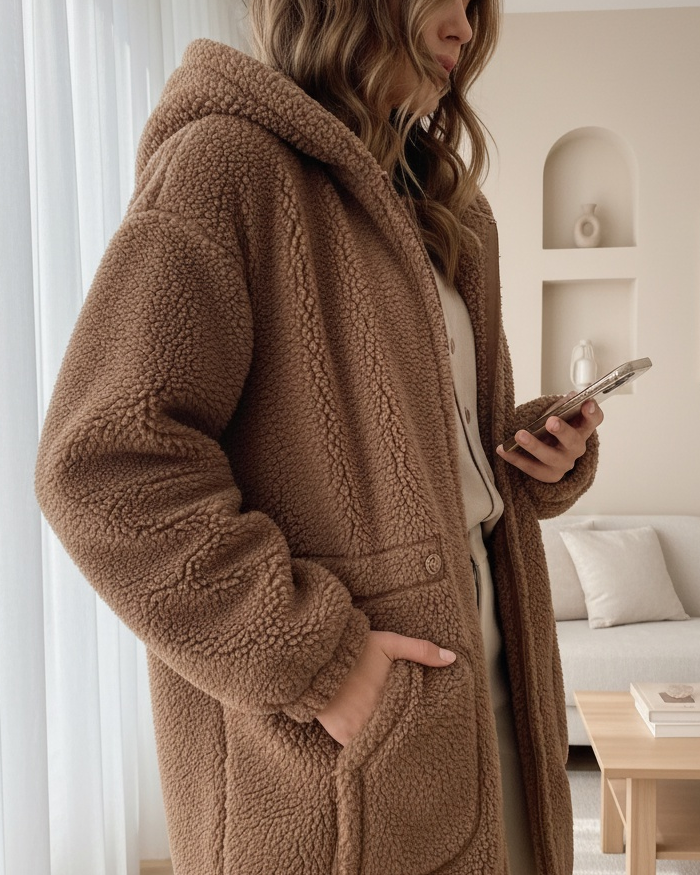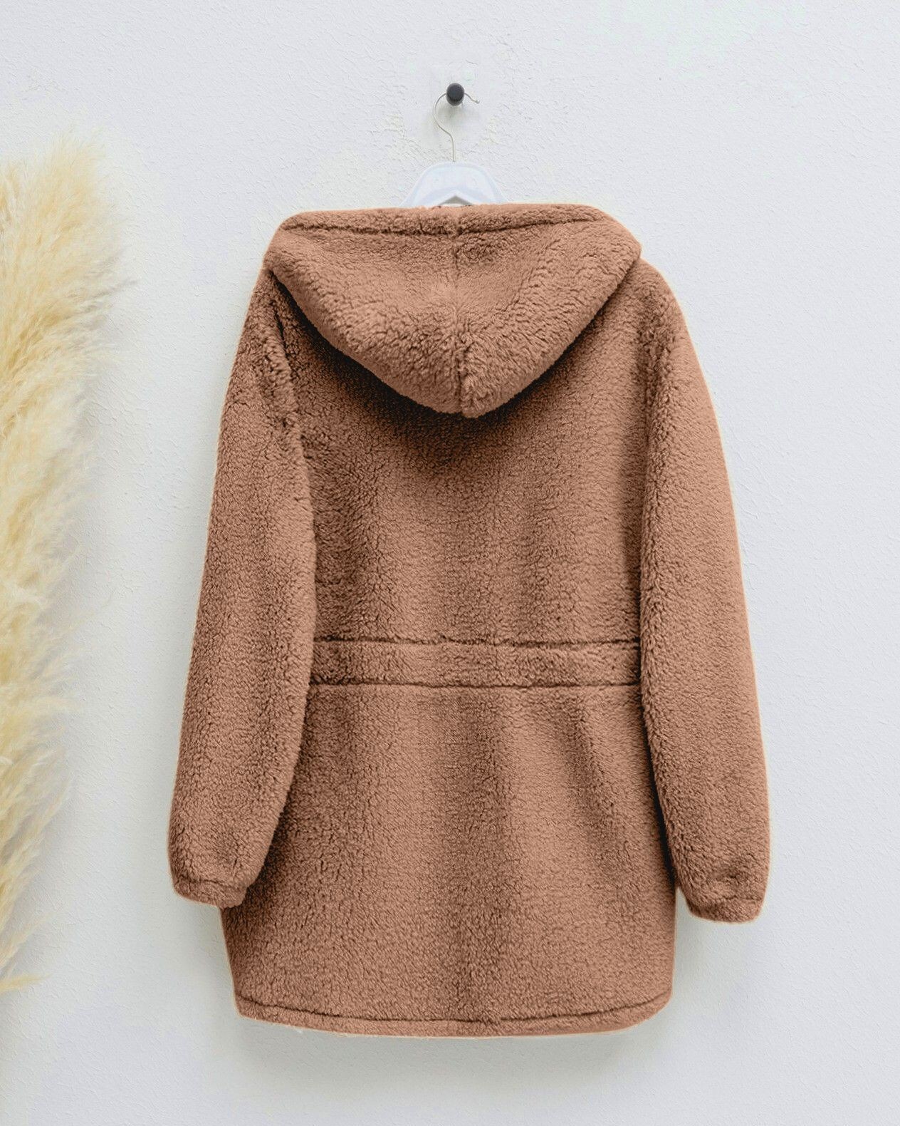 معطف قطيفة بغطاء للرأس مع خصر مطاطي -بني كاشف
