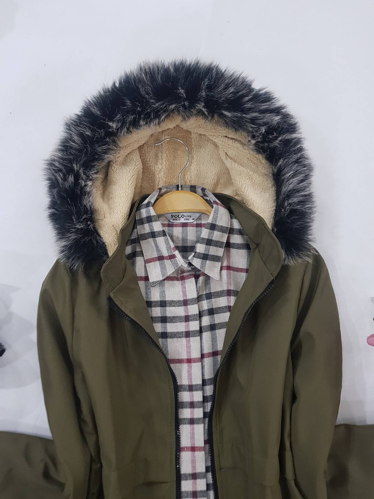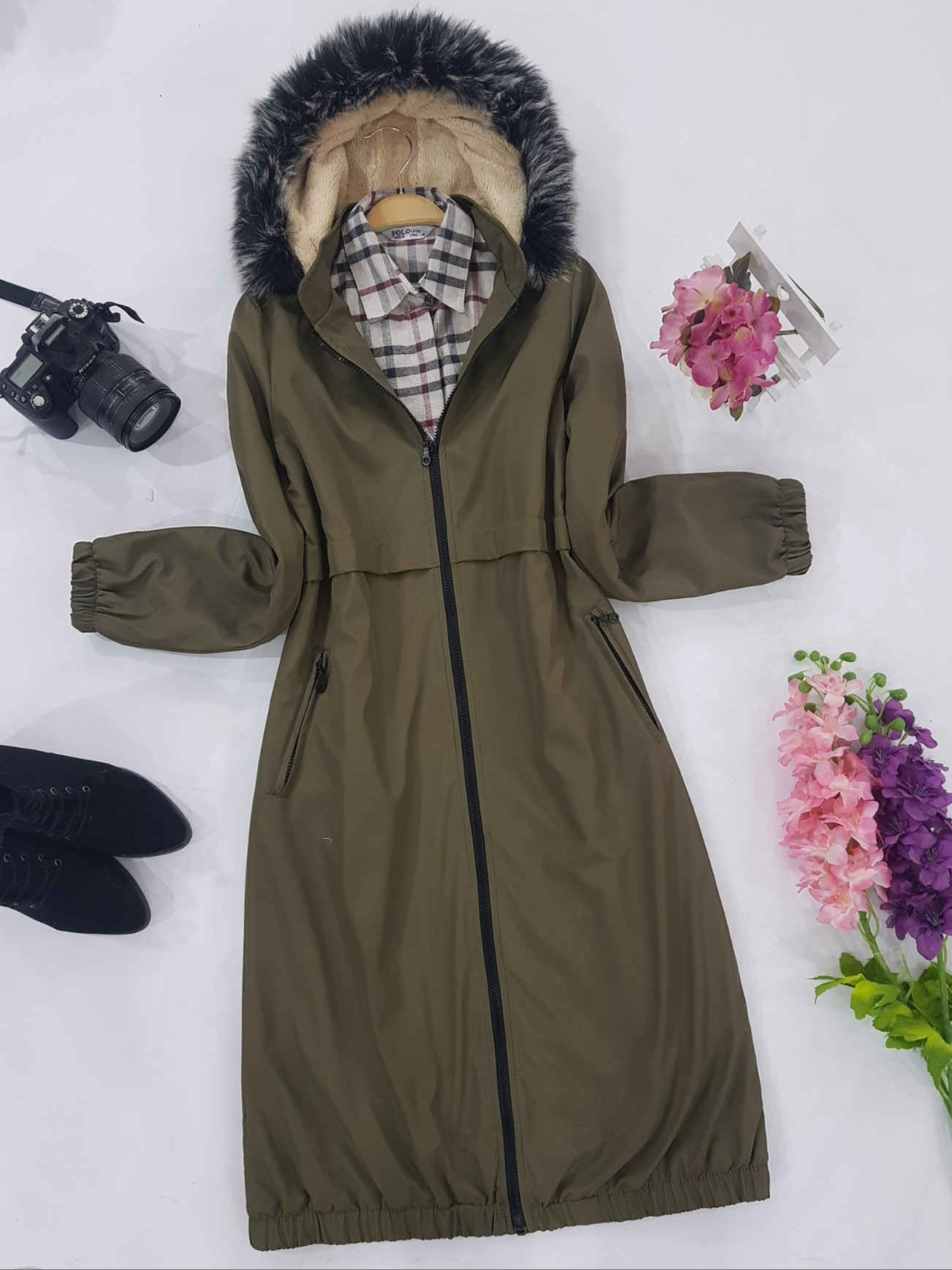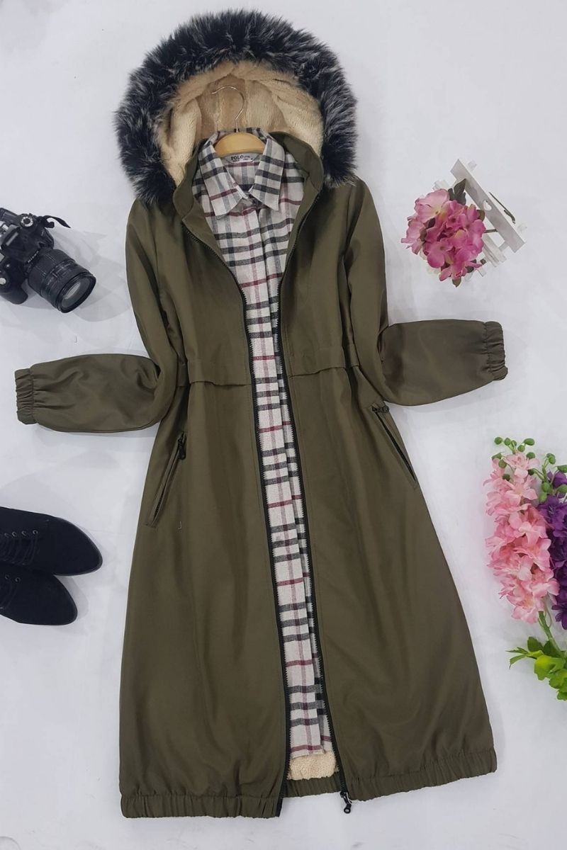 معطف من نسيج القطيفة -كاكي