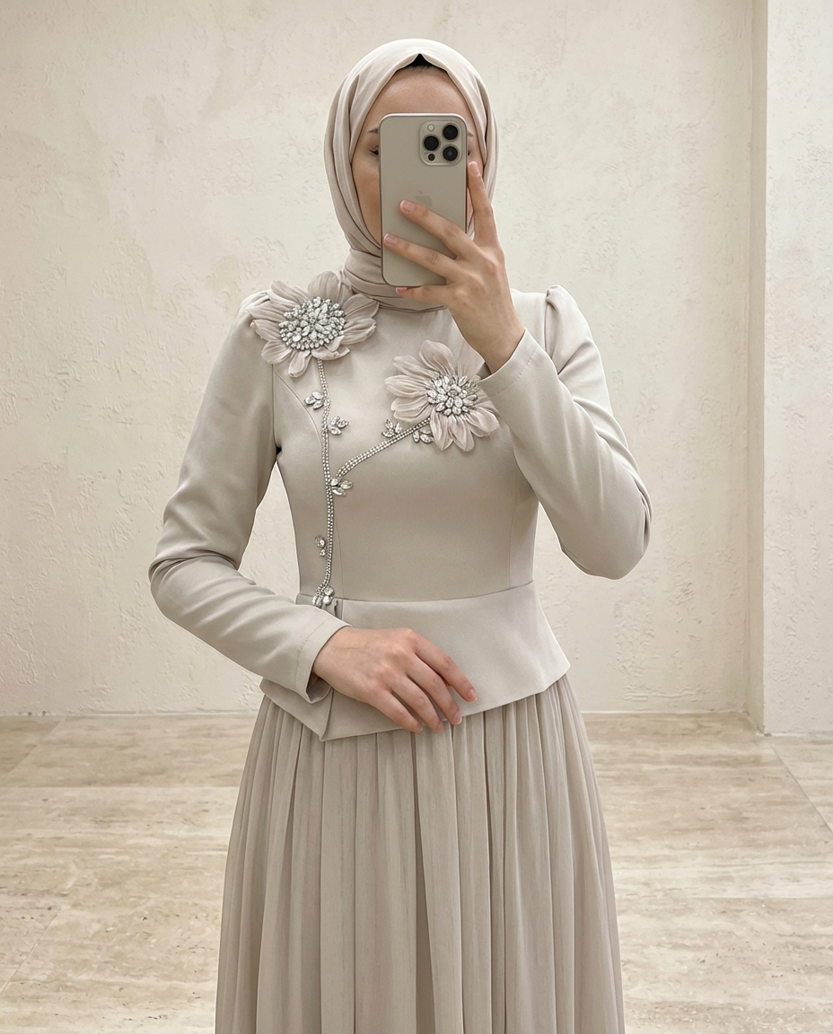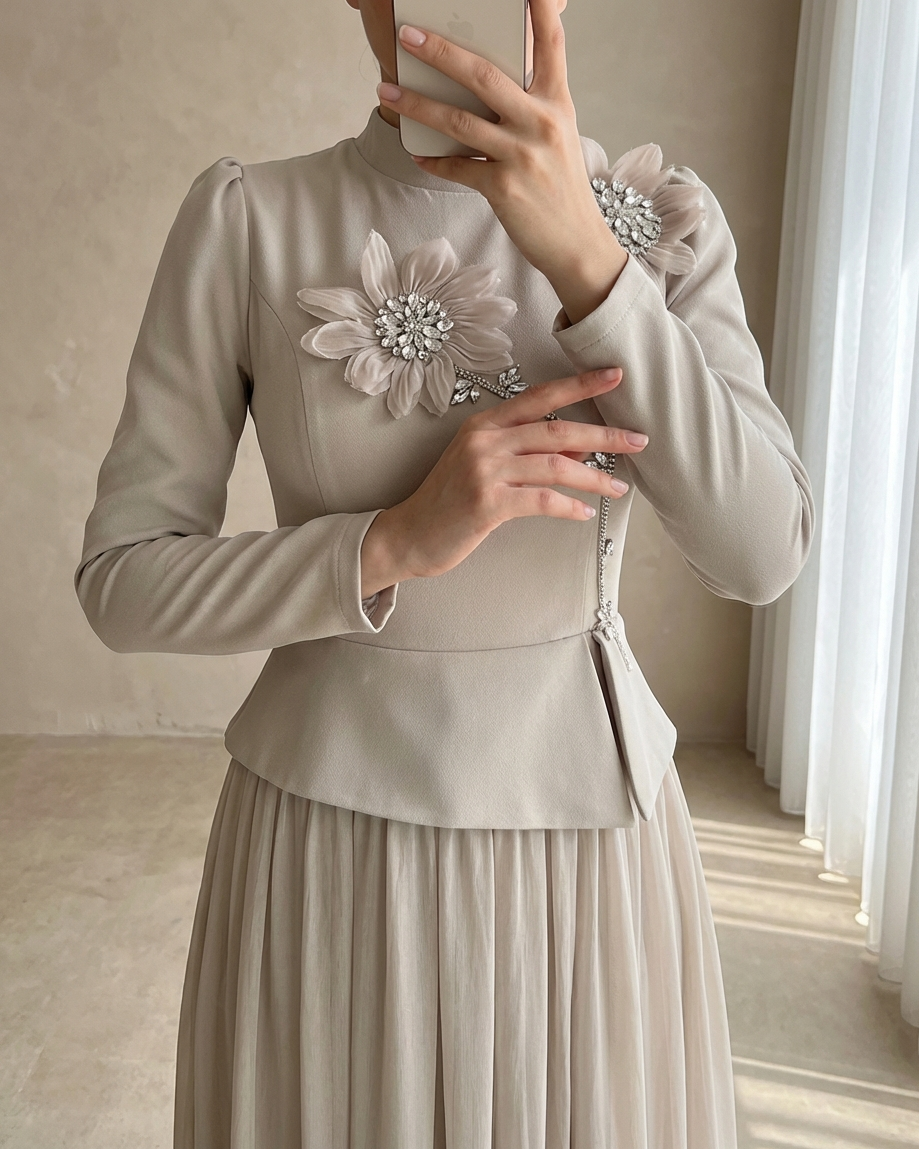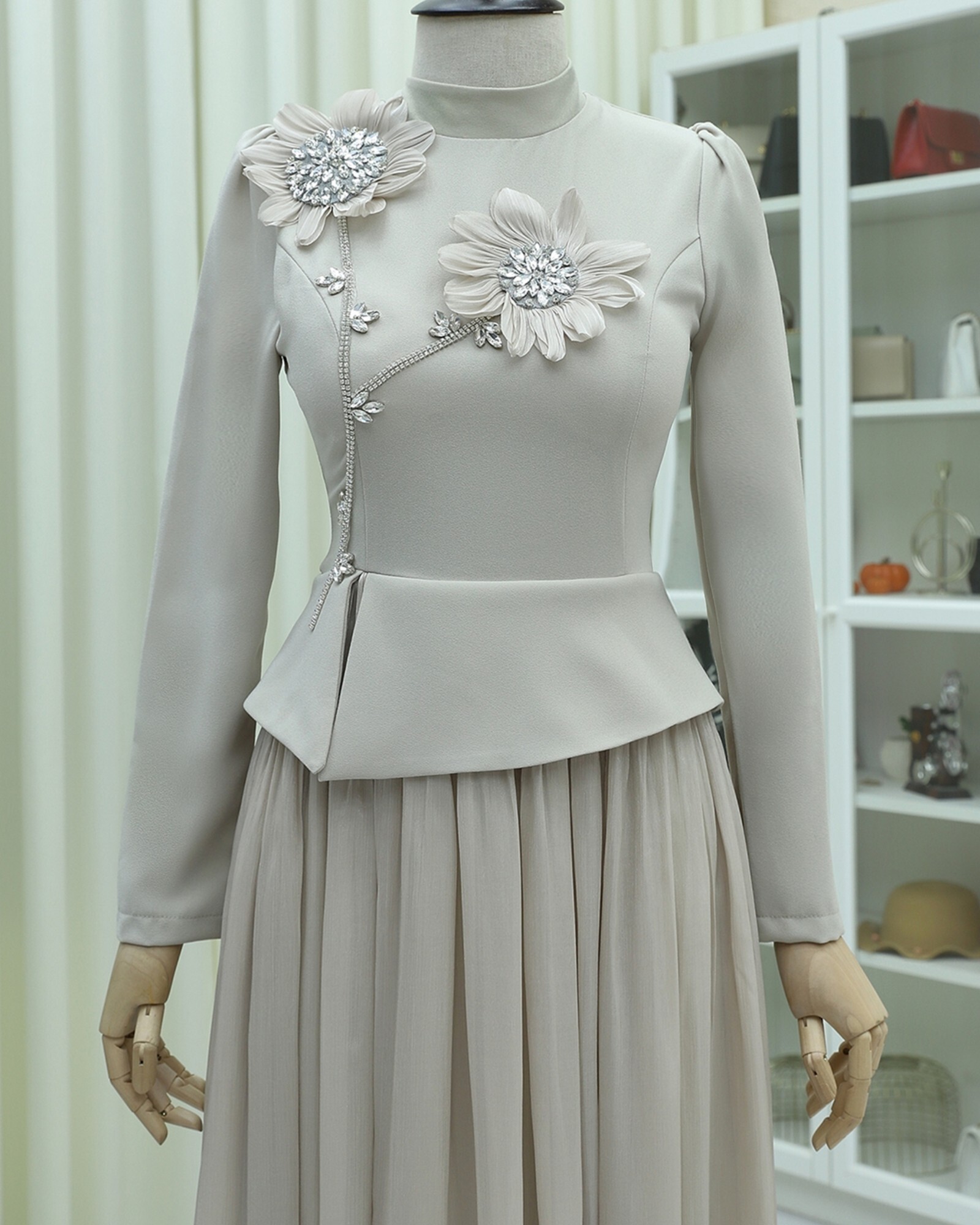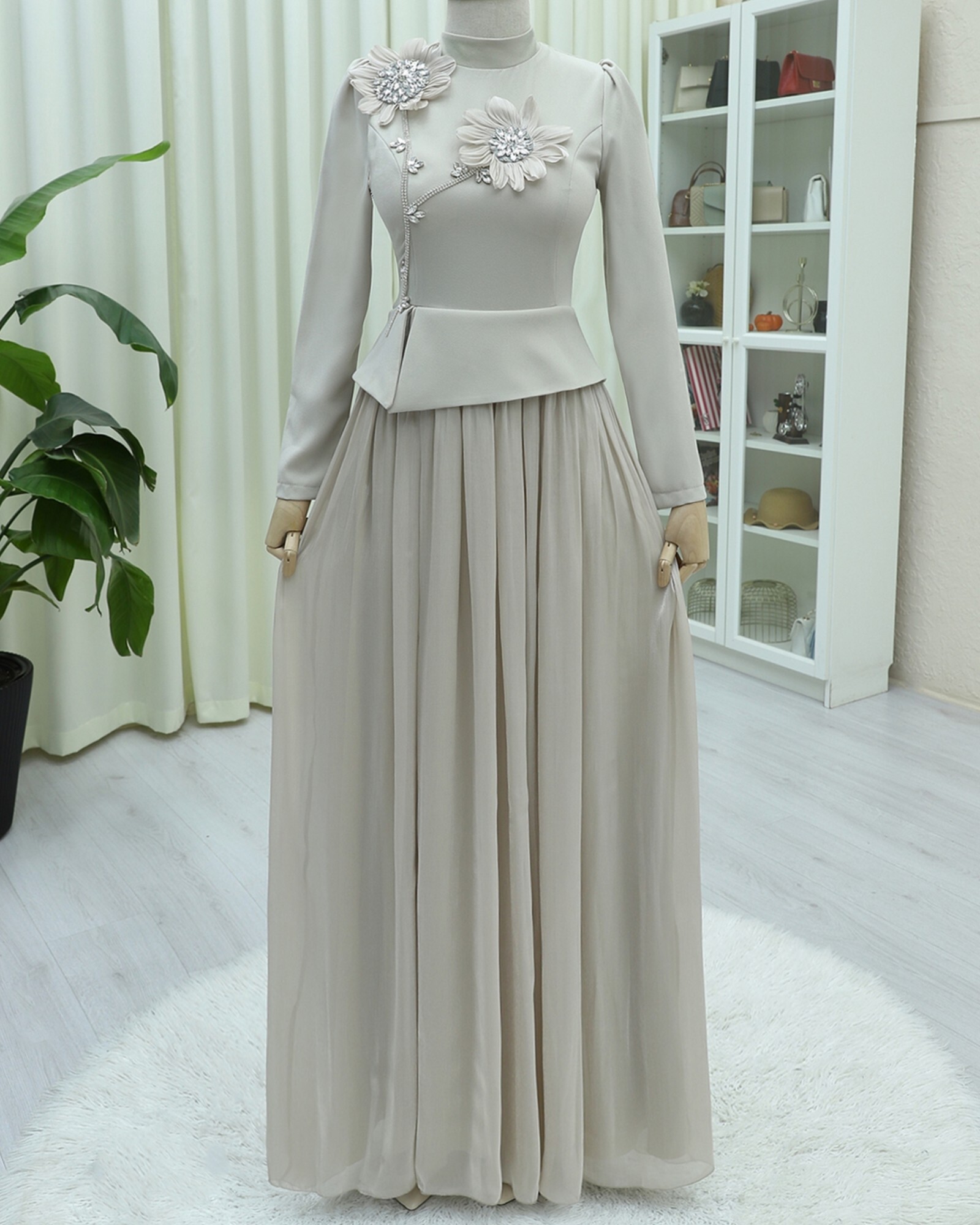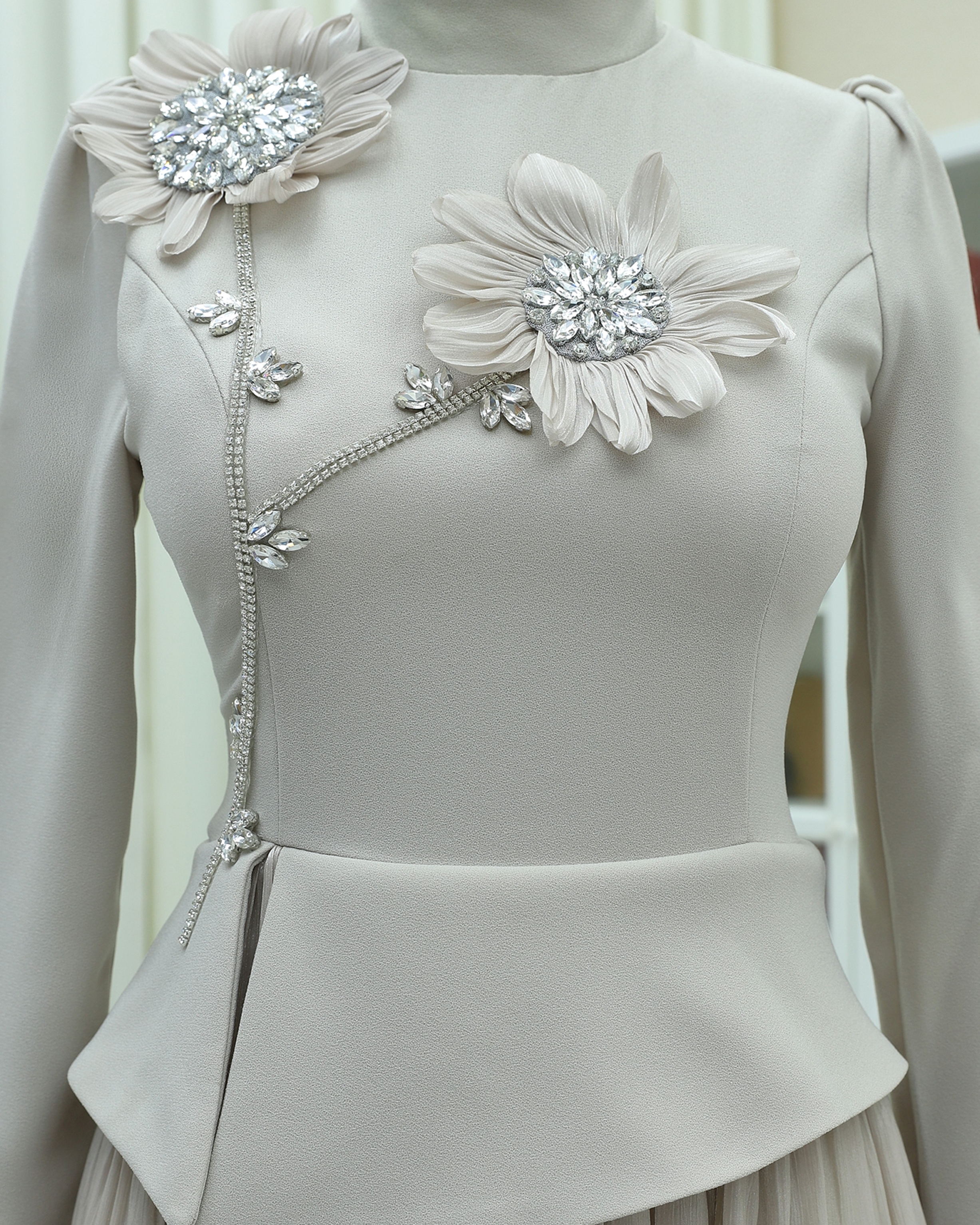 فستان ديزي مطوي وتنورة منقوش -حجر