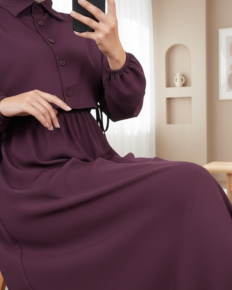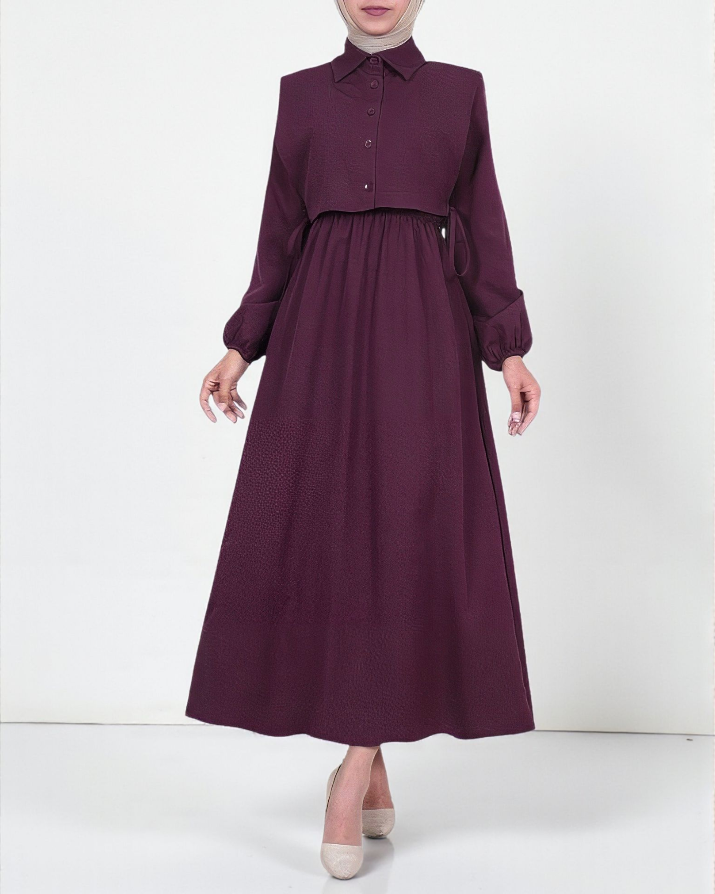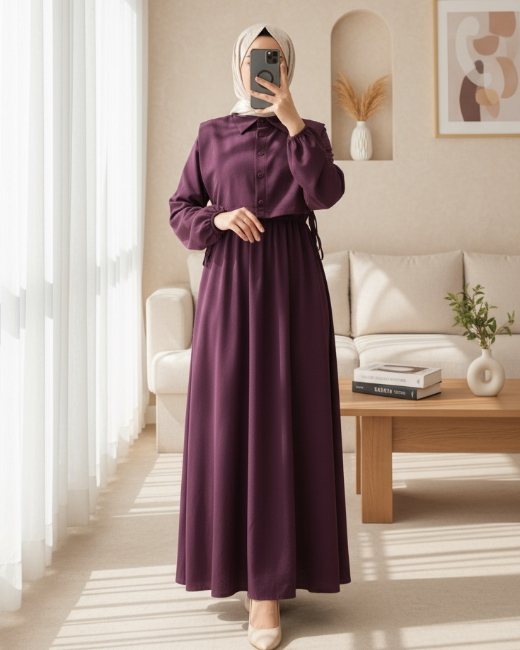 طقم الفستان بتفاصيل قميص هو تصميم عصري يجمع بين الأناقة والراحة. يوفر الجزء العلوي ذو التفاصيل القميص مظهراً أنيقاً وراقياً، بينما يكمل الجزء السفلي الإطلالة بشكل أنيق مع شكل الفستان. يقدم هذا الطقم راحة طوال اليوم مع إبراز أناقتك. مناسب للاستخدام في بيئة العمل والمناسبات الخاصة، ويعد من القطع الأساسية التي يجب أن تكون في خزانة كل امرأة.