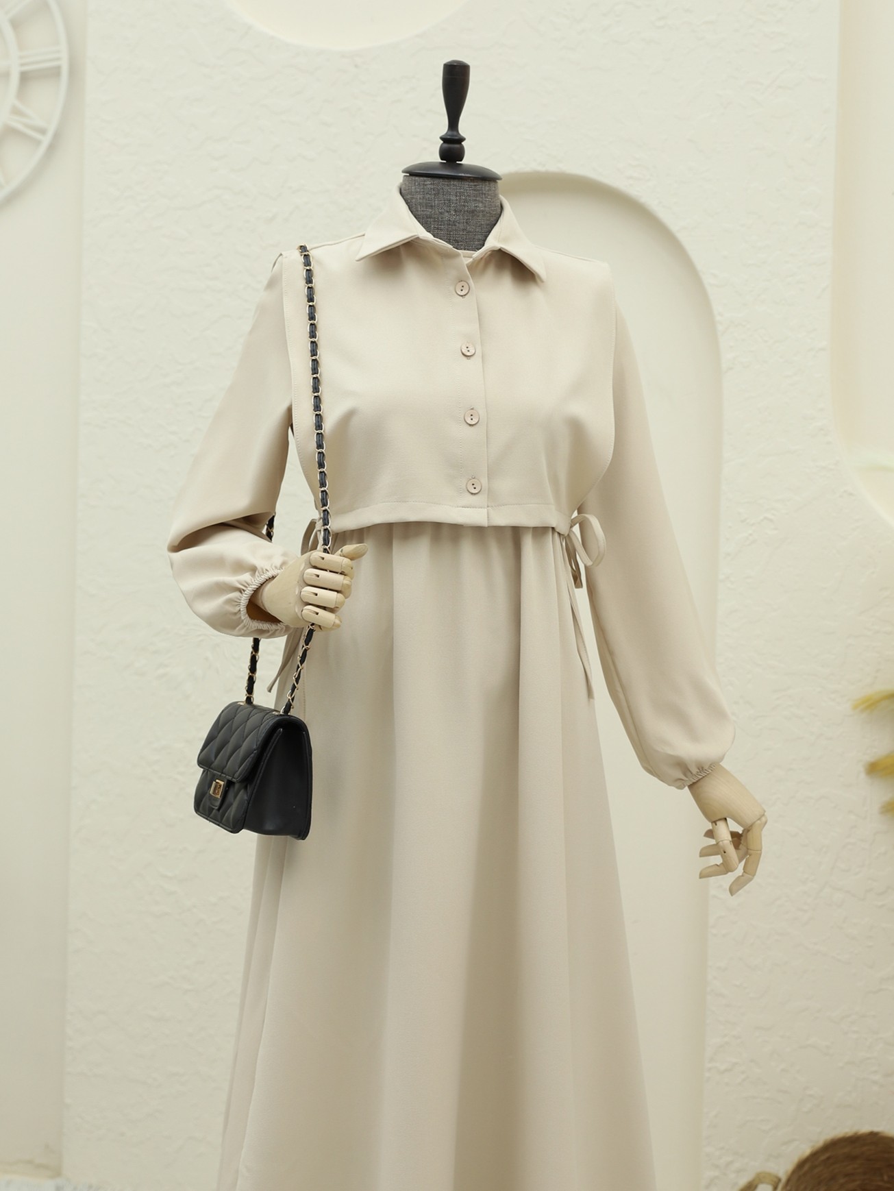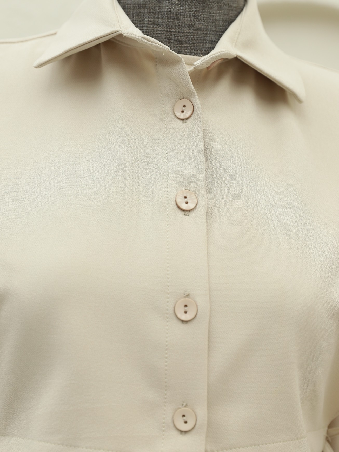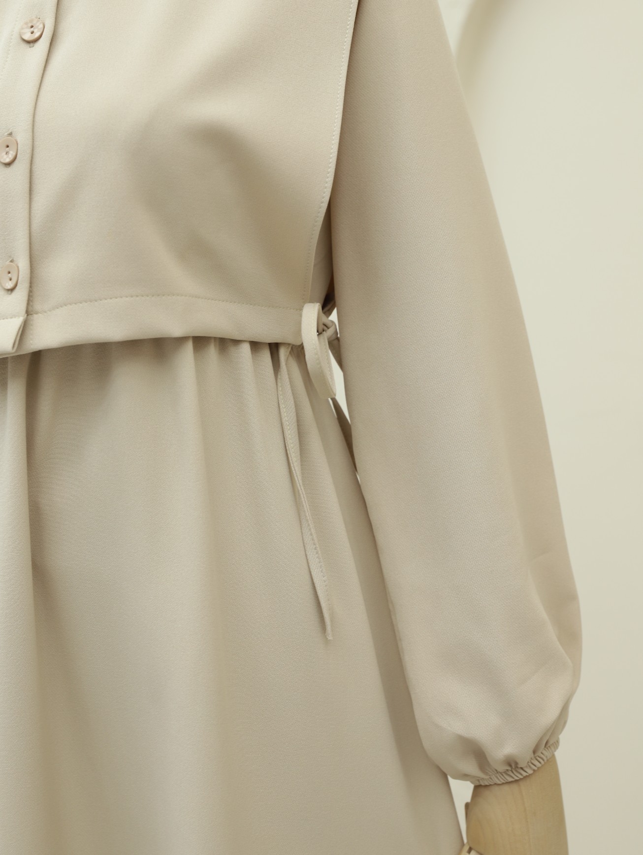 طقم فستان مع تفاصيل قميص -بيج كاشف