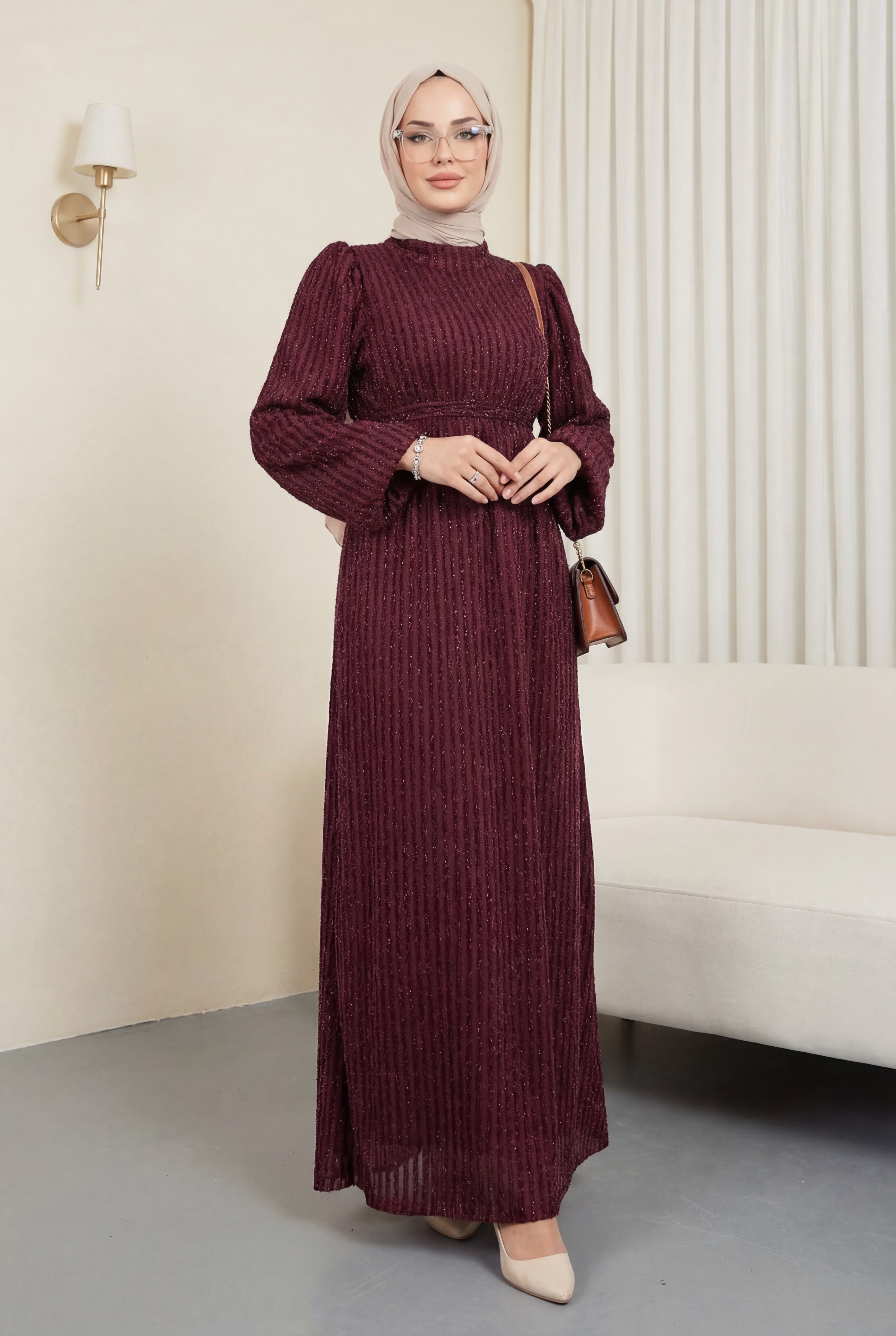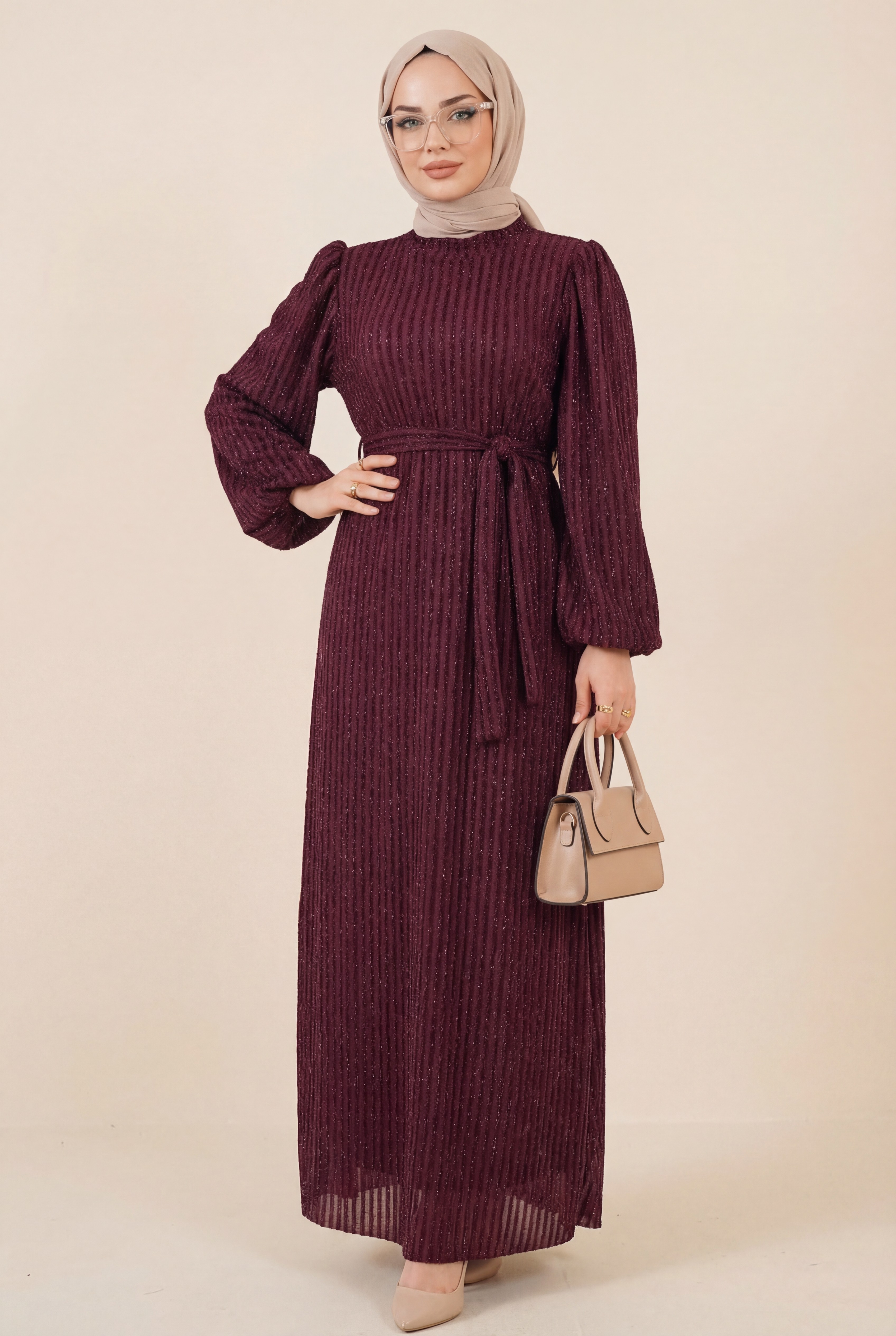 فستان بأكمام مرنة وخطوط لامعة مزخرفة بحزام هو خيار عصري وأنيق. تضيف الأكمام المرنة راحة وأناقة، بينما توفر الخطوط اللامعة لمسة من التألق. يحدد الحزام الخصر برفق، مما يخلق قوامًا جذابًا. مثالي للاستخدام اليومي والمناسبات الخاصة، هذا الفستان يجمع بين الأناقة العصرية والنعومة. مصنوع من قماش عالي الجودة، يمزج بين الراحة والأناقة.