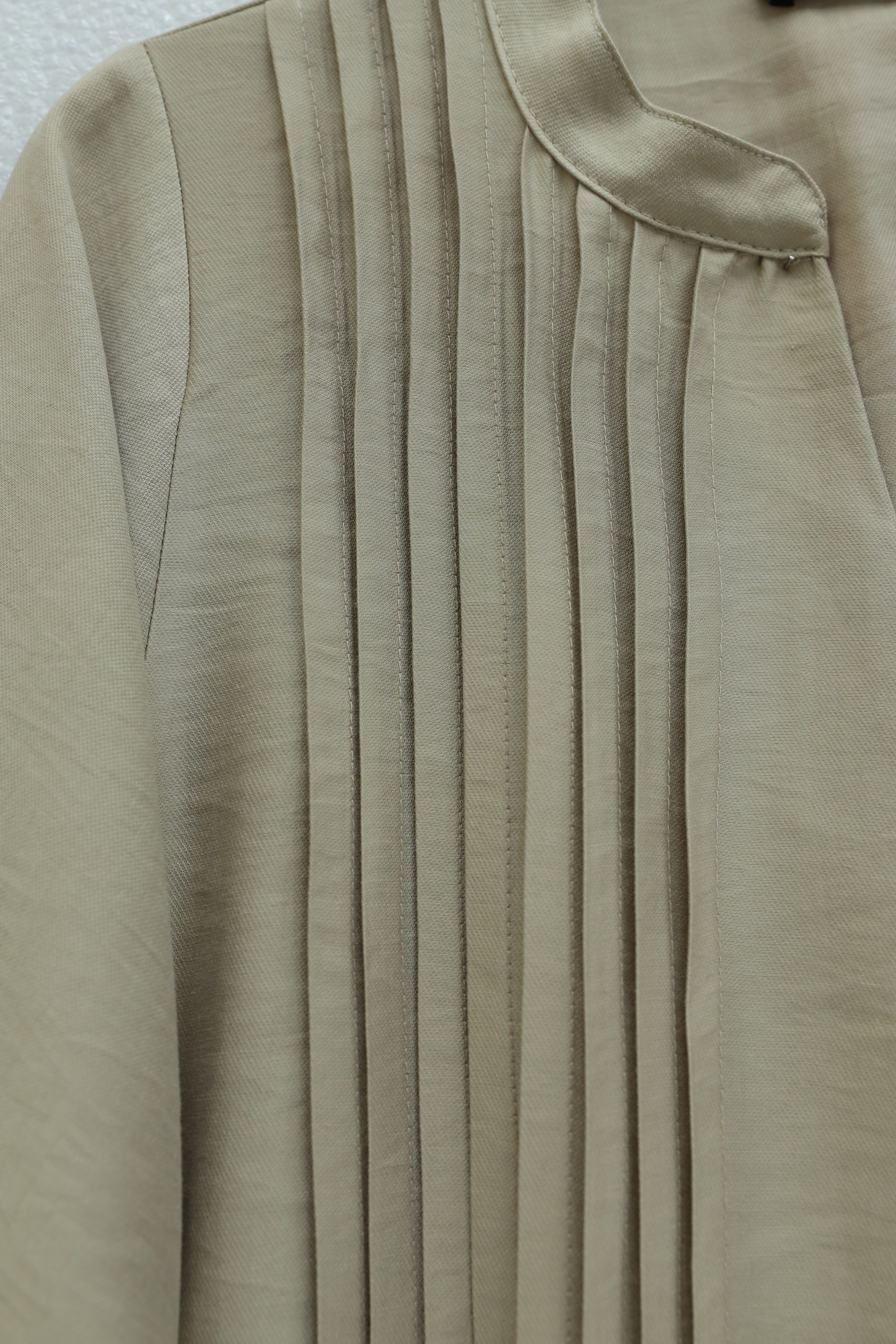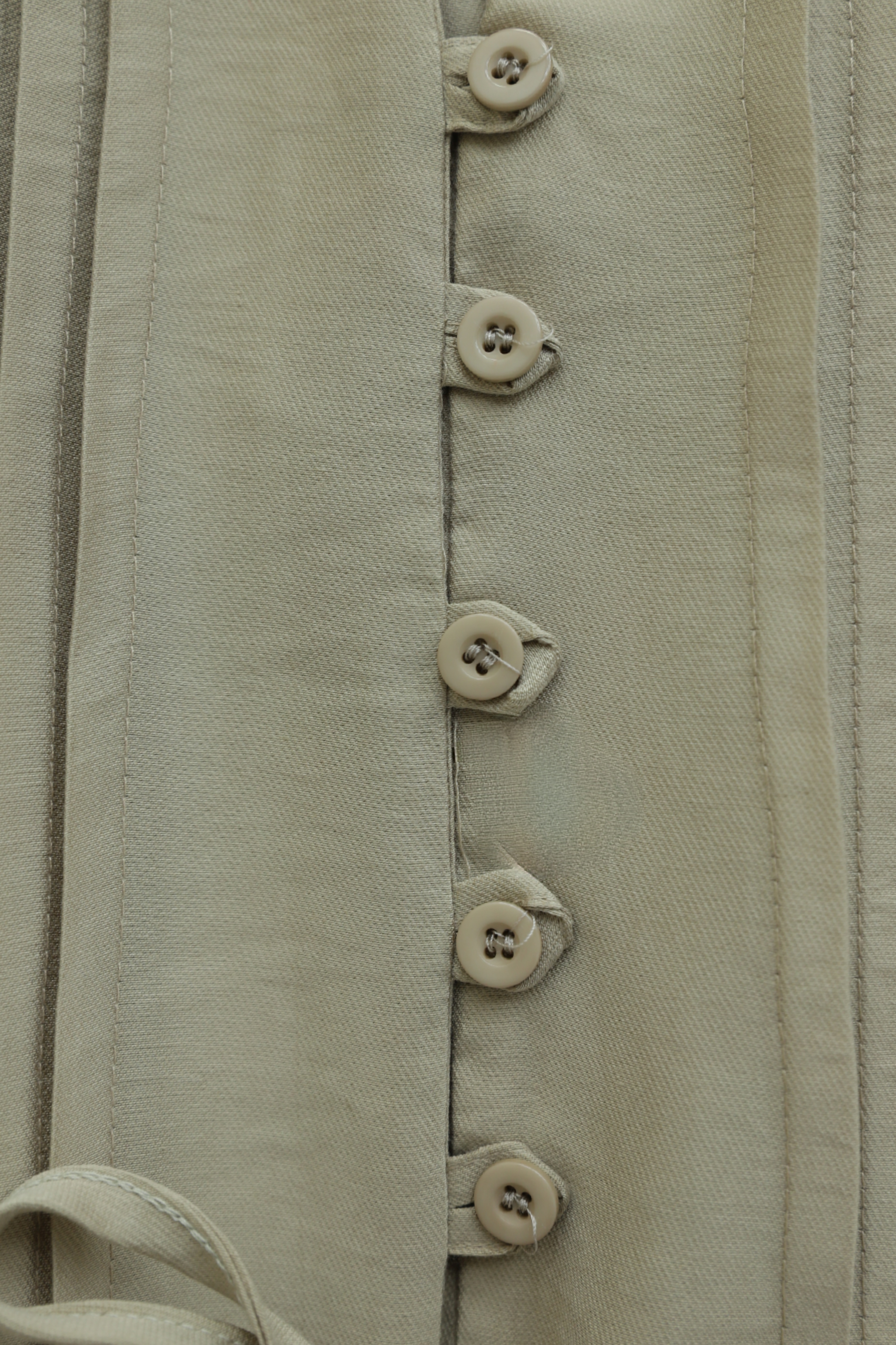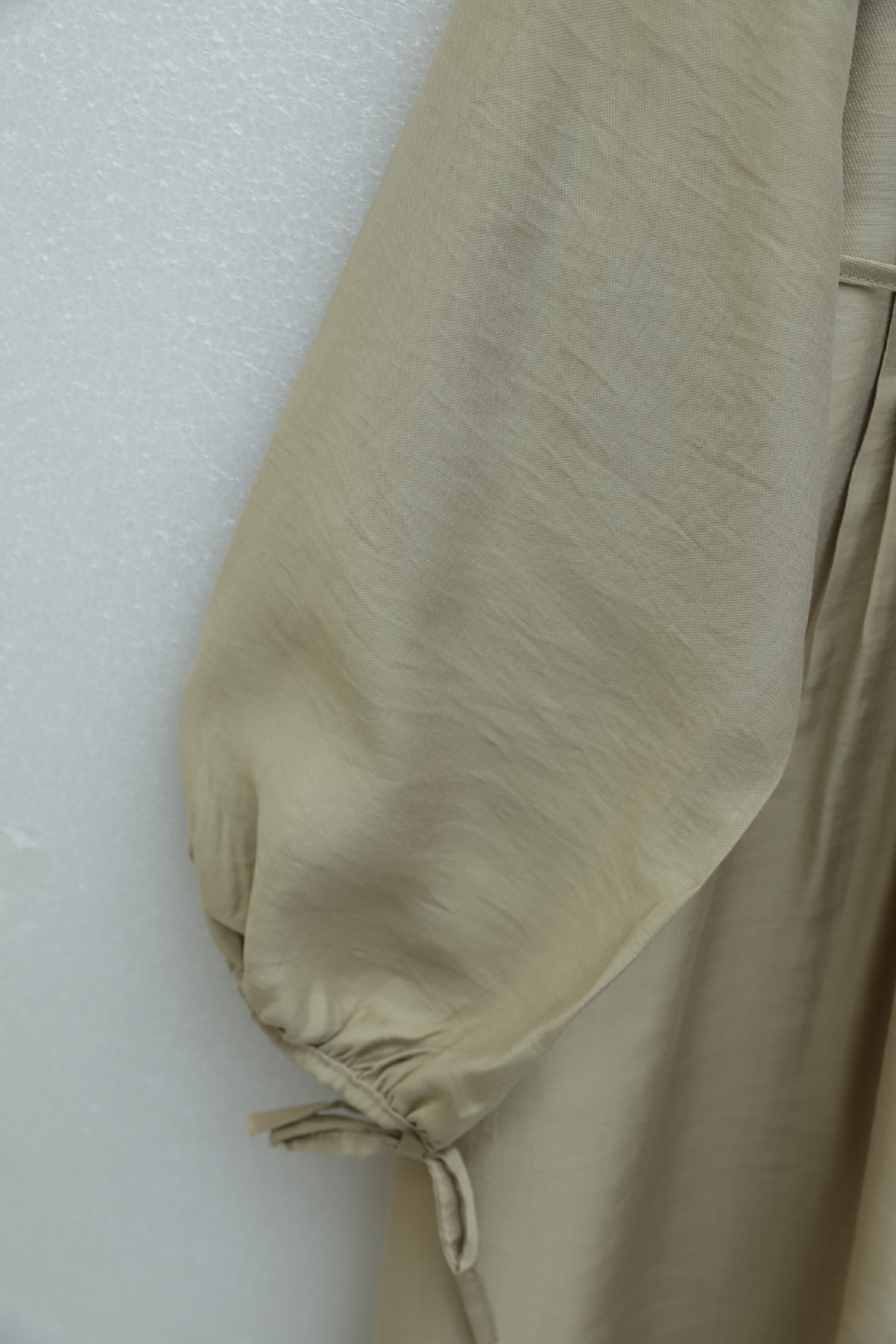 فستان تينسل مضلع بأزرار نصفية ورباط أمامي -اللون البيج
