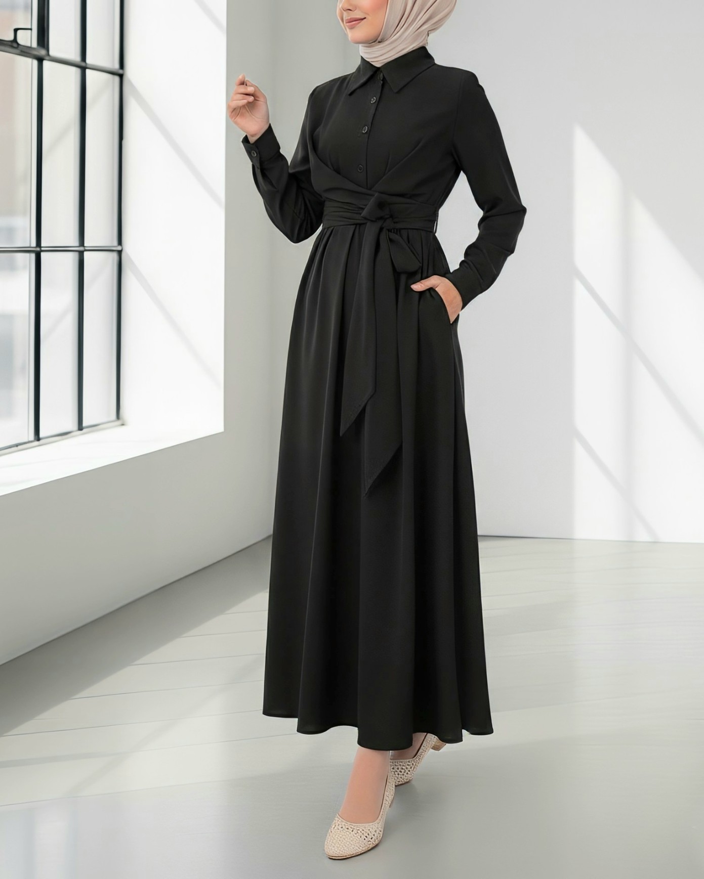 الفستان الكتان المزود بأزرار نصفية وتفاصيل ربط عابرة يجمع بين التصميم العصري والراحة. تضيف تفاصيل الربط العابر لمسة أنيقة، بينما يوفر قماش الكتان راحة في الأيام الحارة. مثالي للاستخدام اليومي والمناسبات الخاصة، سيكون هذا الفستان من القطع الأساسية في خزانة ملابسك.