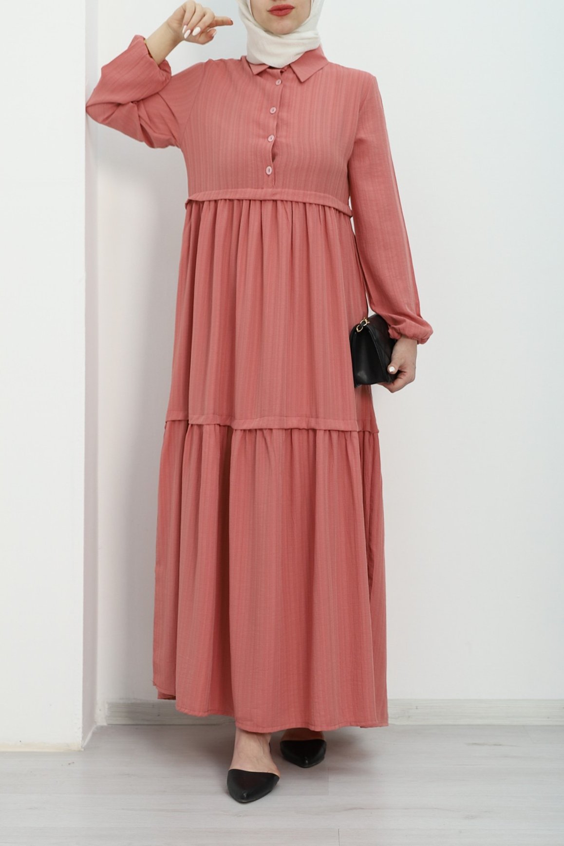 فستان مرن بأكمام نصف أزرار -فم الجراء