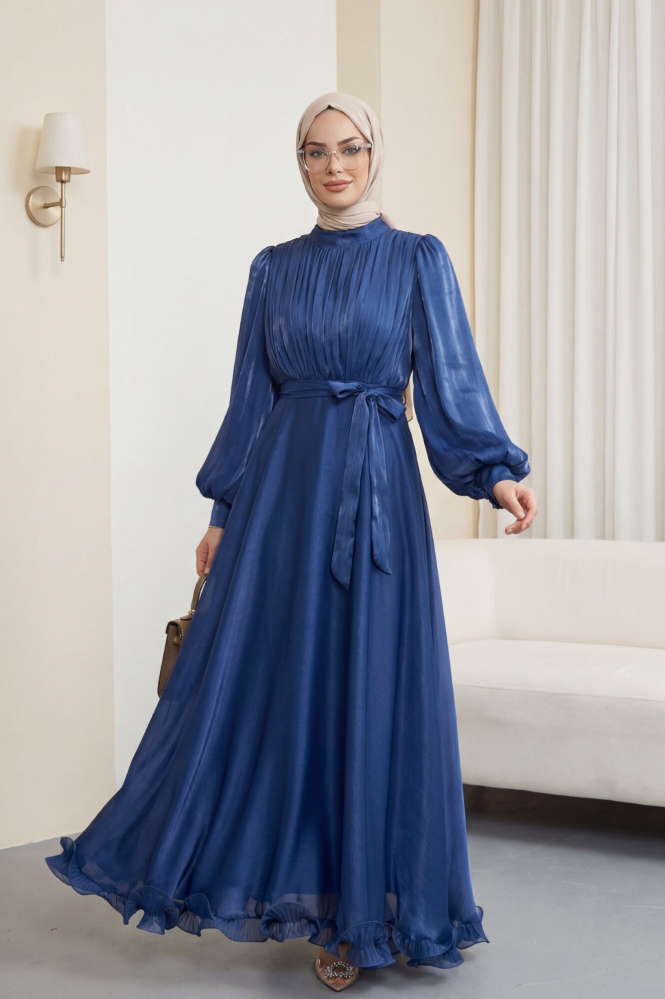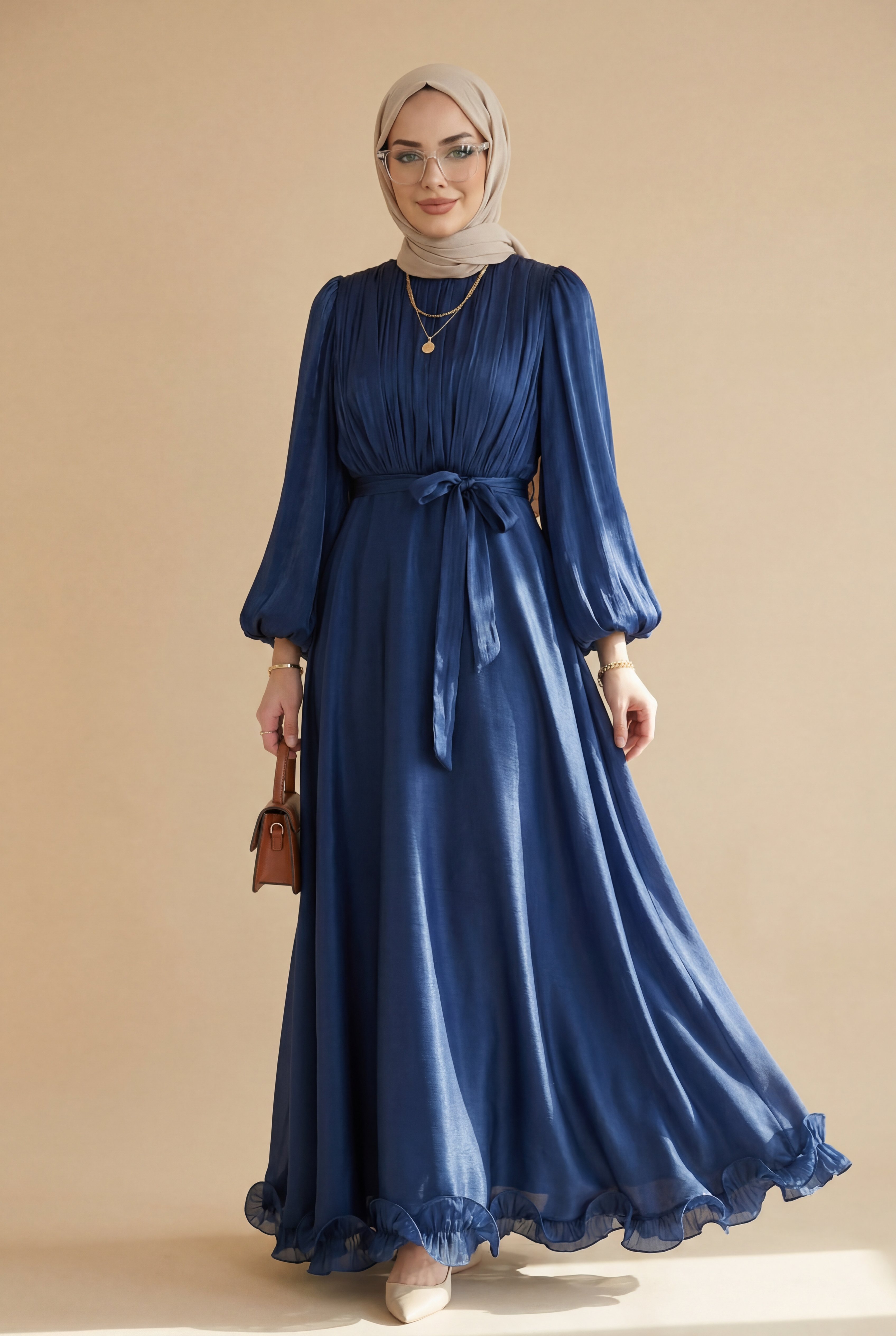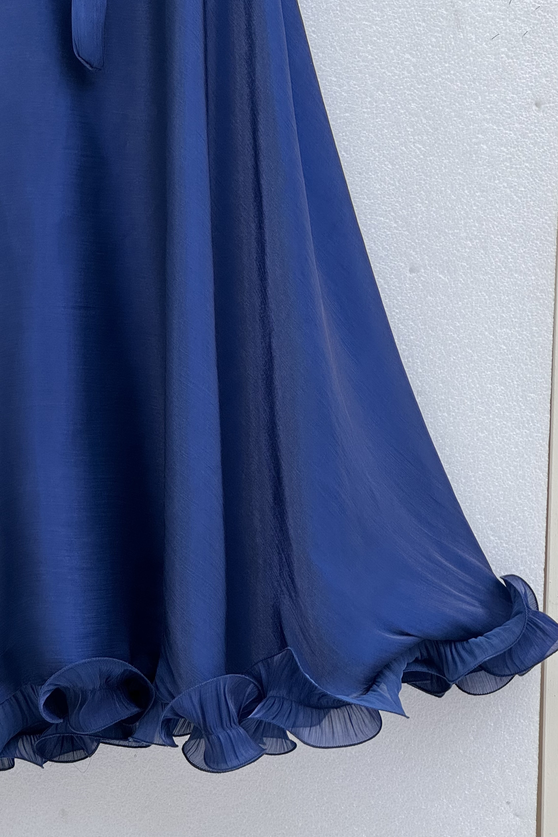 فستان كريب غير متماثل مع تنورة أليري أمامية -وردة مجففة