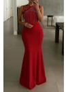 فستان نسائي طويل من قماش الكريب جانجان بقصّة سمكة ومطرّز بأحجار أمامية متعددة الأحزمة
