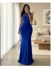 Açık Omuz Taşlı Etek Uzun Elbise -أزرق شامي