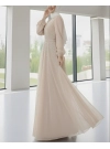 فستان سهرة نسائي طويل من الكريب المستورد بفتحة رقبة عميقة وتفاصيل فتحة عميقة