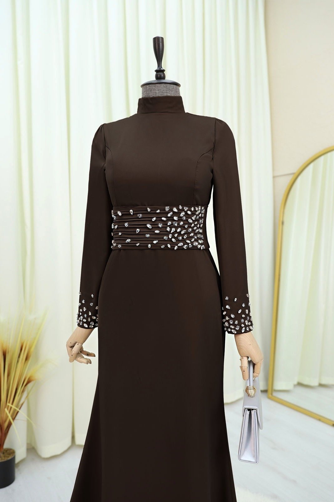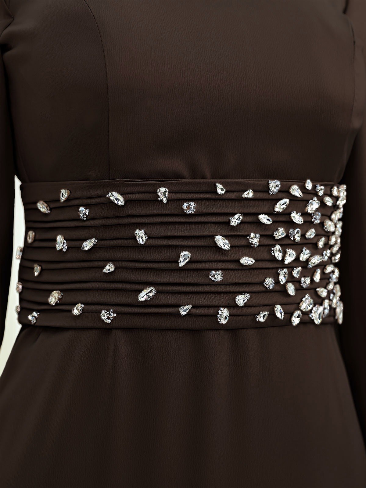 فستان سهرة من الساتان مع حزام على شكل كورسيه -بني محروق