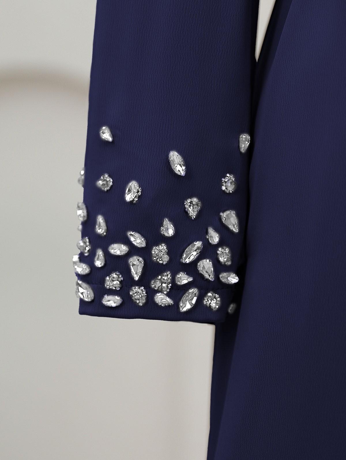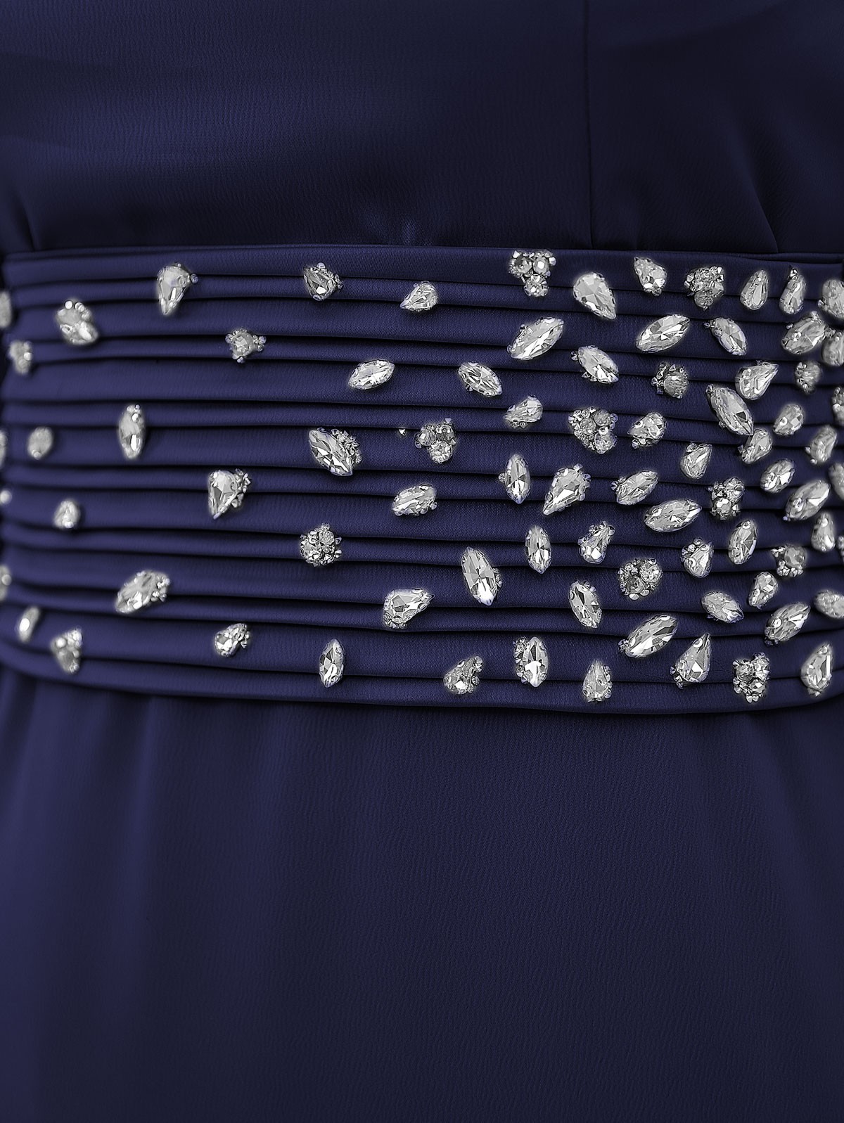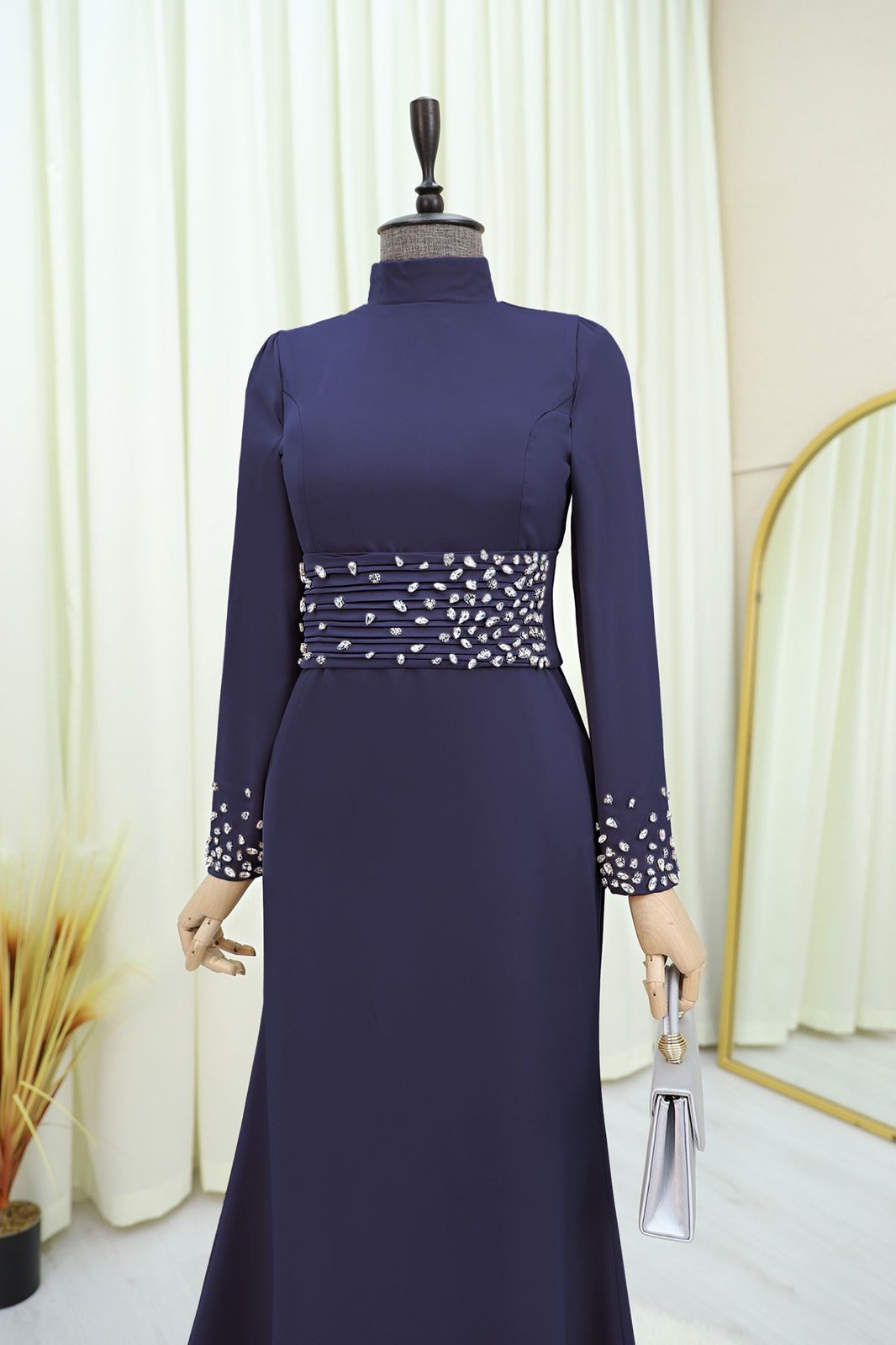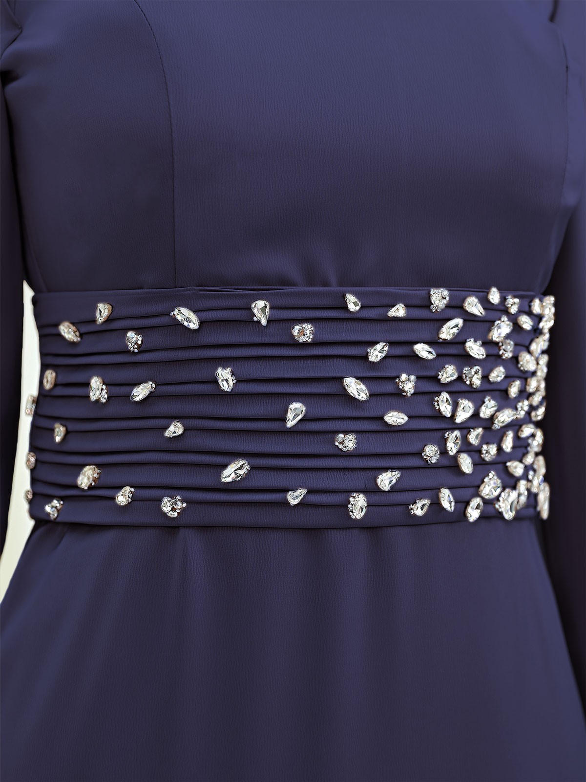 فستان سهرة من الساتان مع حزام على شكل كورسيه -كحلي