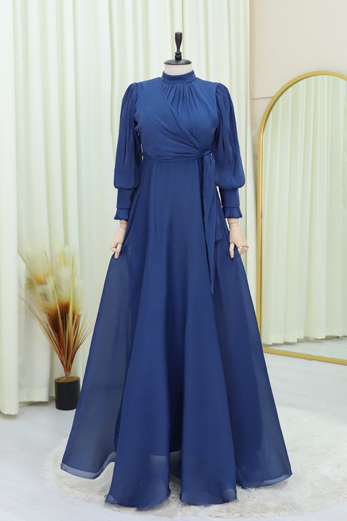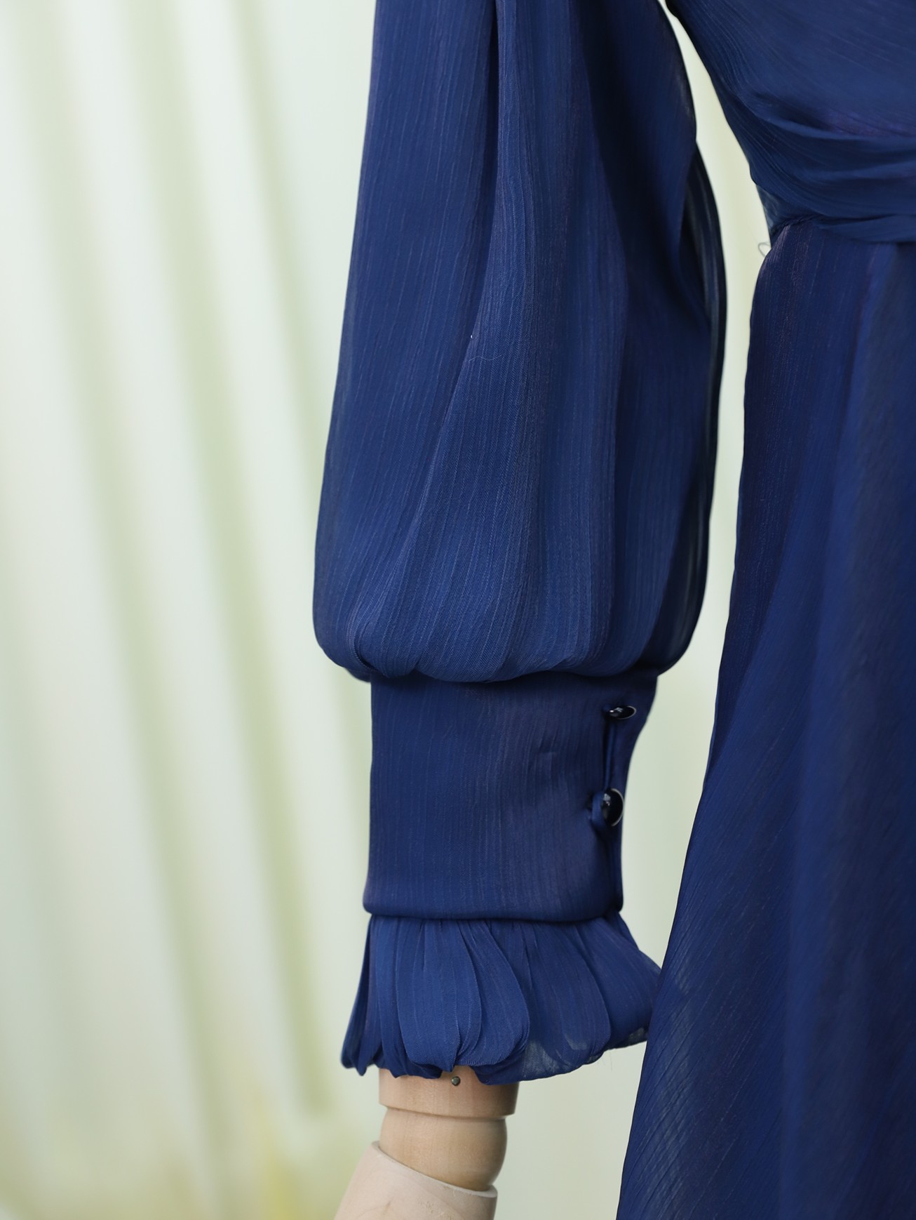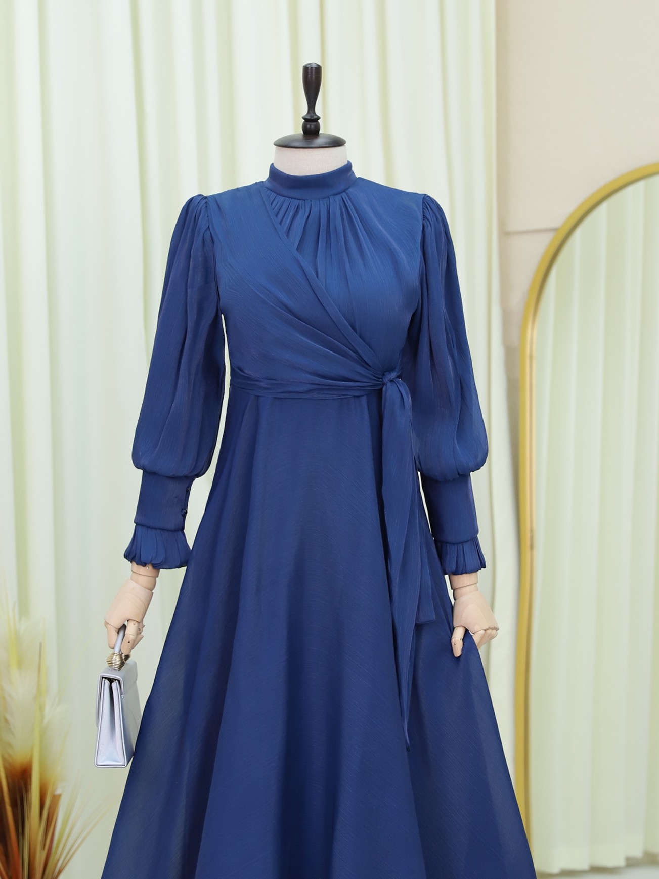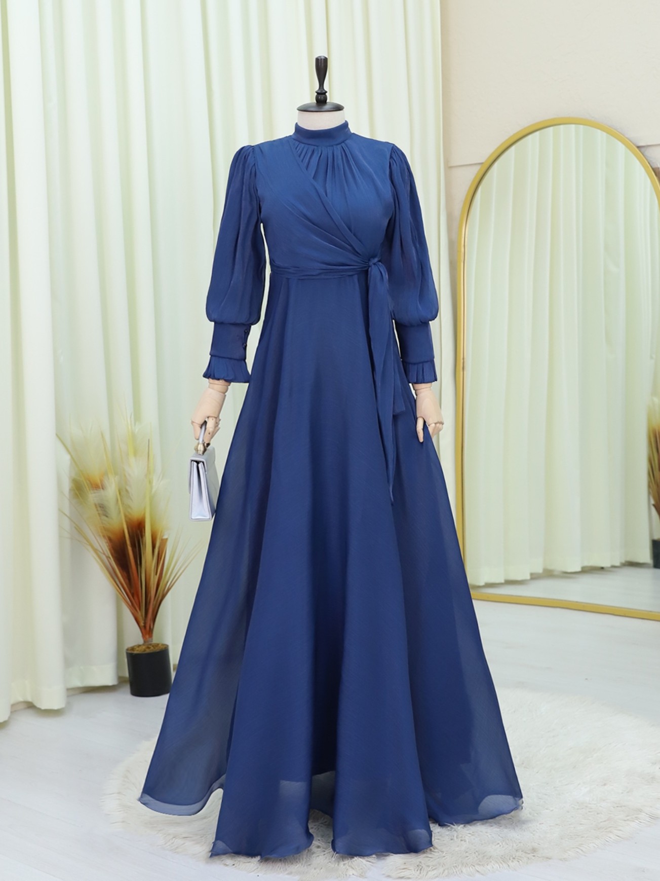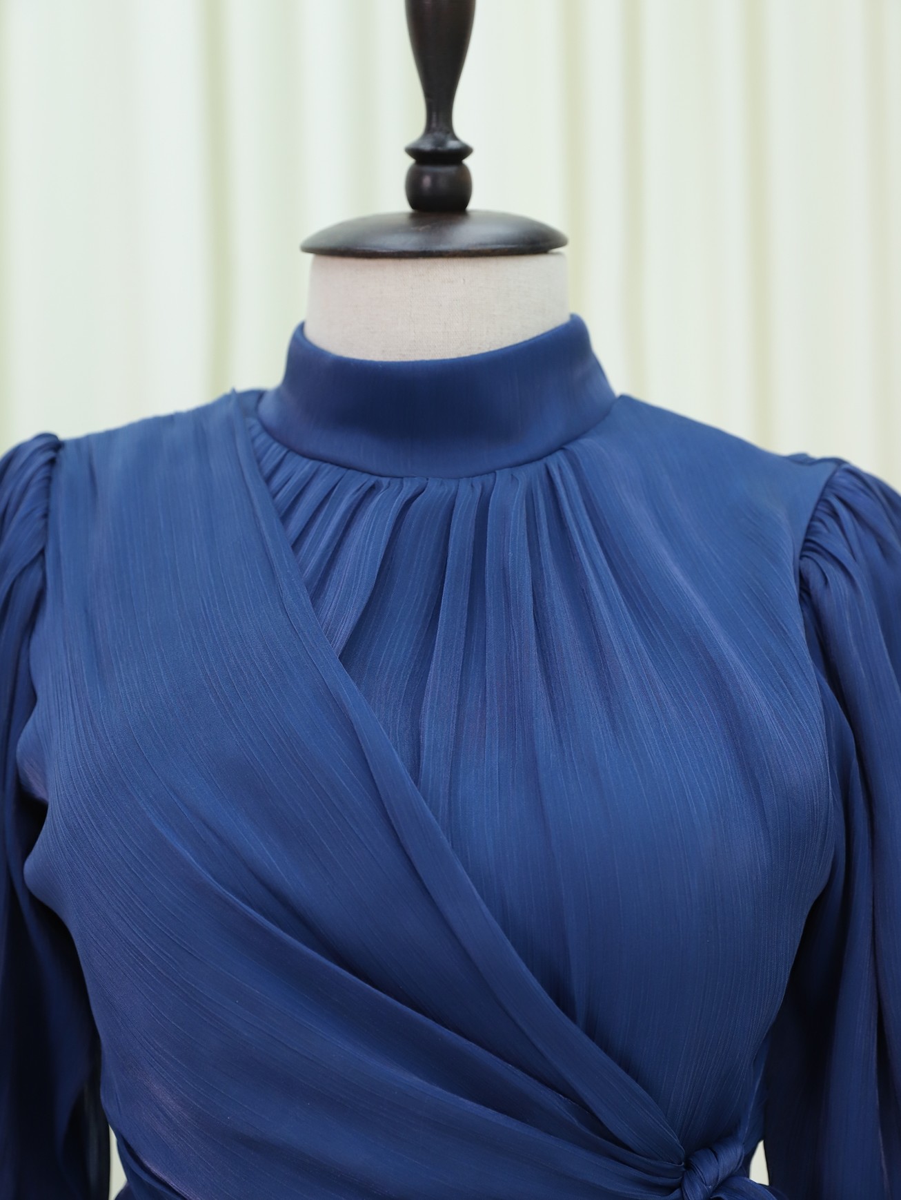 فستان كريب غير متماثل مع تنورة أليري أمامية -زمرد