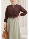 بلوزة قميص من قماش البوبلين بأكمام إسبانية وخصر بحزام -بنى